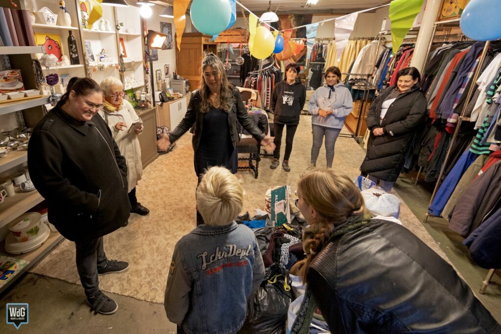 In de loods van het Zelfregiecentrum aan de Roermondseweg is een ruilwinkel met kleding en schoenen. Bezoekers kunnen hier iets uitzoeken als ze dat nodig hebben. Wie wil, draagt op een andere manier bij, bijvoorbeeld door koffie te zetten, te helpen met opruimen of activiteiten te organiseren. Zo ontstaat er een gevoel van gelijkwaardigheid en betrokkenheid.