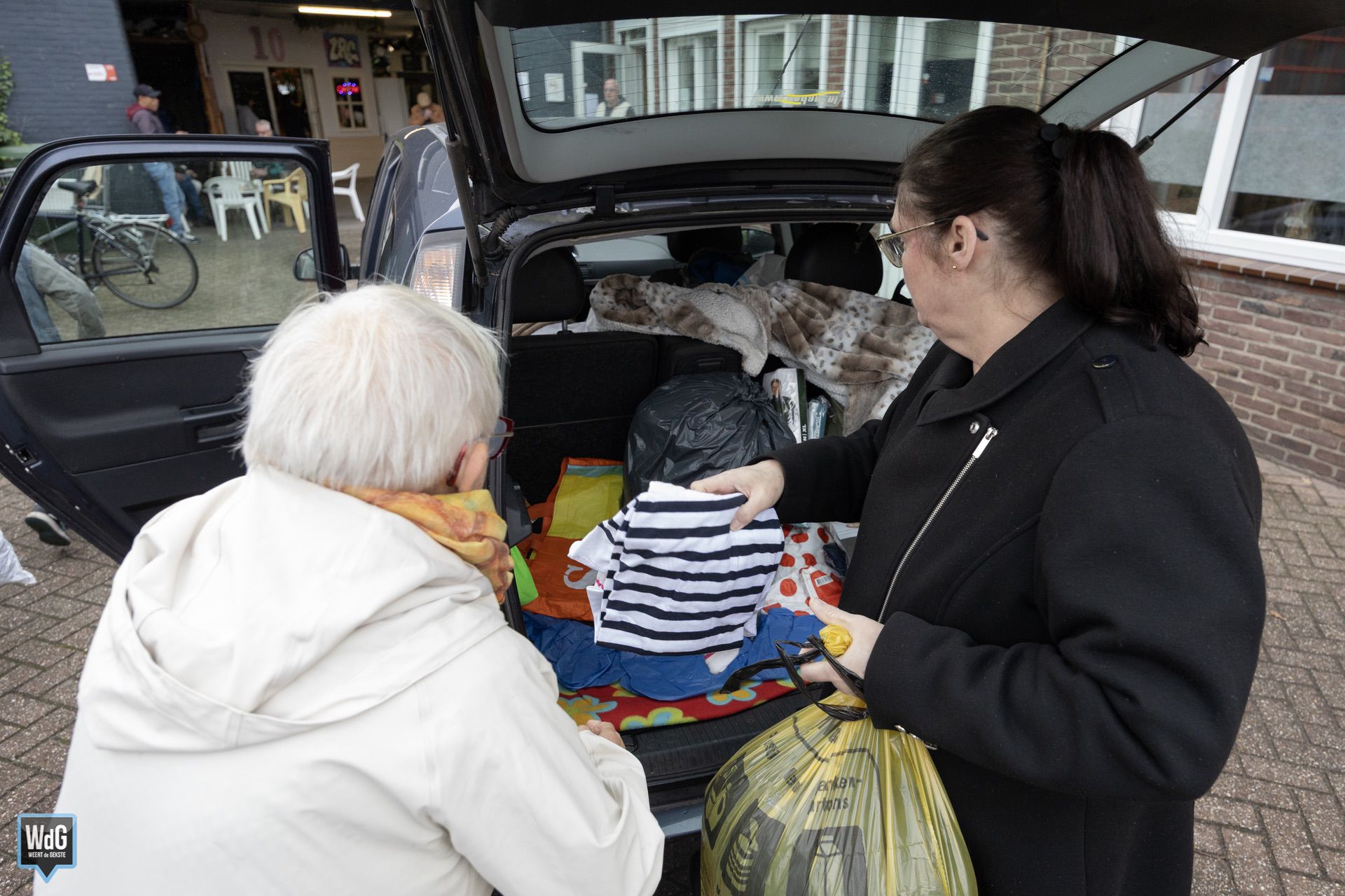 Zaterdag bracht Amos de jassen persoonlijk naar het Zelfregiecentrum Weert. Medewerkers, vrijwilligers en bezoekers gaven de actie een feestelijk tintje.