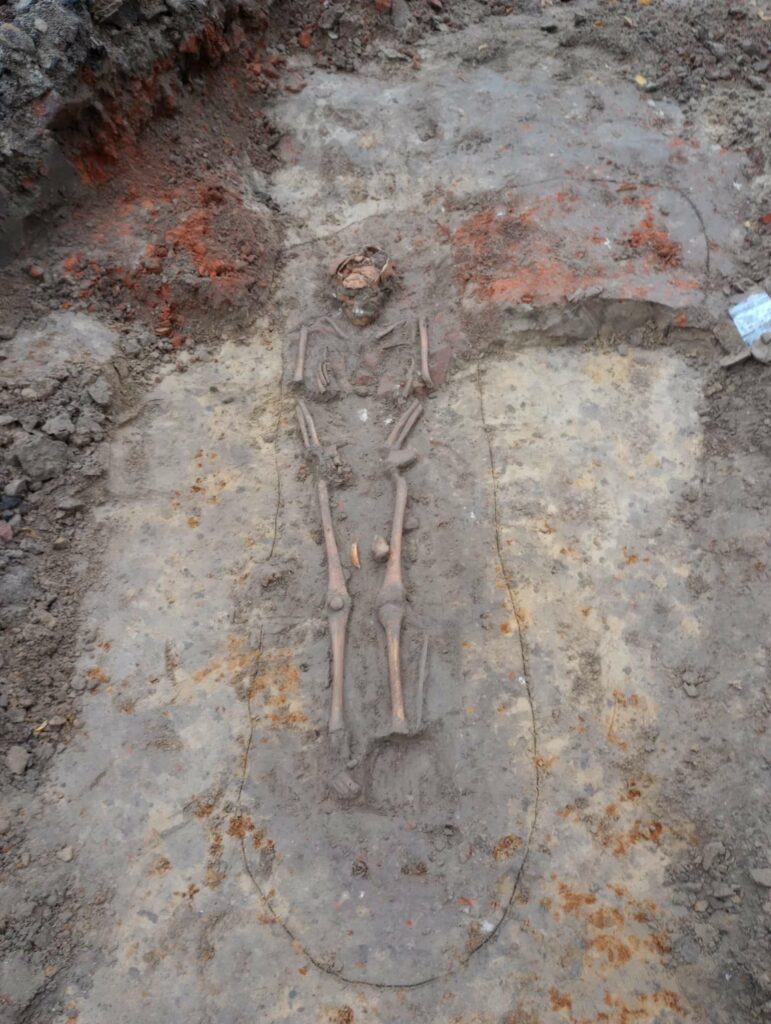 De skeletten lagen in meerdere graven die dateren uit de vroegmoderne tijd, vermoedelijk tussen 1500 en 1800. De overledenen waren begraven in houten kisten, gericht van oost naar west – een gebruikelijke oriëntatie in die periode. Van de kisten zelf is weinig overgebleven. Onder de resten bevinden zich in ieder geval een vrouw en een kind.
