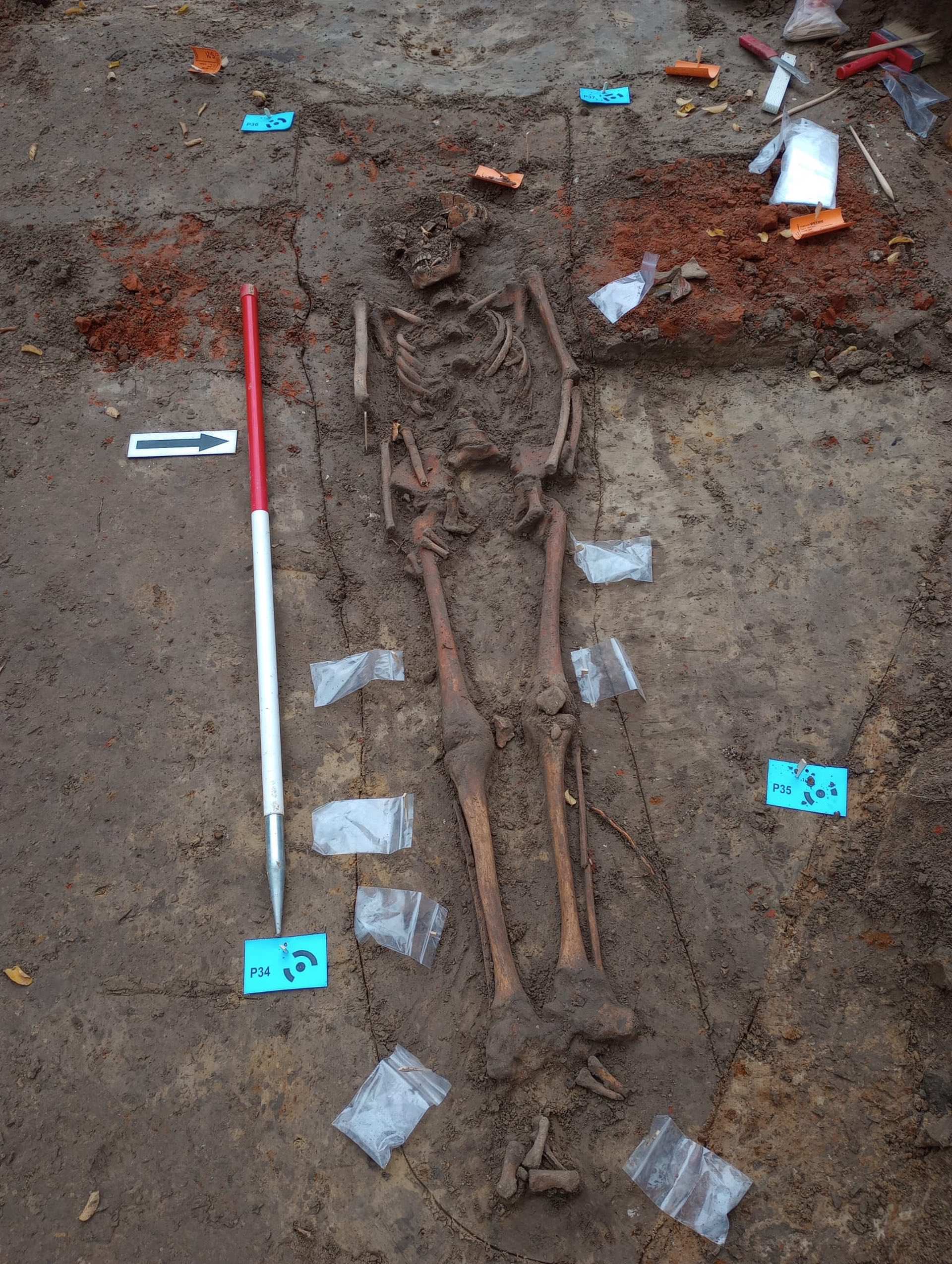 De skeletten lagen in meerdere graven die dateren uit de vroegmoderne tijd, vermoedelijk tussen 1500 en 1800. De overledenen waren begraven in houten kisten, gericht van oost naar west – een gebruikelijke oriëntatie in die periode. Van de kisten zelf is weinig overgebleven. Onder de resten bevinden zich in ieder geval een vrouw en een kind.