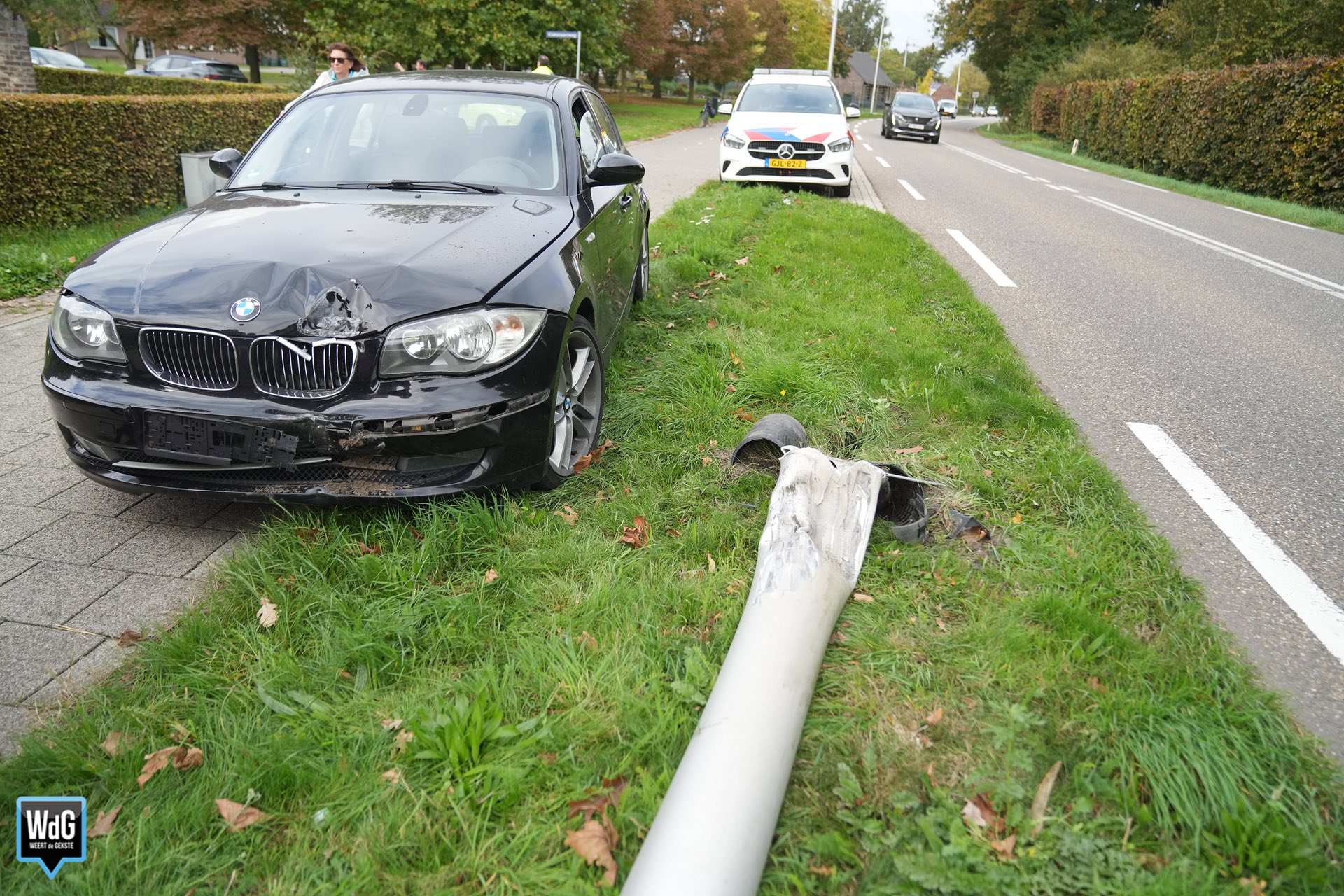 De auto raakte door nog onbekende oorzaak van de weg en kwam vervolgens in botsing met een lantaarnpaal. De automobilist is uit voorzorg gecontroleerd door het ambulancepersoneel, maar hoefde niet mee naar het ziekenhuis.