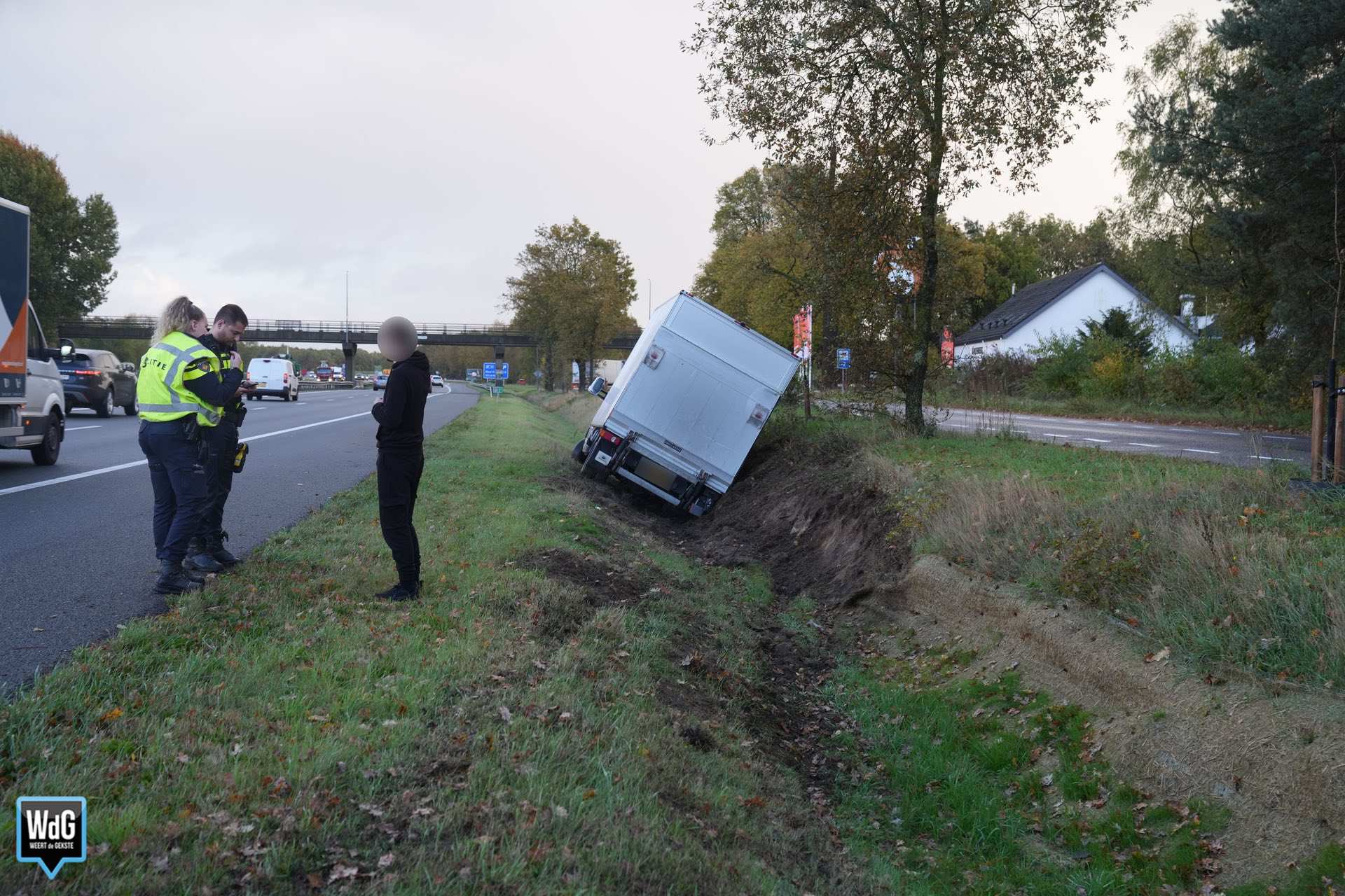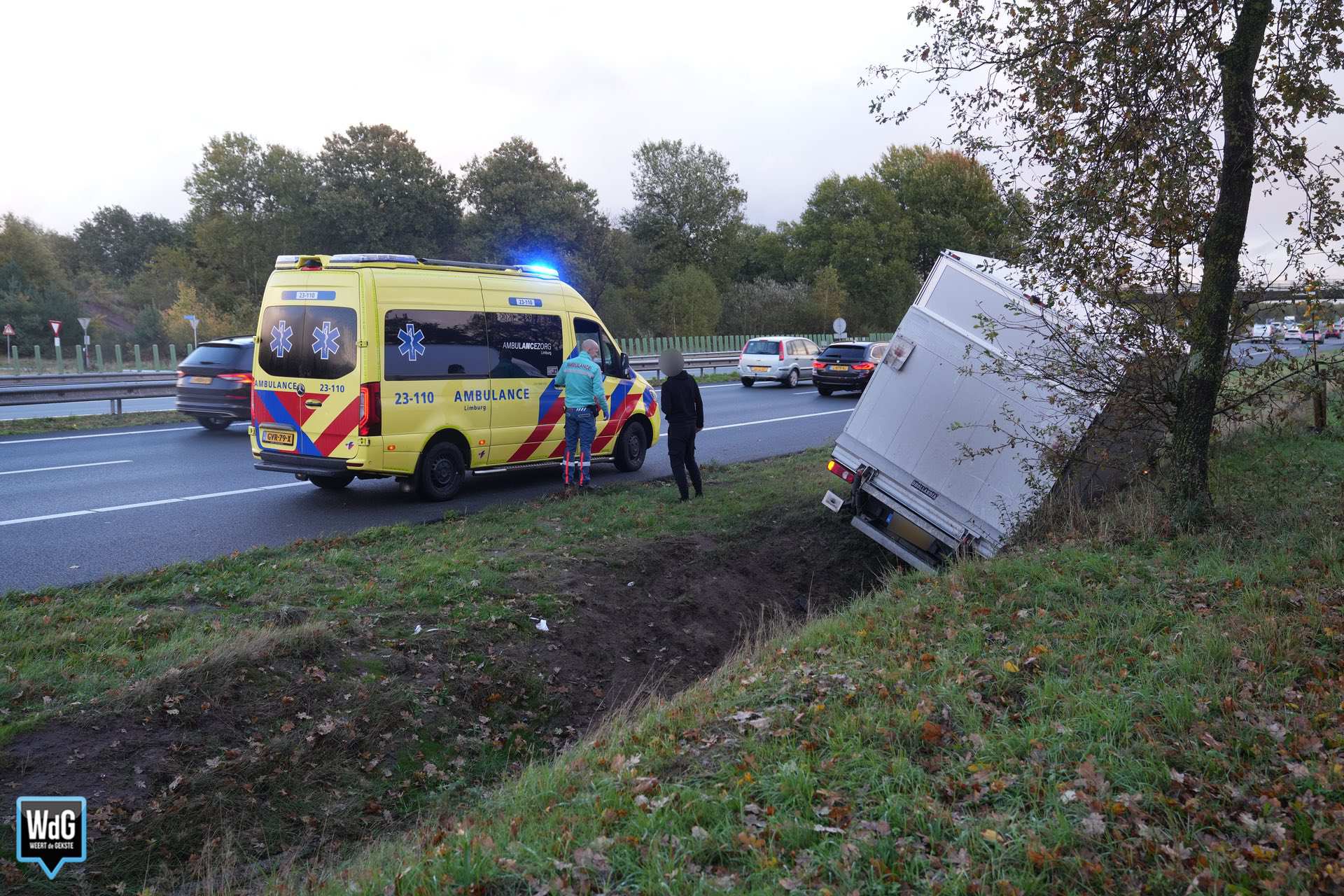 Update – De hulpdiensten werden maandag rond 16.20 uur gealarmeerd vanwege een verkeersongeval op de A2 bij Weert. Een bakwagen was daar in de greppel terechtgekomen.