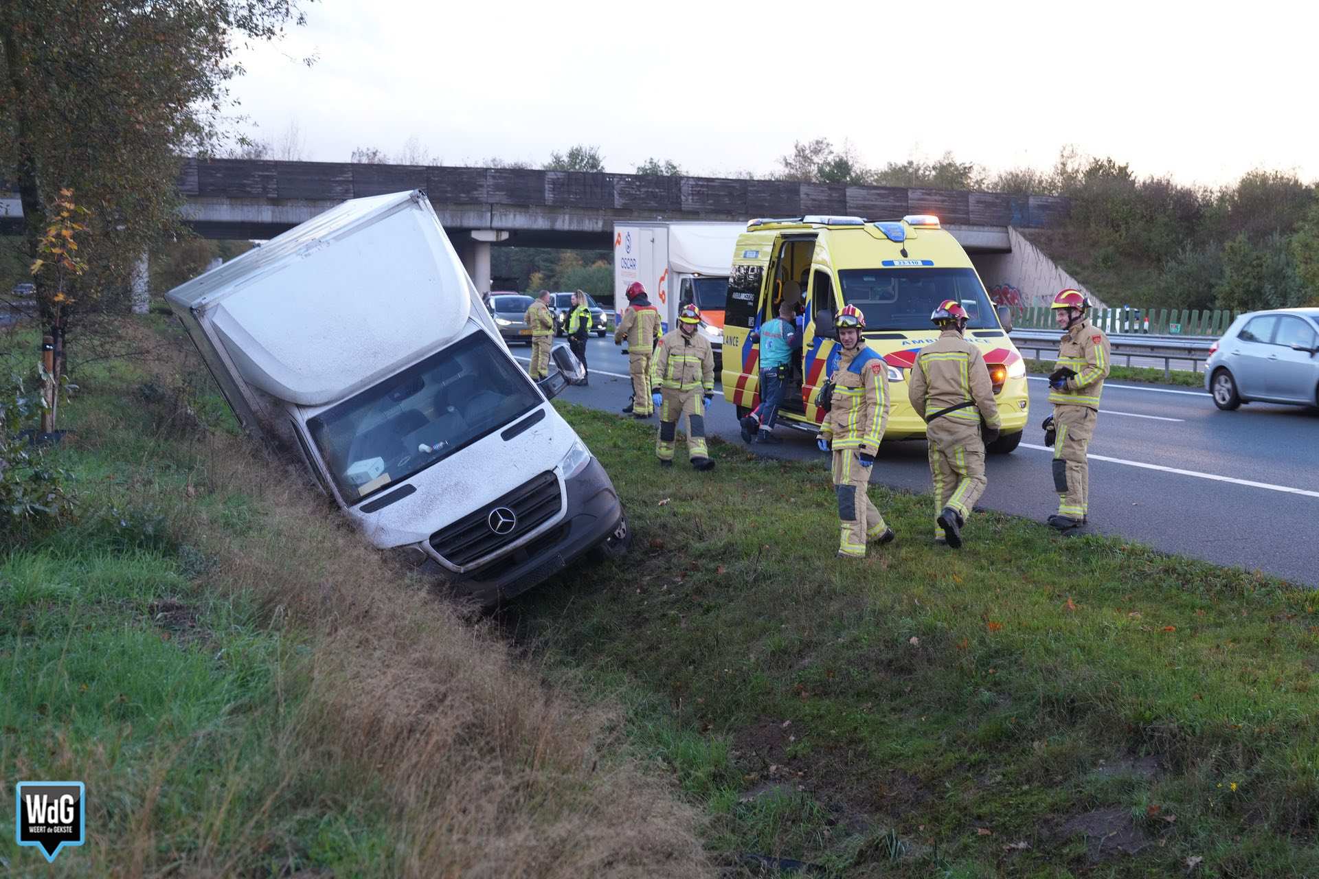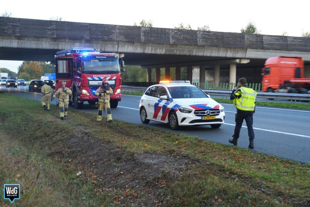 Uit voorzorg werd ook de brandweer opgeroepen. Zij controleerde het voertuig, maar hoefde verder niet in actie te komen. De bestuurder had last van zijn arm en werd nagekeken in een ambulance, maar hoefde niet mee naar het ziekenhuis.