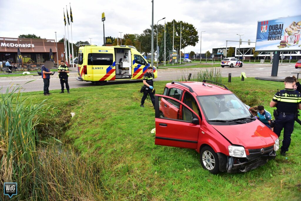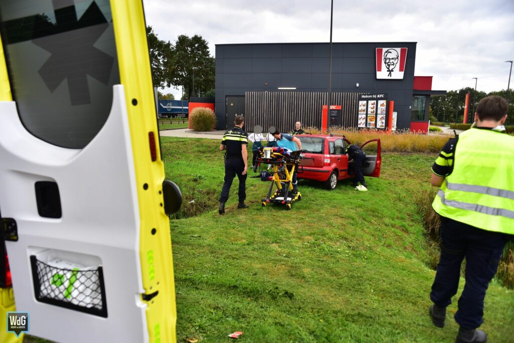 De automobilist wilde wegrijden vanaf de parkeerplaats bij de McDonald’s, toen hij een bestelbus van PostNL raakte. De automobilist werd daardoor naar de andere rijbaan geslingerd, waar hij in een lager gelegen talud tot stilstand kwam. Hij verloor daarbij zijn voorbumper en een aantal andere onderdelen.