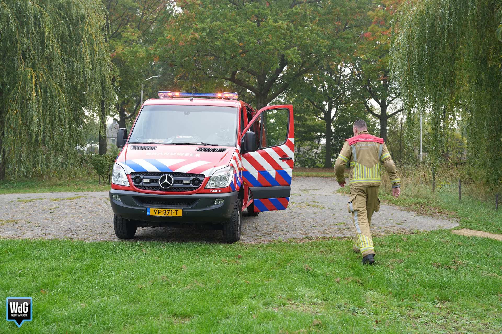 Wat begon als een vrolijke duik in het water, eindigde voor Rex in een benarde situatie. Zijn riem raakte vast tussen het riet en de viervoeter kon niet meer op eigen kracht uit de sloot komen. Het baasje durfde de goed gevulde sloot, waar ook nog ratten rondzwommen, niet in te gaan en schakelde daarom de brandweer in.