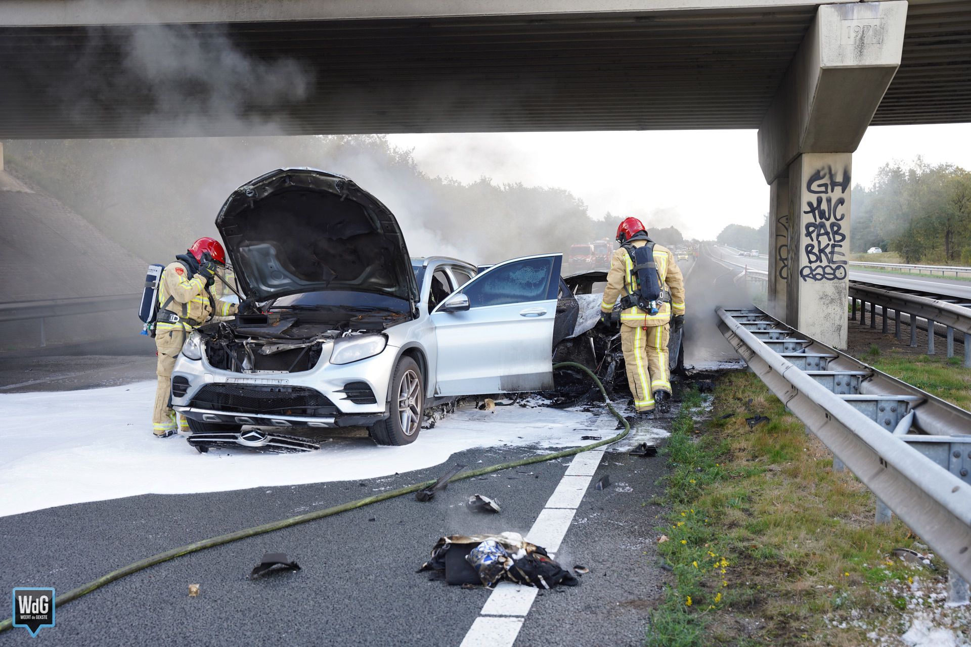 Een berger is ter plaatse gekomen om de betrokken voertuigen weg te slepen. Zo kan de weg weer vrijgemaakt worden voor het overige verkeer.