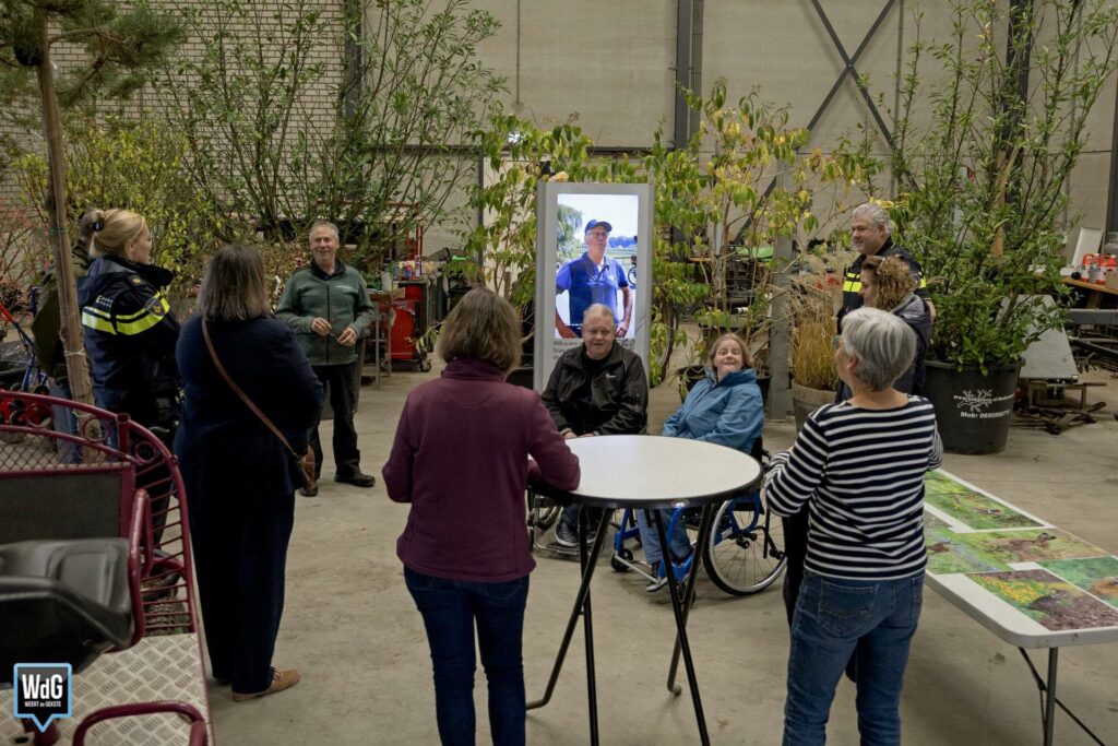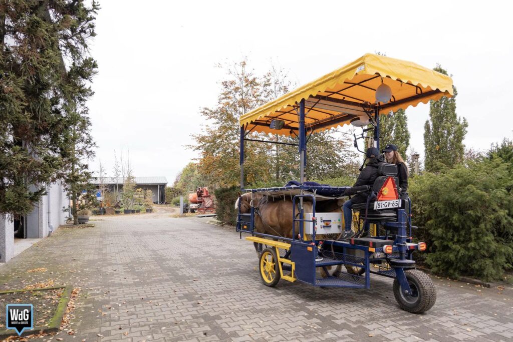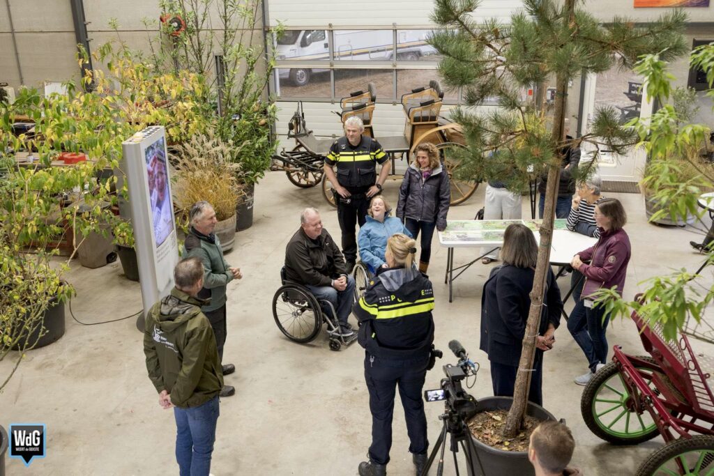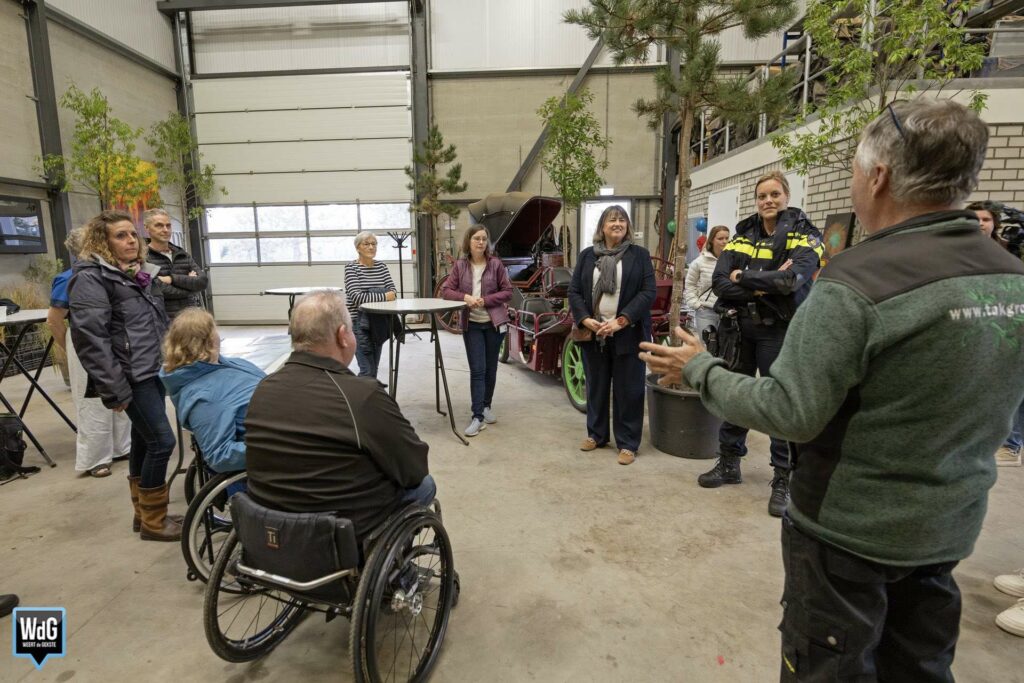De stichting werd vandaag bezocht door burgemeester Op de Laak en de politie, die kwamen kijken hoe de activiteiten in hun werk gaan. De voorzitter van de stichting en tevens eigenaar van een boomkwekerij, Lei Tillemans, legt uit: “Onze missie is om mensen met een lichamelijke of geestelijke beperking te laten ervaren wat contact met dieren kan betekenen. Met de knikkoets kunnen mensen in een rolstoel meerijden, en met het huifbed krijgen ze een zachte massage door de beweging van de paarden.”
