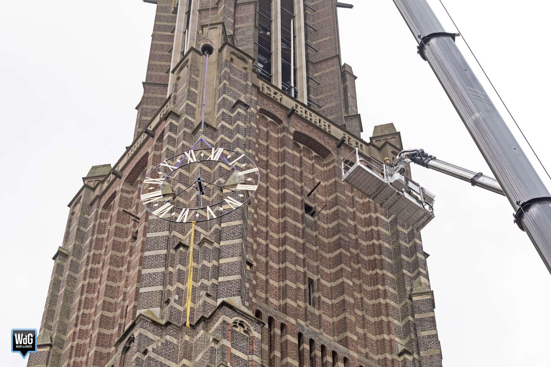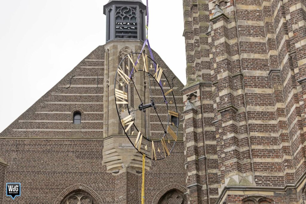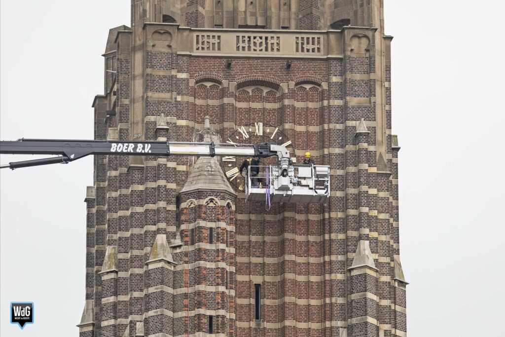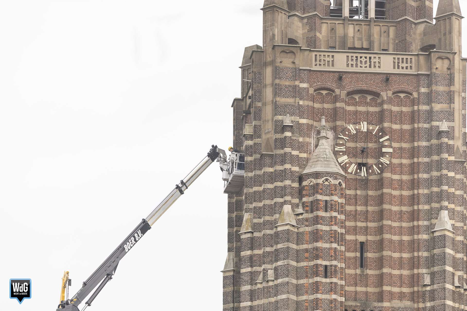 Al sinds begin dit jaar stonden de klokken op de St. Martinustoren stil. Vlak na de zomervakantie werden de wijzers en uurwerken gedemonteerd en afgevoerd voor onderhoud. Vandaag werden ze dan eindelijk teruggeplaatst, en dat trok veel bekijks.