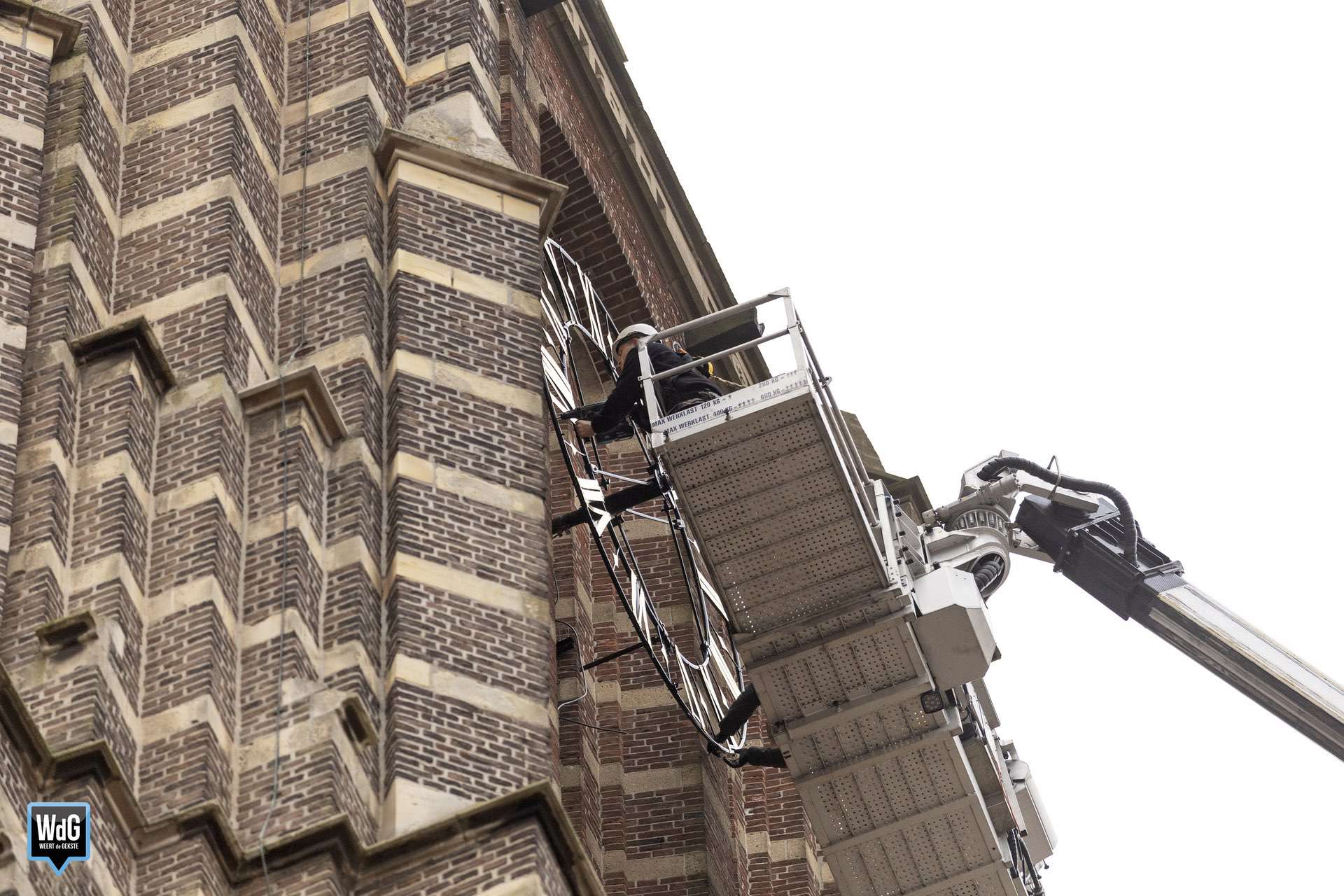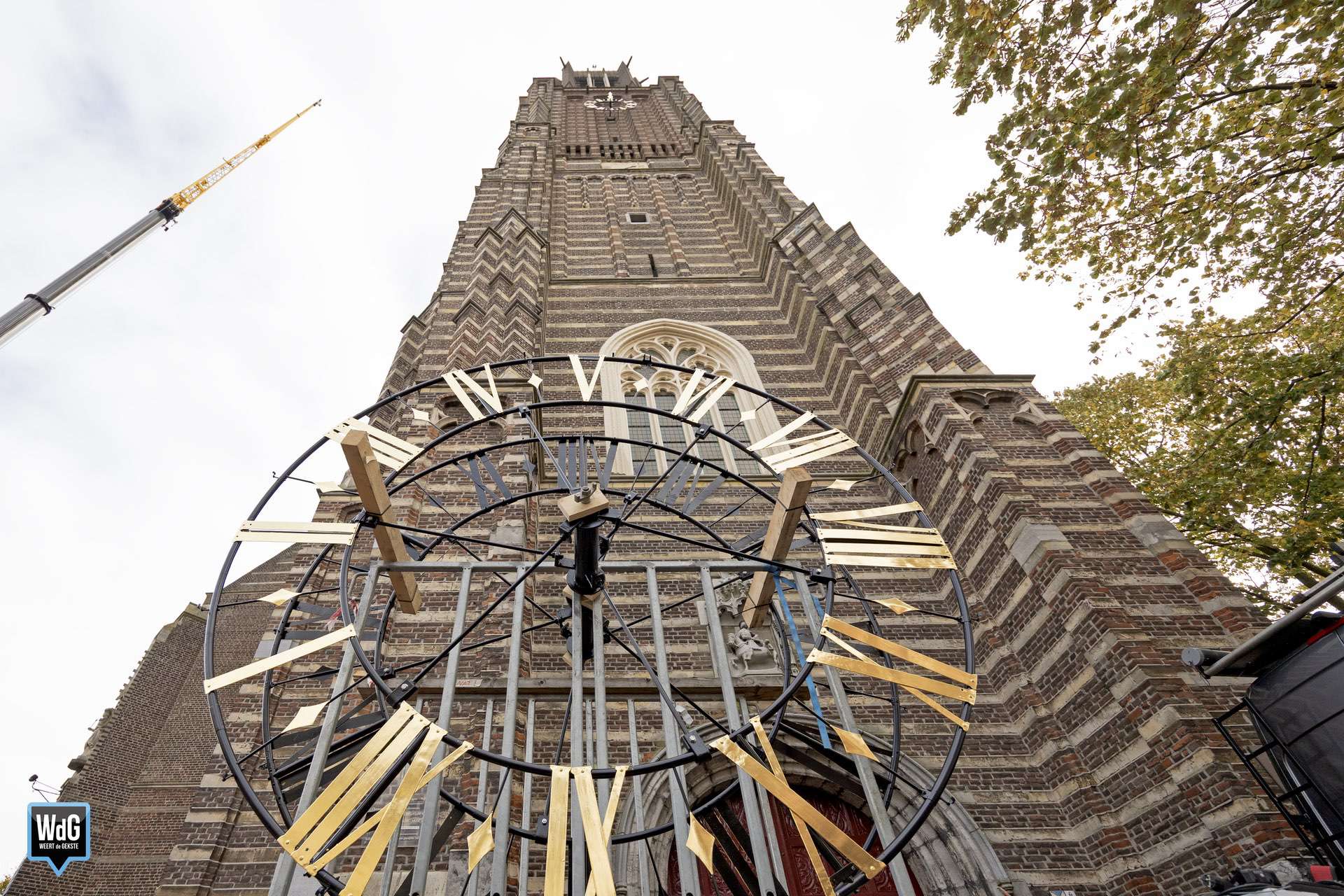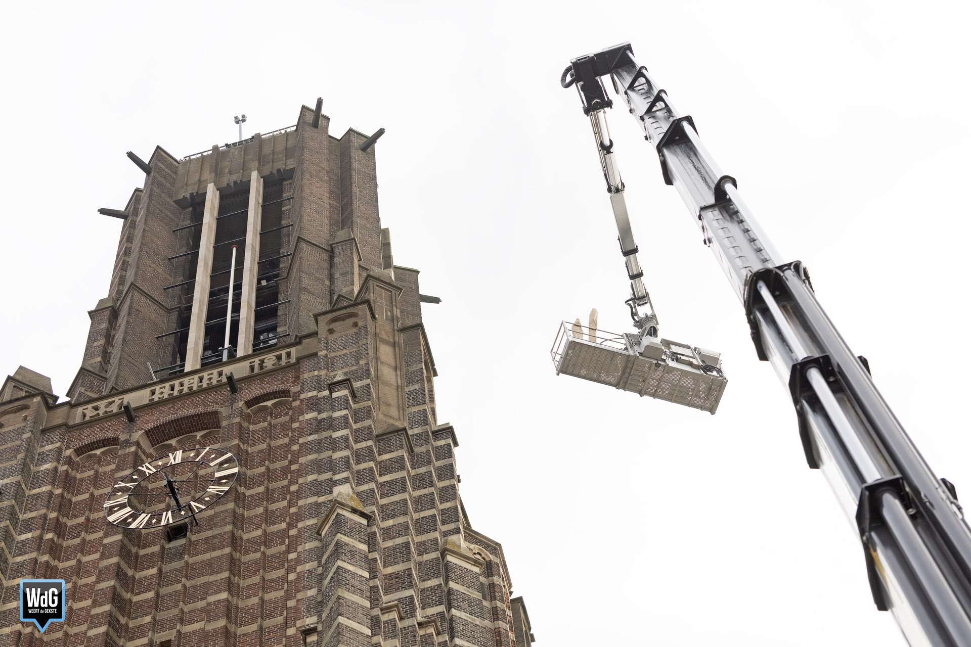 Al sinds begin dit jaar stonden de klokken op de St. Martinustoren stil. Vlak na de zomervakantie werden de wijzers en uurwerken gedemonteerd en afgevoerd voor onderhoud. Vandaag werden ze dan eindelijk teruggeplaatst, en dat trok veel bekijks.