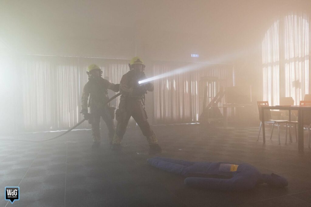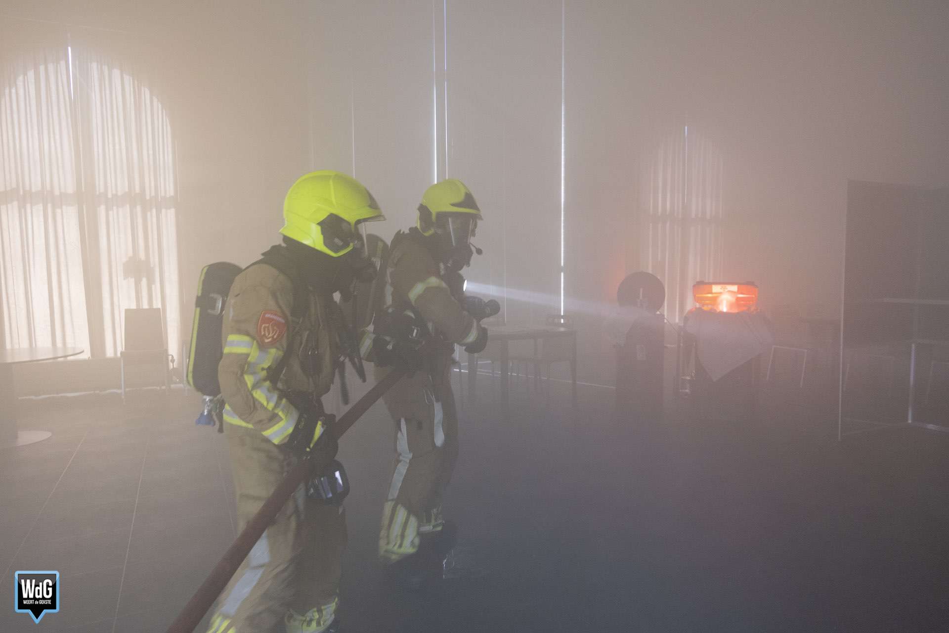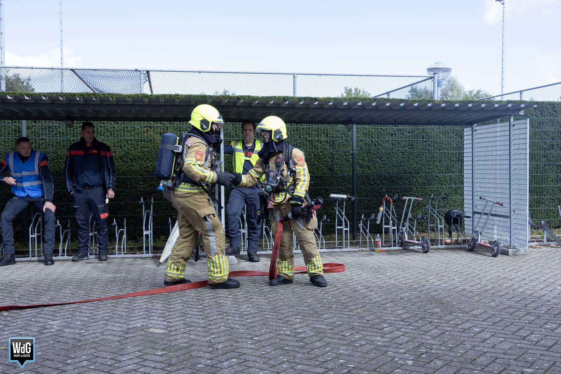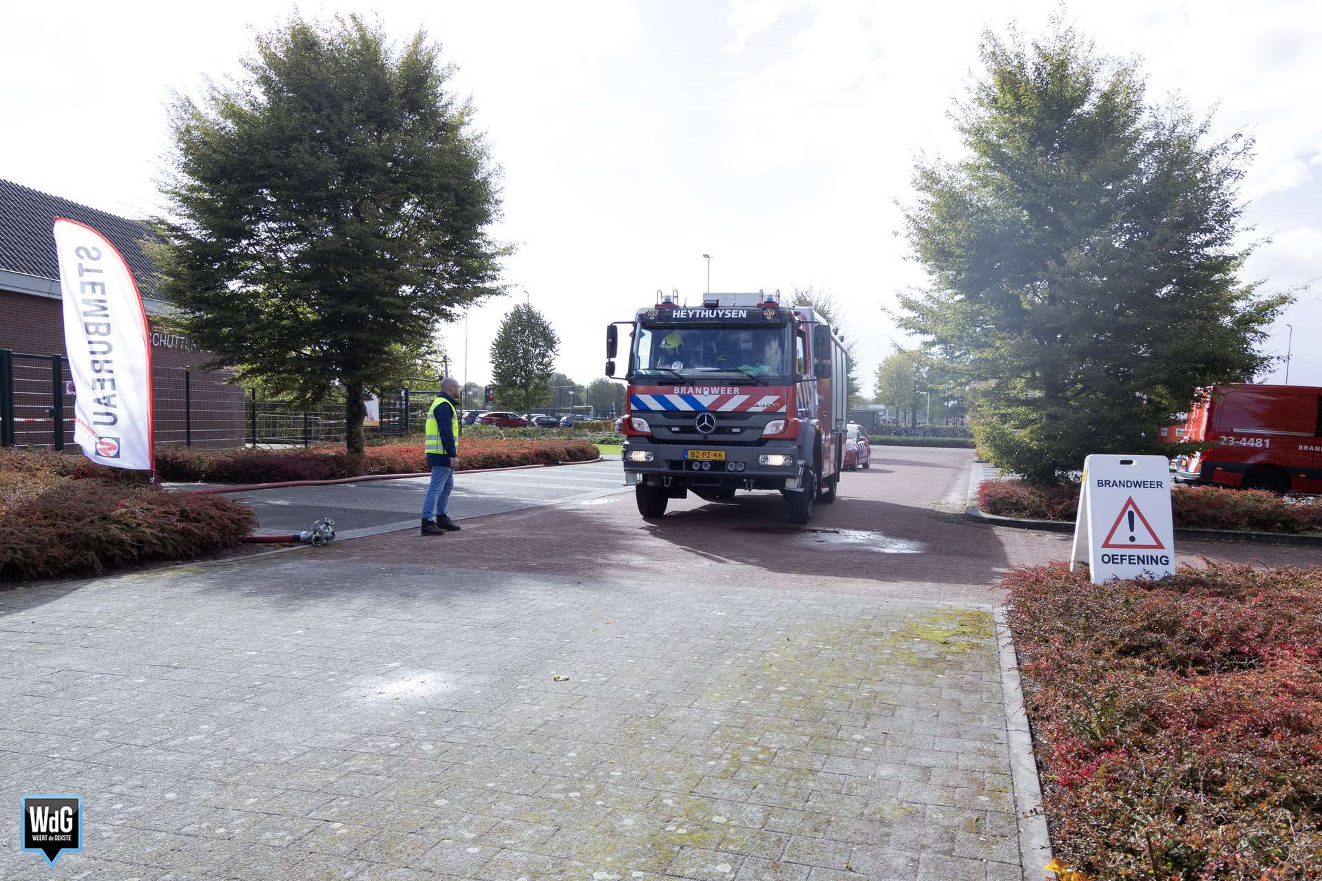 Brandweerlieden uit Weert hadden voor hun collega’s een oefening uitgezet op de Kaaskampweg. Hier vond zogenaamd een protest plaats bij een stembureau. Figuranten speelden dat er onder andere een molotovcocktail werd gegooid en een auto in brand werd gestoken. Daarnaast werd ook een brand geconstateerd in het gebouw waarin het stembureau gevestigd was en moest hieruit een slachtoffer worden gered.