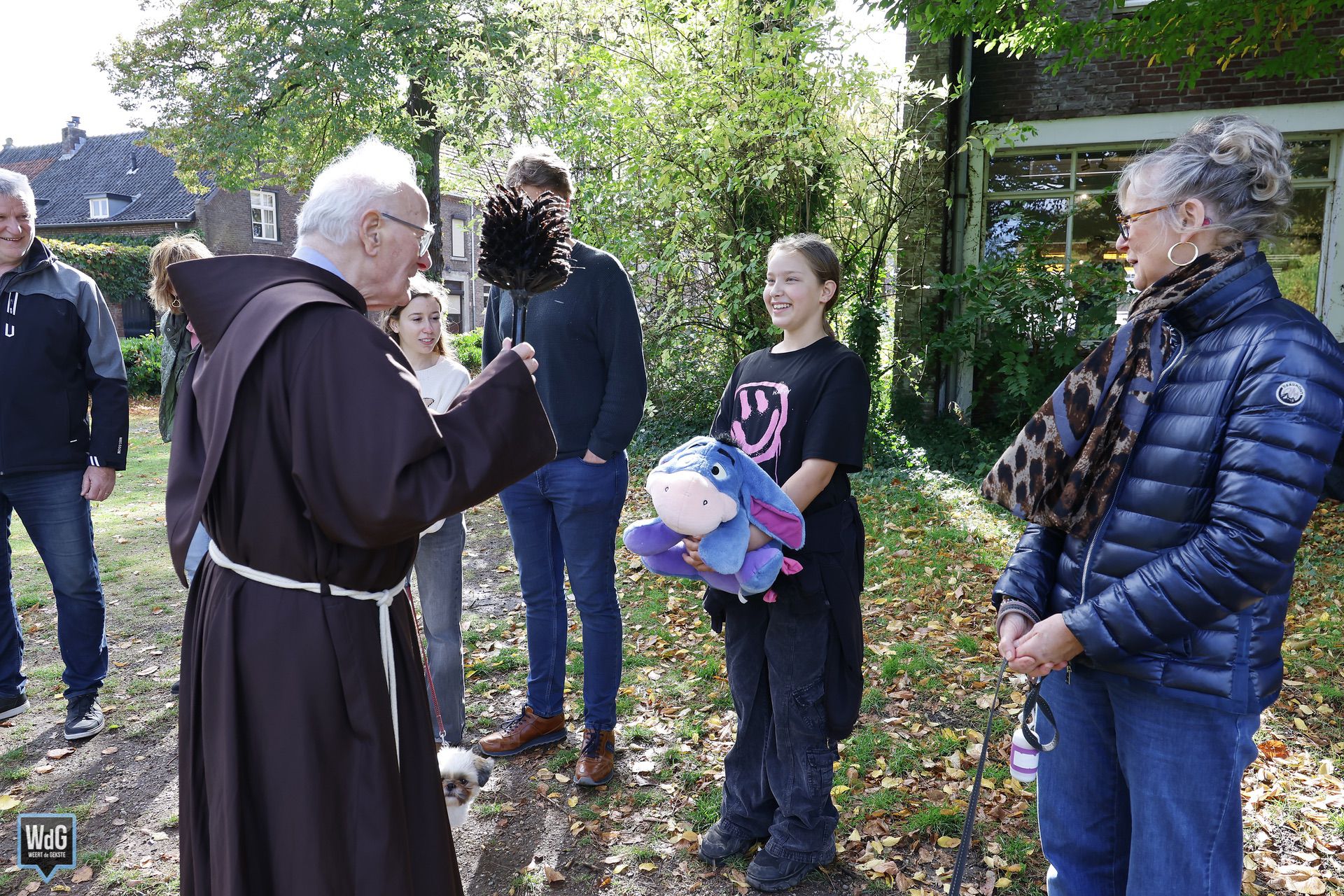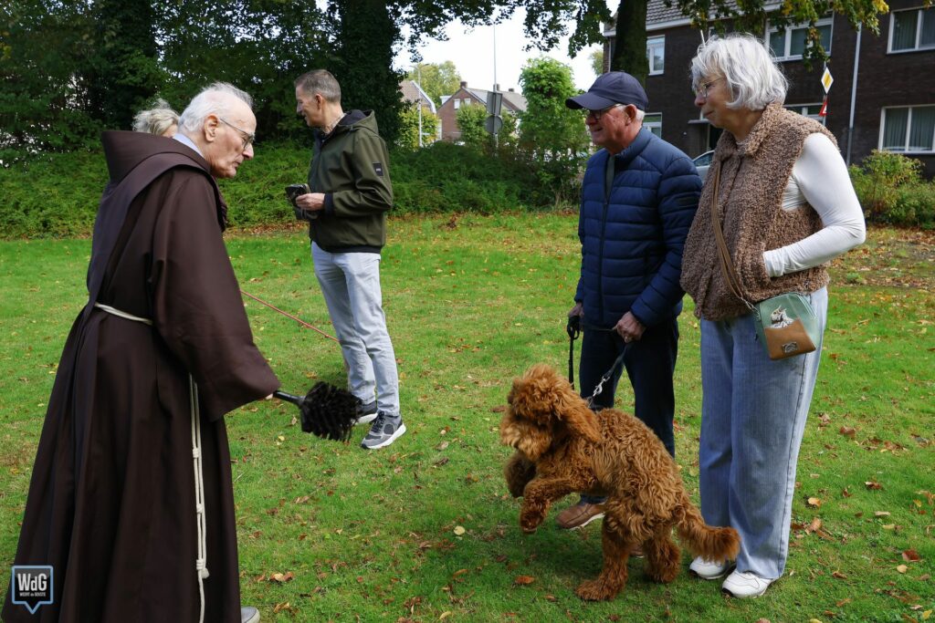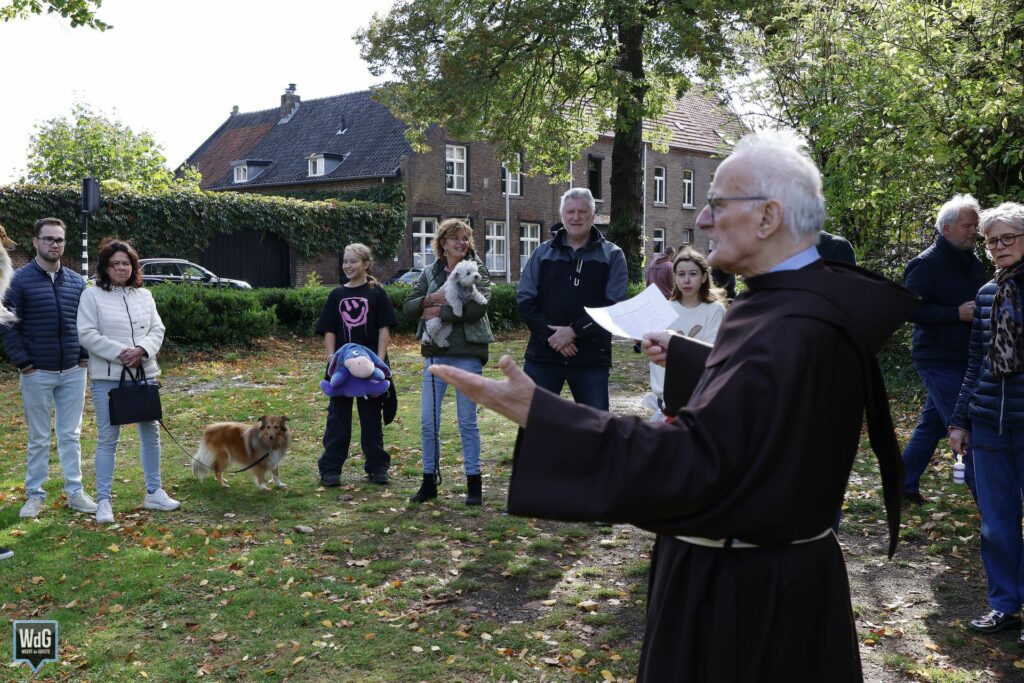 Later op de dag werd ook bij de Paterskerk op de Biest een dierenzegening gehouden. Daar was de opkomst iets groter en scheen zelfs af en toe de zon. Minderbroeder franciscaan Gerard Heesterbeek leidde de bijeenkomst, die traditioneel plaatsvond bij het beeld van Franciscus naast de kerk.
