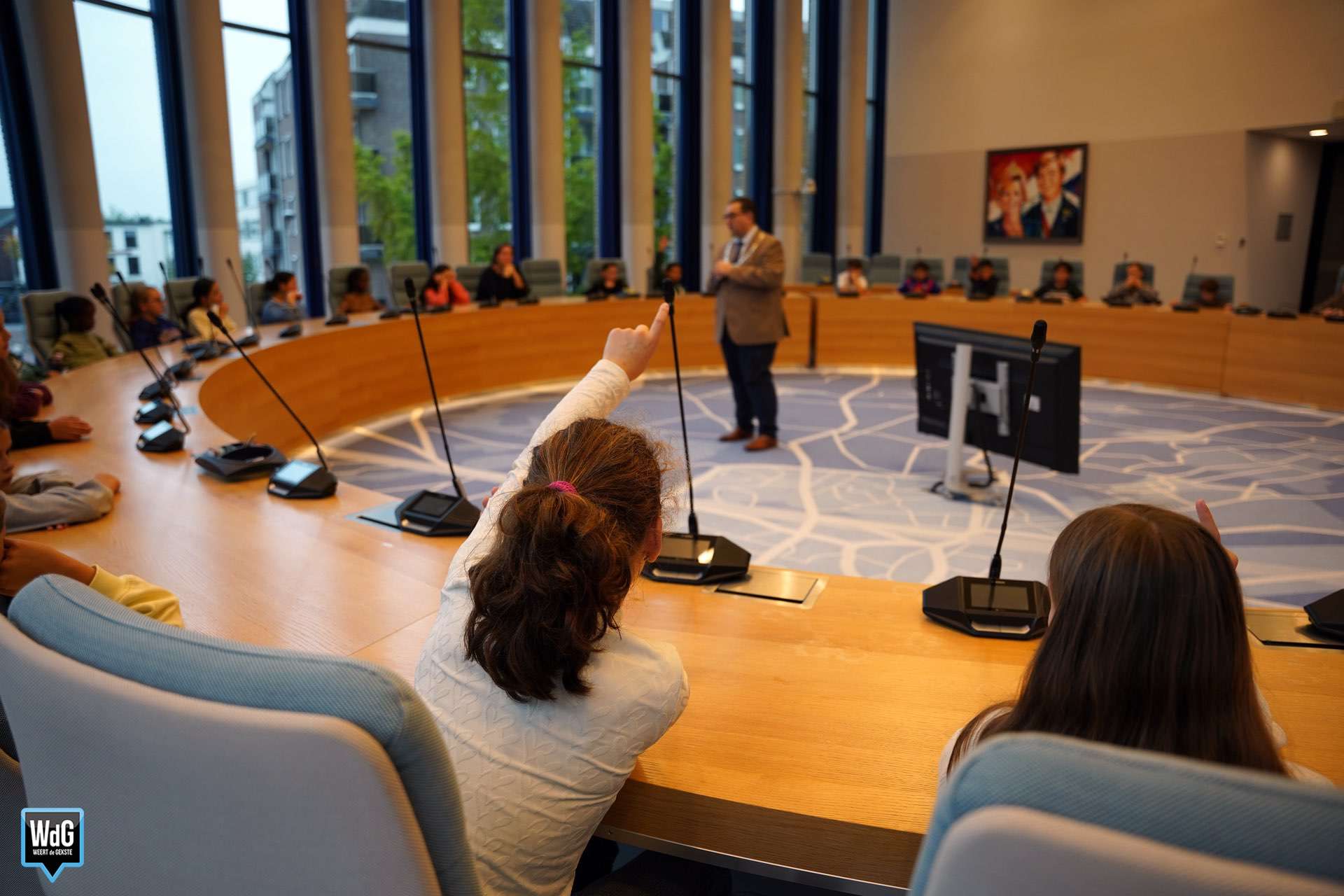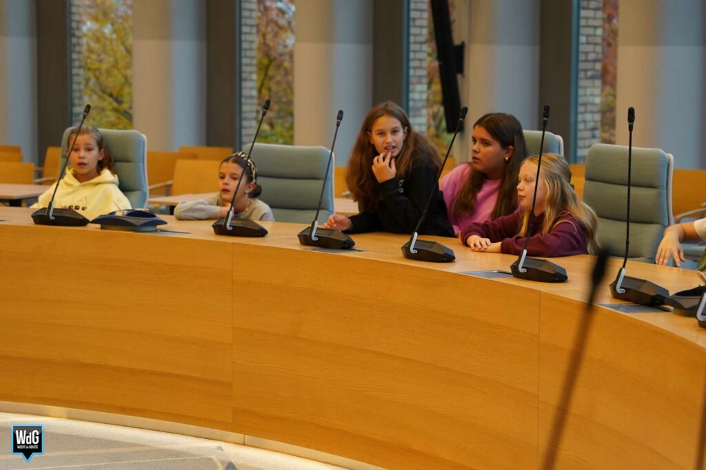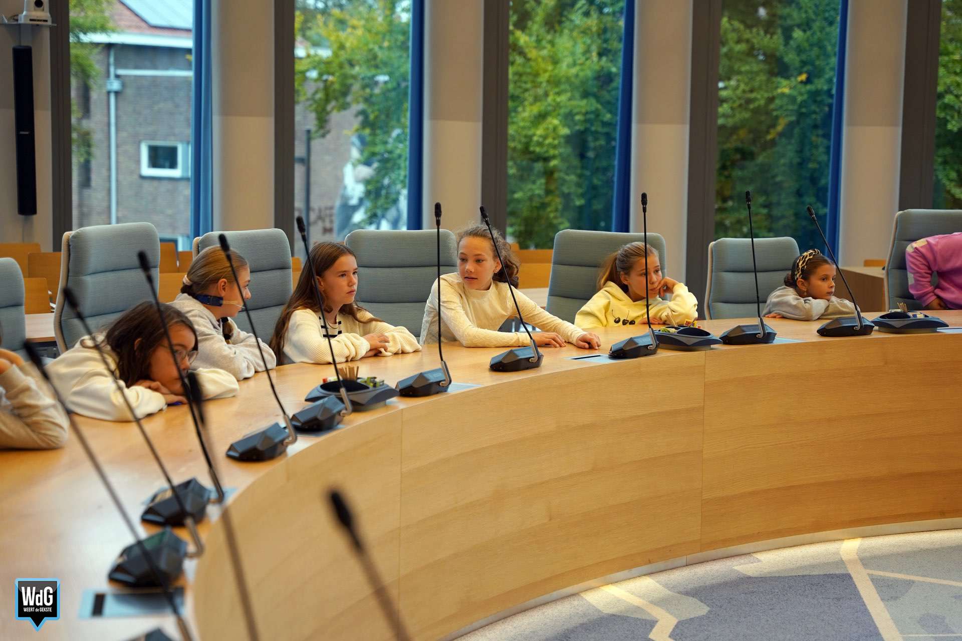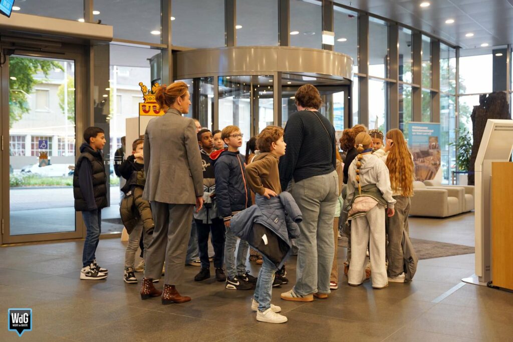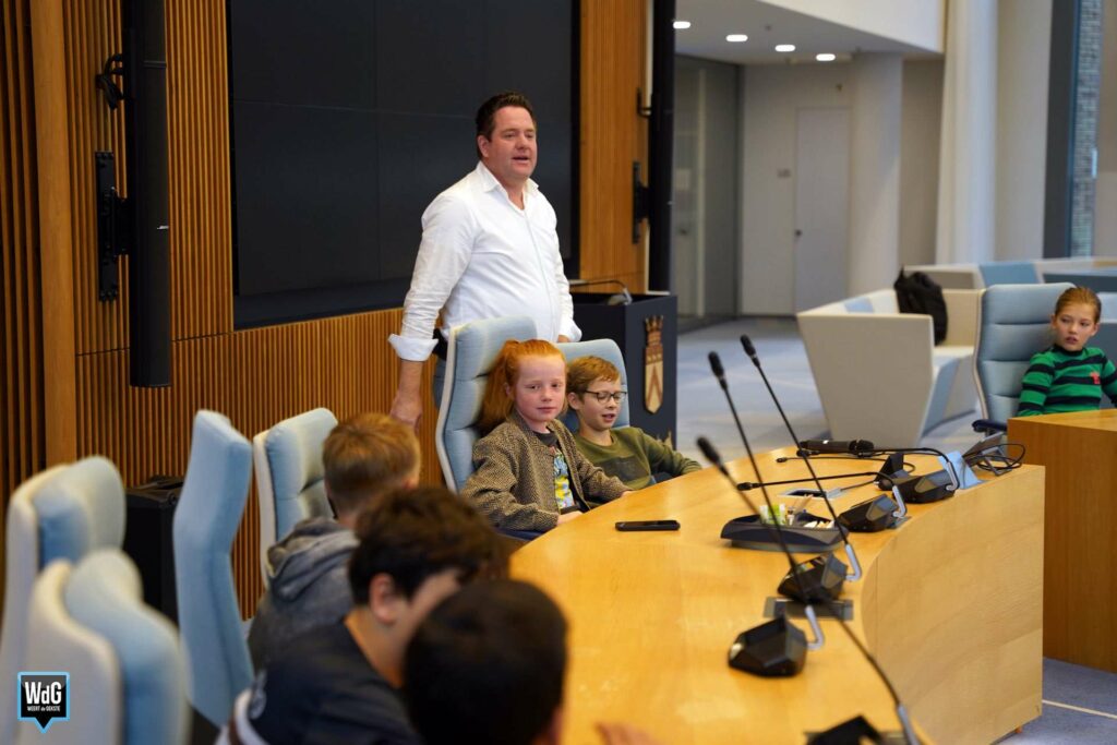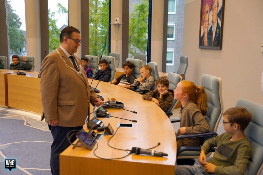 De leerlingen werden om 09.00 uur ontvangen in de raadszaal, waar ze eerst wat uitleg kregen over de gemeente. De burgemeester vertelde de leerlingen over zijn eigen loopbaan en verzekerde hen ervan dat ze het met de juiste instelling heel ver zouden kunnen schoppen.