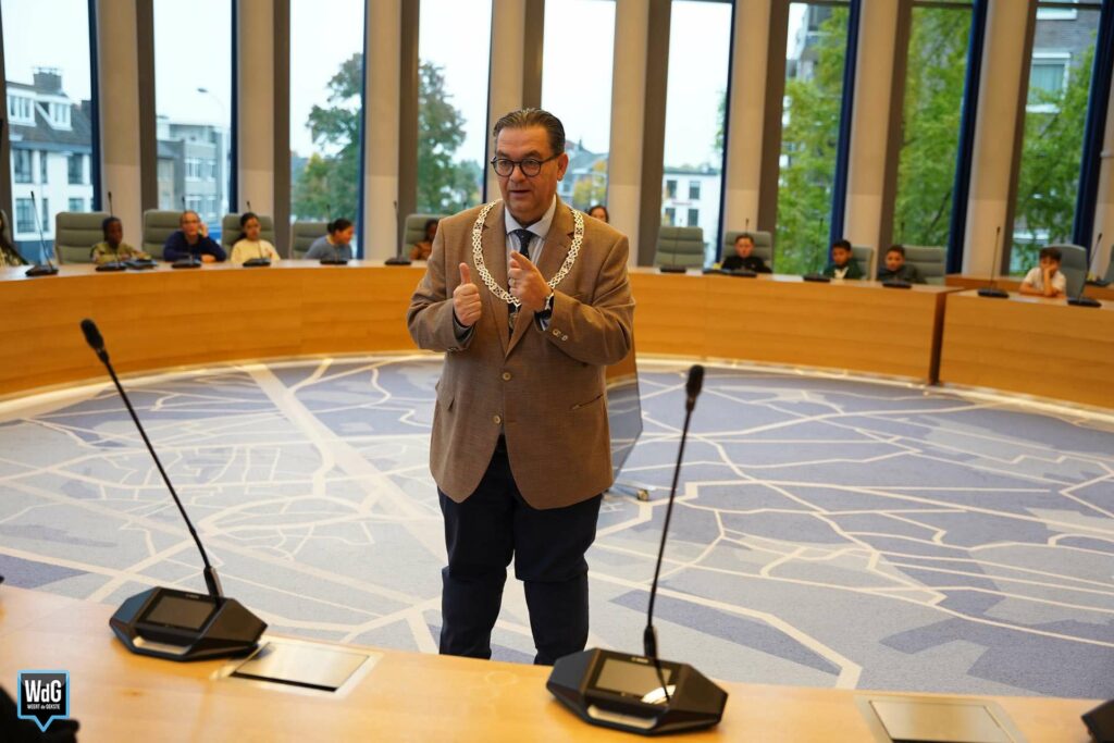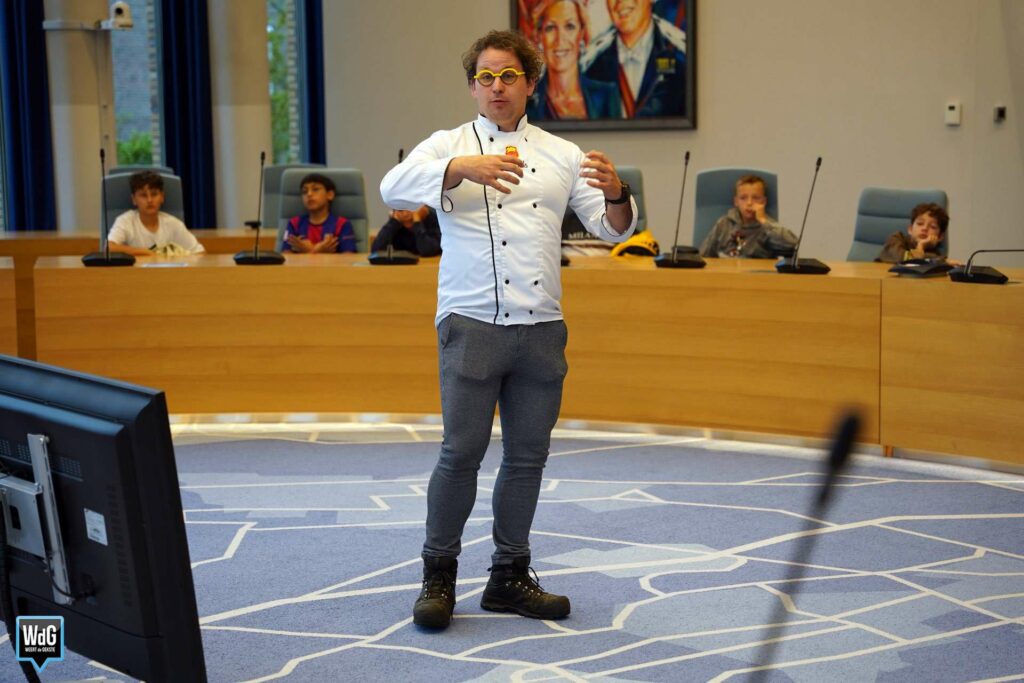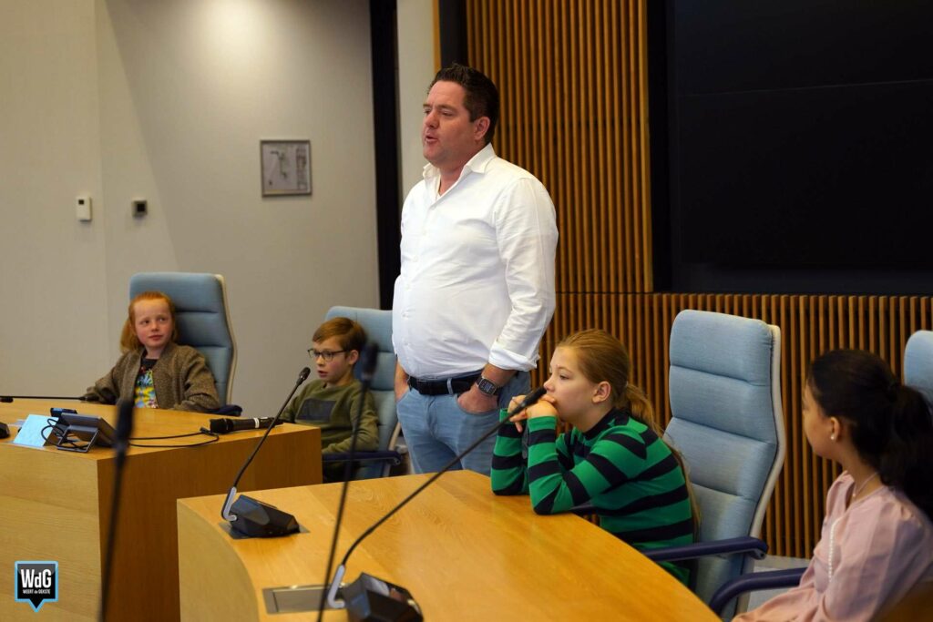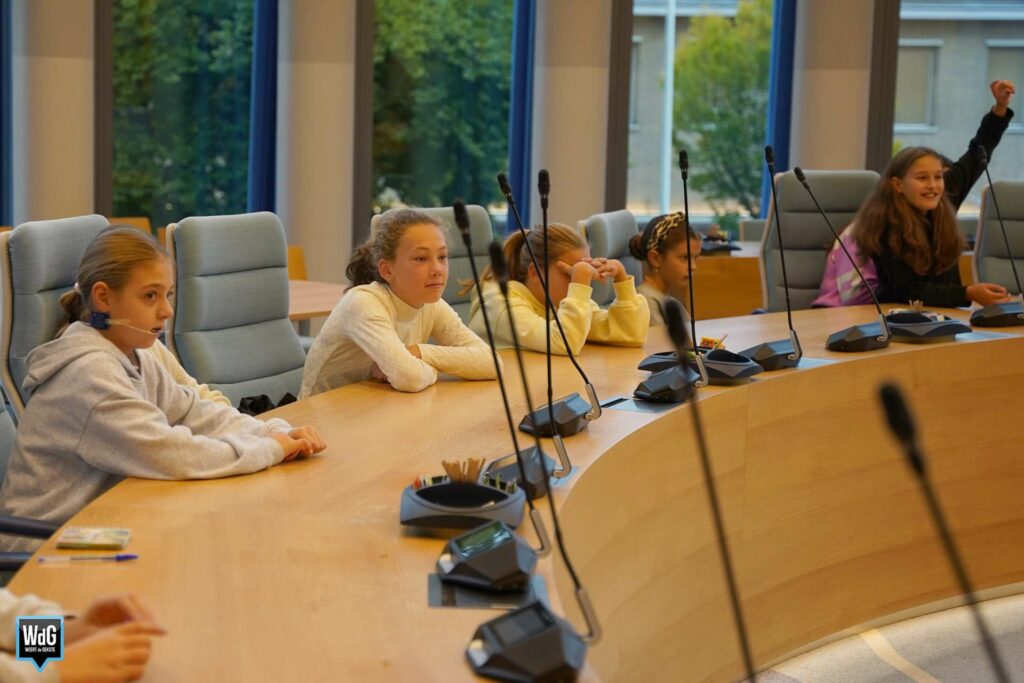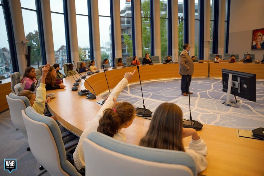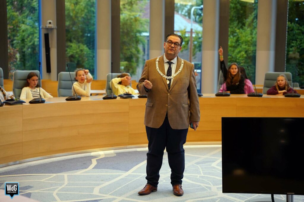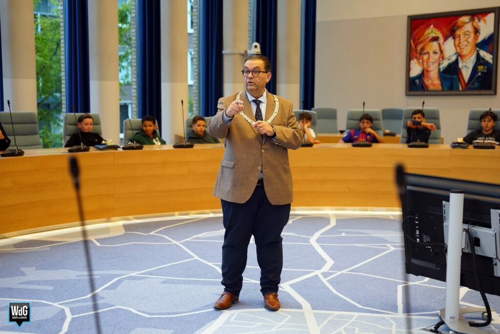 De leerlingen werden om 09.00 uur ontvangen in de raadszaal, waar ze eerst wat uitleg kregen over de gemeente. De burgemeester vertelde de leerlingen over zijn eigen loopbaan en verzekerde hen ervan dat ze het met de juiste instelling heel ver zouden kunnen schoppen.