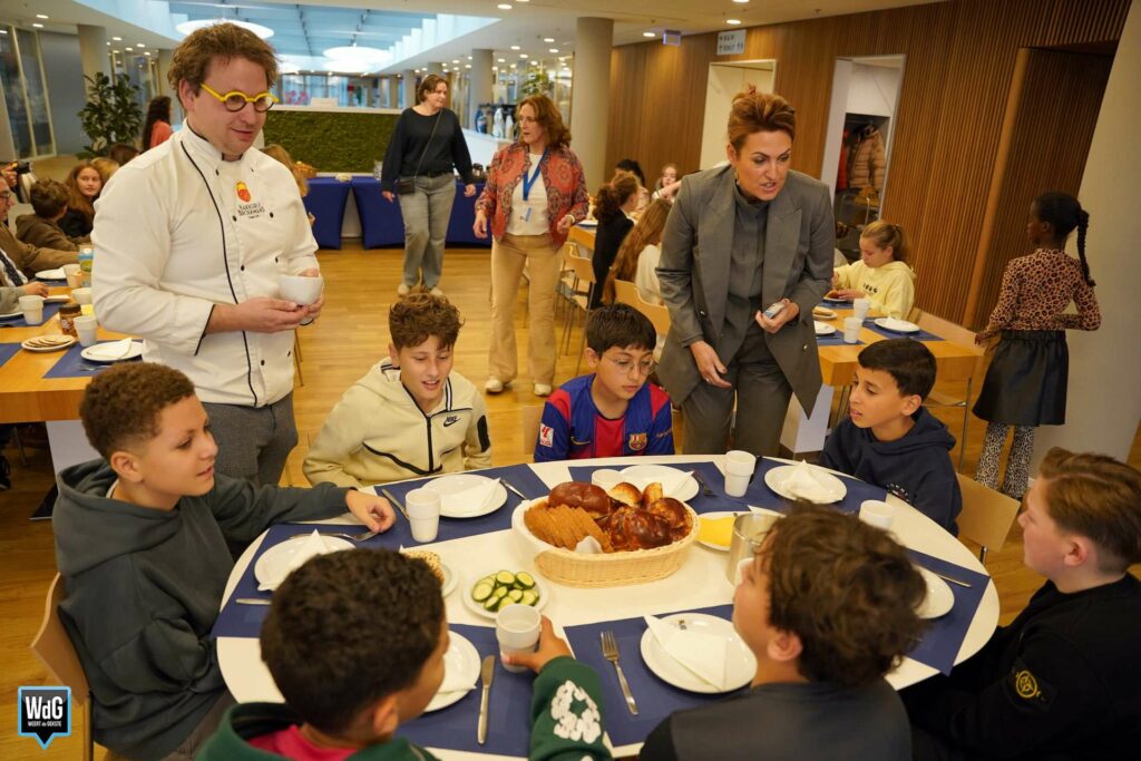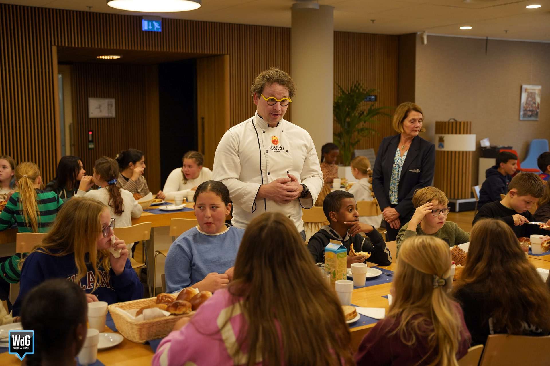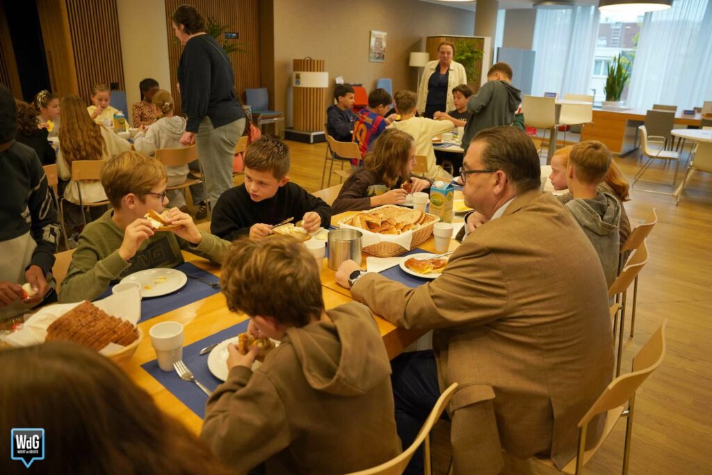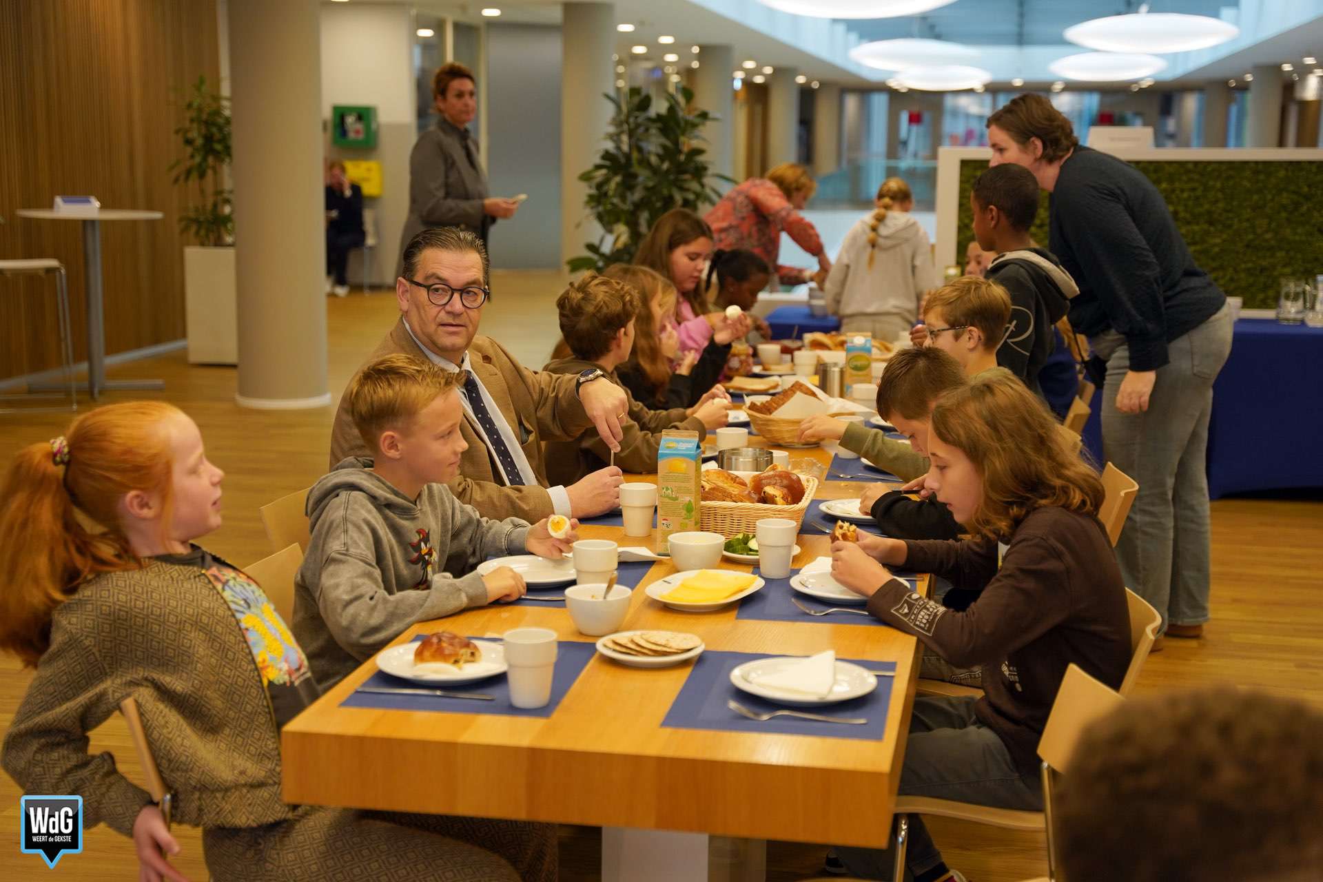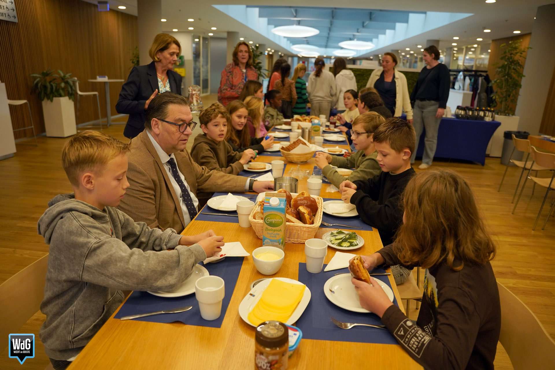 Leerlingen basisschool Aan de Bron ontbijten bij de burgemeester