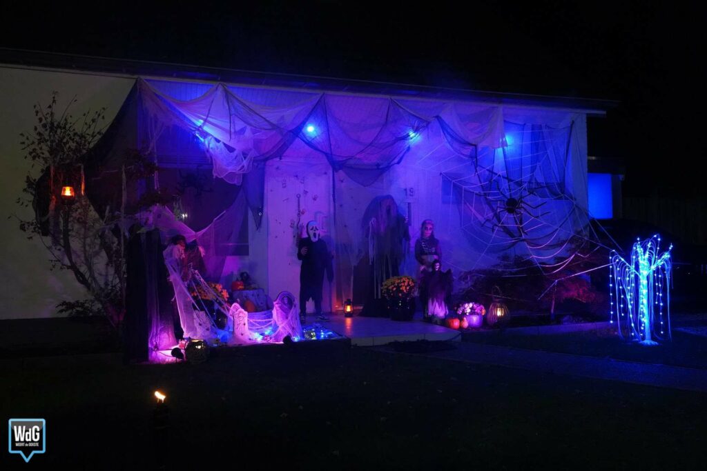 De voortuin van Deborah Boelee staat vol met Halloweenfiguren. De heks, vogelverschrikker en skeletten zijn sfeervol uitgelicht, en een rookmachine zorgt voor een nog spookachtigere sfeer. Ze hoopt dat het Halloweenfeest, dat is overgewaaid uit Amerika, nog populairder wordt: “Ik zou het leuk vinden als het toch wat meer gaat leven hier in Weert.”