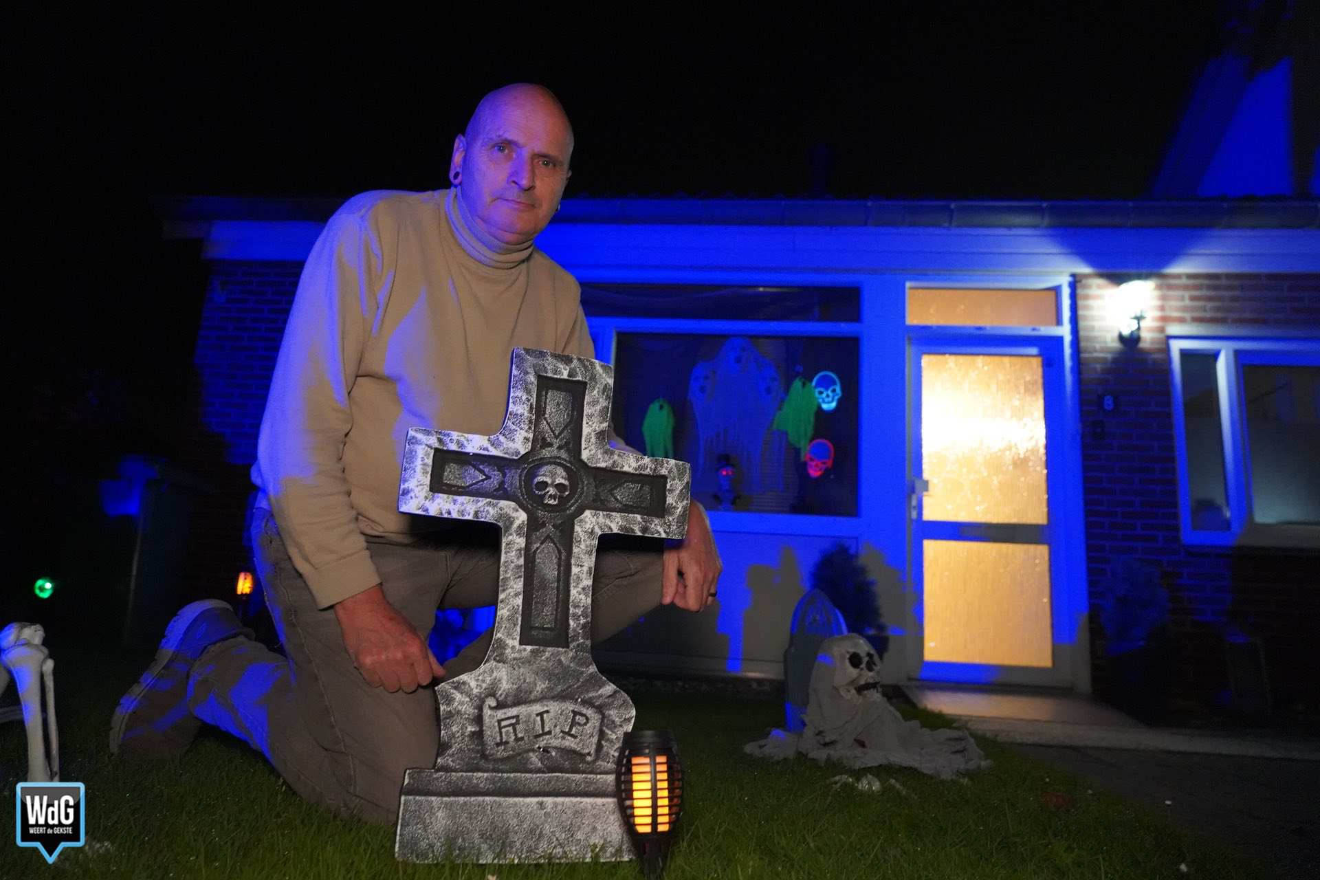 Halloween staat voor de deur; figuurlijk, maar bij steeds meer mensen ook letterlijk. In Weert worden steeds meer voortuinen versierd met grafzerken, spinnen en skeletten. Anderen bereiden zich voor op een spookachtige Halloweenavond. De een vindt het allemaal verschrikkelijk, de ander juist verschrikkelijk leuk. Tot die laatste groep behoren Stefan, Walter en Deborah.