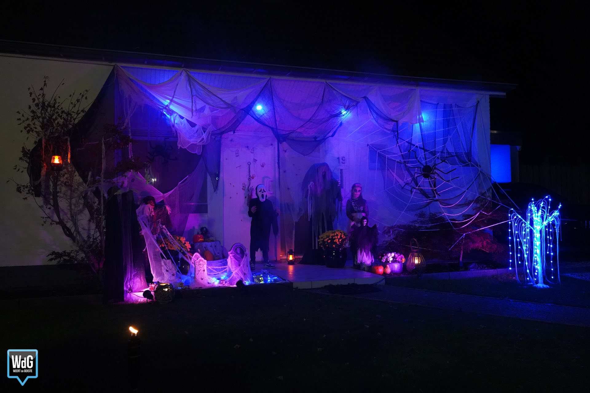 De voortuin van Deborah Boelee staat vol met Halloweenfiguren. De heks, vogelverschrikker en skeletten zijn sfeervol uitgelicht, en een rookmachine zorgt voor een nog spookachtigere sfeer. Ze hoopt dat het Halloweenfeest, dat is overgewaaid uit Amerika, nog populairder wordt: “Ik zou het leuk vinden als het toch wat meer gaat leven hier in Weert.”