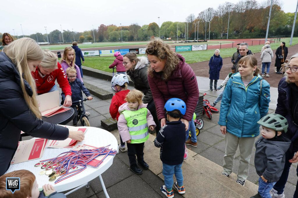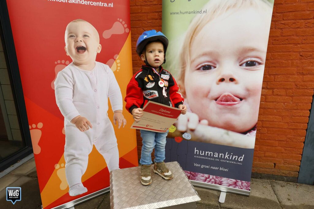 De jonge deelnemers gingen fanatiek van start. Enthousiast aangemoedigd door hun ouders, opa’s en oma’s, begeleiders en vrijwilligers reden de kinderen in totaal vier spannende rondes. Na afloop ontvingen alle kinderen een mooi diploma en een medaille als beloning.