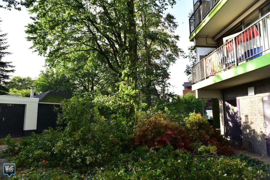 De tak is in kleinere stukken gezaagd om verdere overlast te voorkomen. De gemeente liet een kraan komen om de resten van de afgebroken tak op te ruimen.