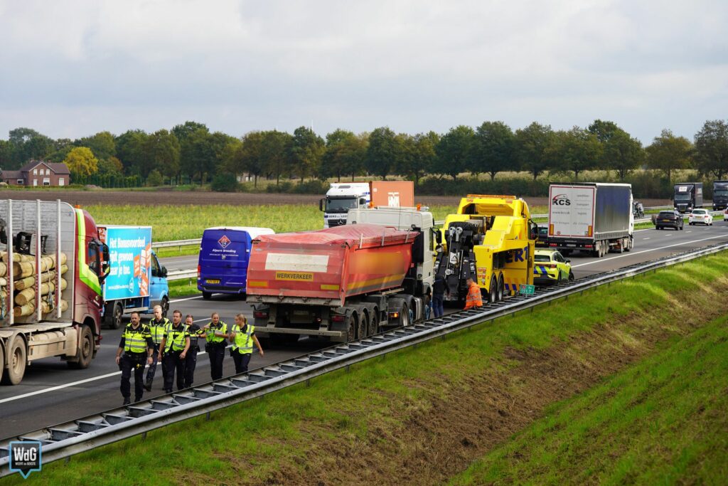 Ter plaatse bleek dat de band was afgebroken van de as. De band kwam daardoor los van de vrachtwagen, waarna deze aan de andere kant van de middenberm terecht is gekomen en een auto in tegemoetkomende richting heeft geraakt.
