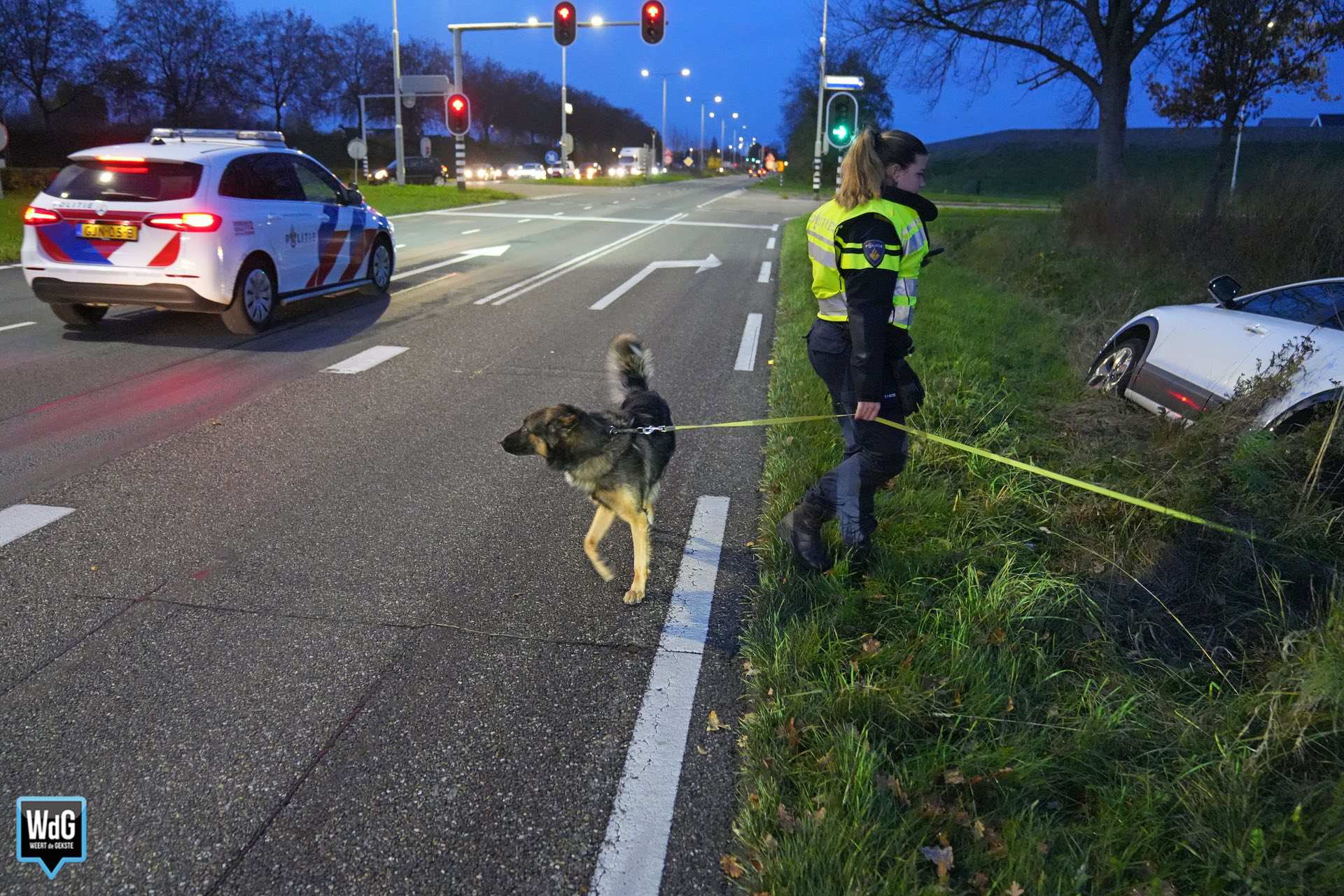 De auto reed in de richting van Nederweert naar Weert. Door nog onbekende oorzaak raakte het voertuig van de weg en kwam het in de sloot tot stilstand. De bestuurder en de hond kwamen met de schrik vrij.