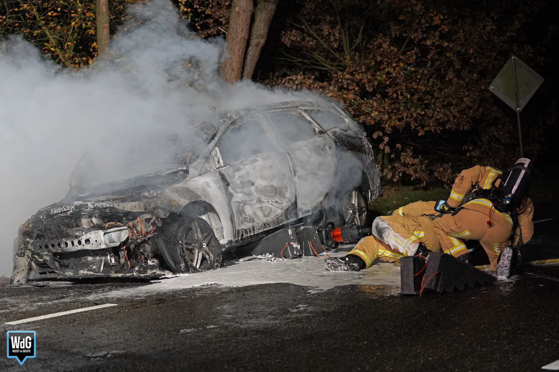 Toen de brandweer van Maarheeze arriveerde, stond de auto al volledig in brand. Door een benzinelekkage was het blussen lastig. Met behulp van een hydraulische spreider kon de auto iets worden opgetild, zodat de brandweer het vuur beter kon bestrijden. Tijdens het bluswerk was de Eindhovenseweg in beide richtingen afgesloten voor het verkeer.