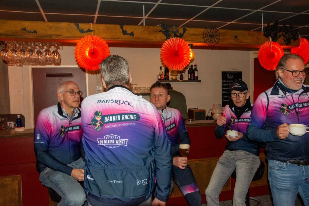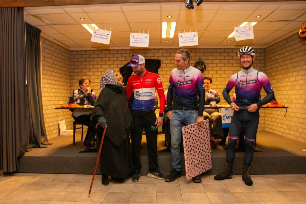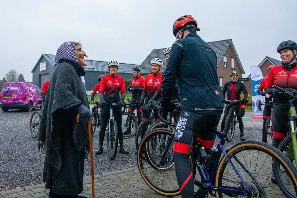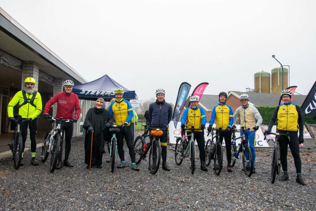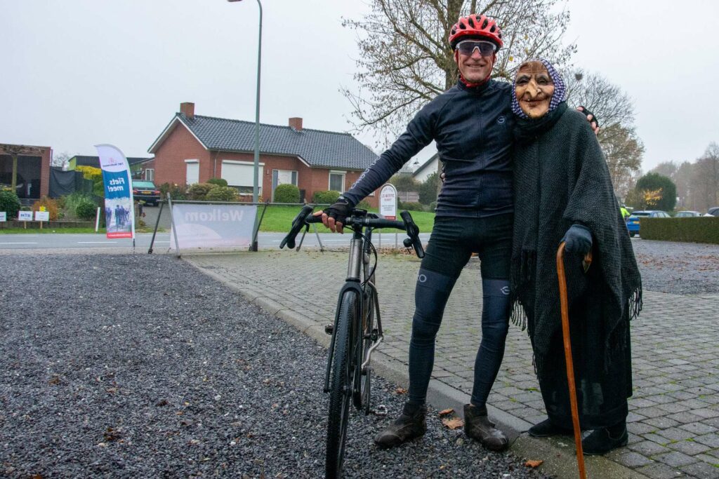 Heks Aldje Hendrikx en Erwin Bakker, de Nederlands kampioen MTB 2025 Masters 40+ en winnaar van de bronzen medaille bij het WK Gravel Masters 40+ van afgelopen zomer, toeterden de fietsers weg. Voorzitter Kees Helderman stond stil bij de prestaties van Erwin Bakker en overhandigde hem het ingelijste nieuwe wielershirt van TWC Nederweert.