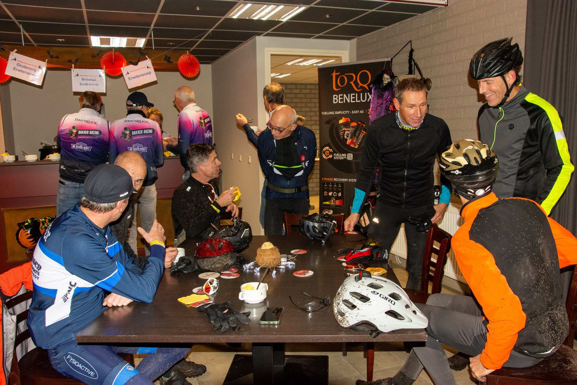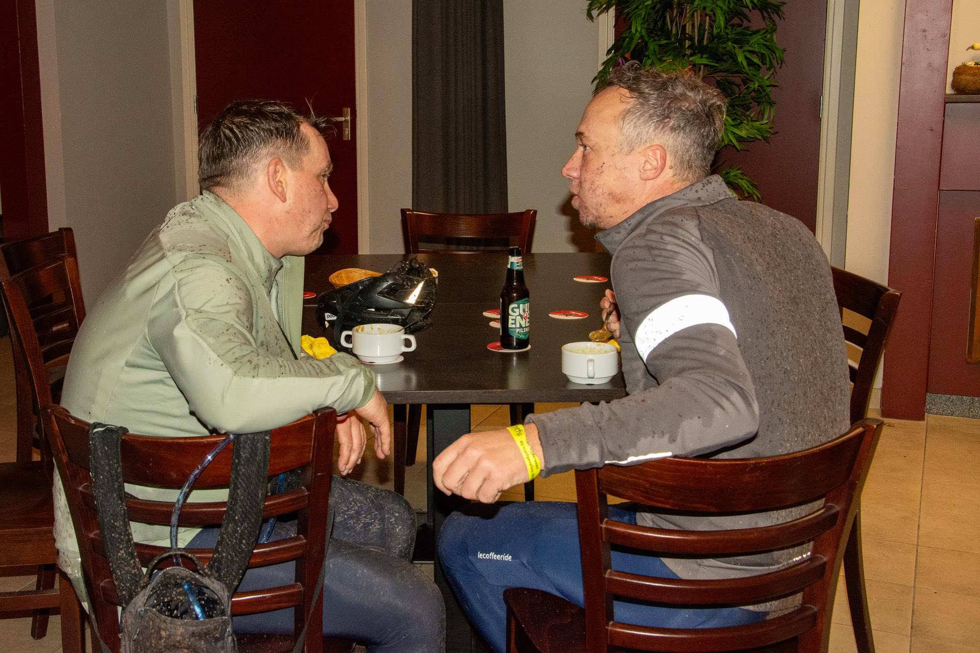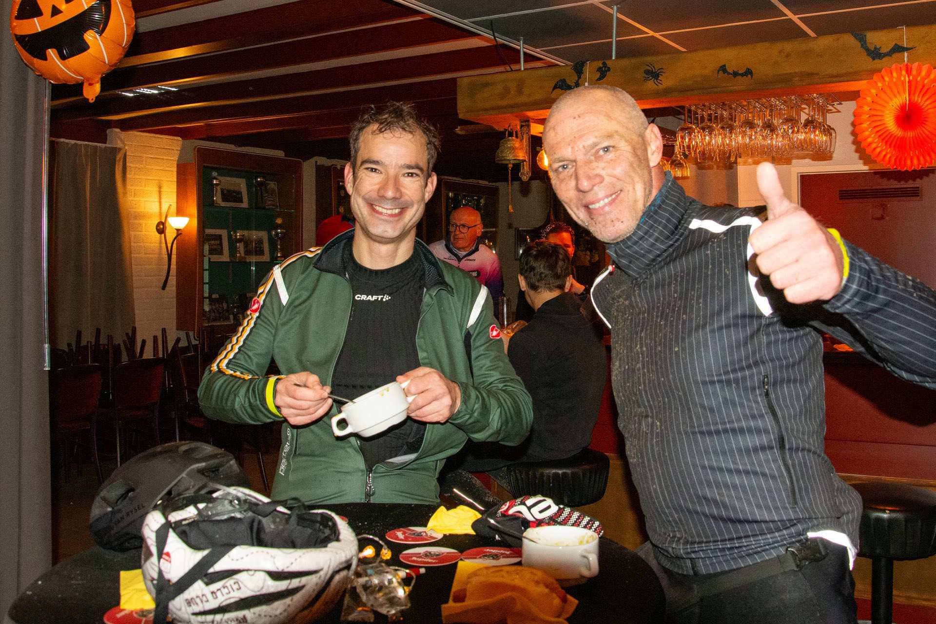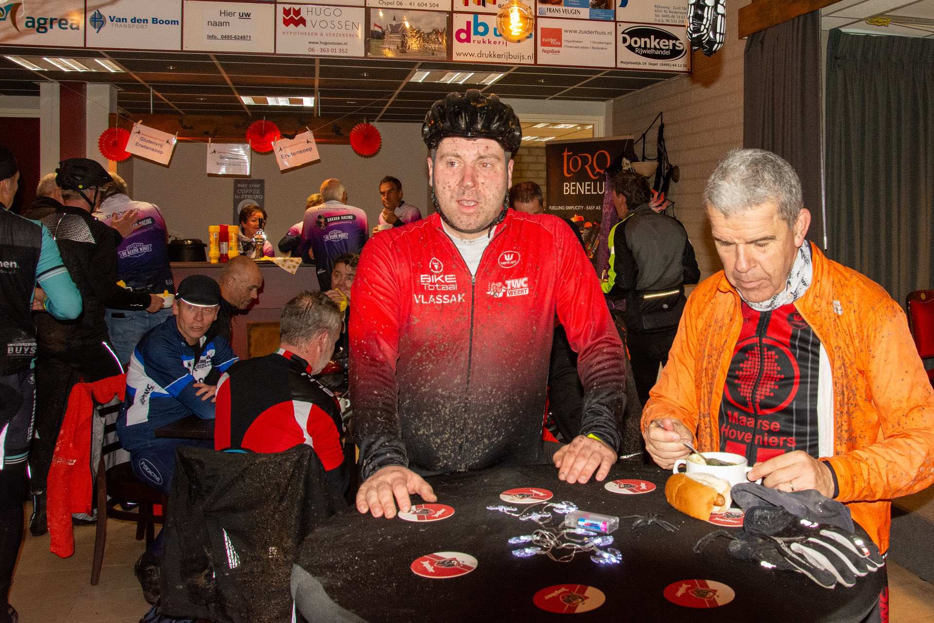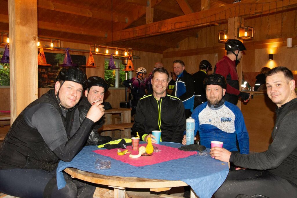 De deelnemers aan de Heksenheuveltocht waren positief over de vernieuwde MTB- en gravelroutes. “Afwisselend, over rustige weggetjes en rijdend door prachtige landschappen.” Met modder op hun gezicht, kleding en fiets arriveerden ze vrolijk op de pauzeplaatsen: minicamping Heksenheuvel in Someren en Hoeve Lieshout in Weert. Op de finishplek, café-zaal Le Winne in Nederweert, gingen de warme erwtensoep en het broodje knakworst er goed in.