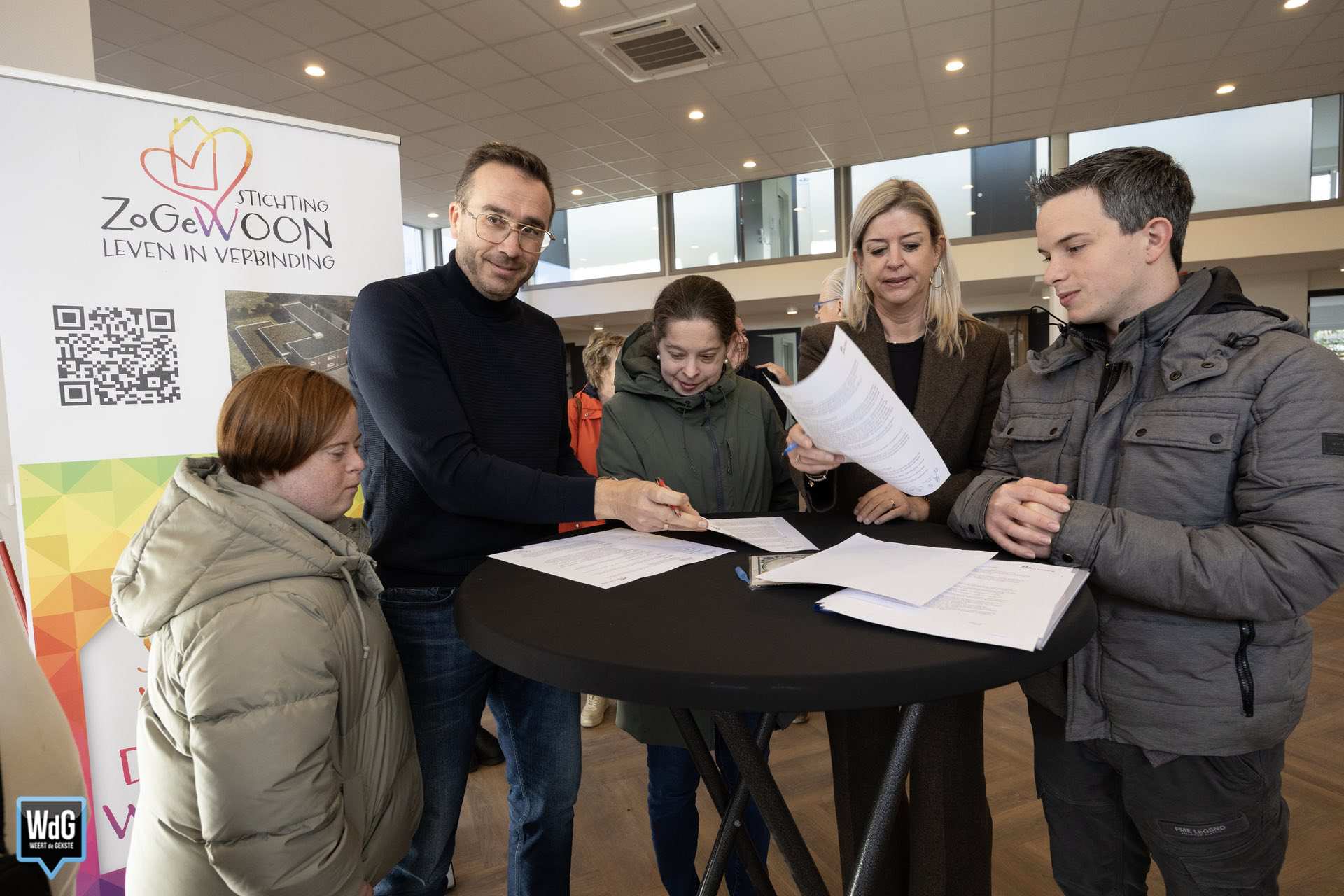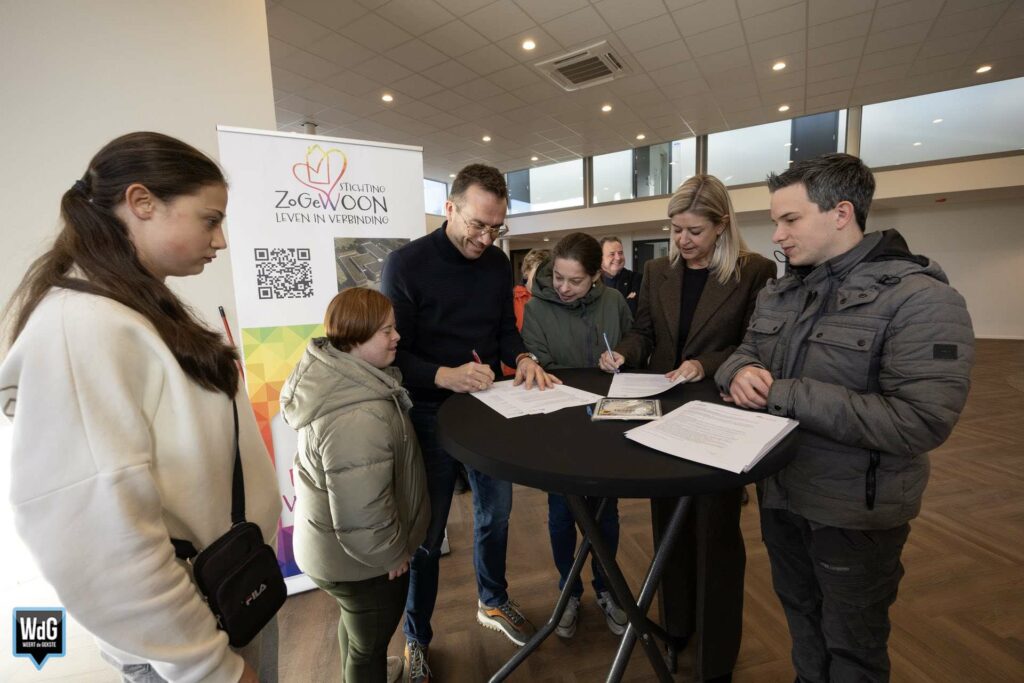 Vandaag kregen de eerste bewoners de sleutel van hun nieuwe appartement. Ook ondertekenden Wonen Limburg en Stichting ZoGewoon een overeenkomst die de samenwerking in dit bijzondere initiatief bekrachtigt. “Ondanks alle tegenslagen zijn we ontzettend trots met het bereiken van dit resultaat”, aldus Willem Gooren, ouder en voorzitter van Stichting ZoGewoon.
