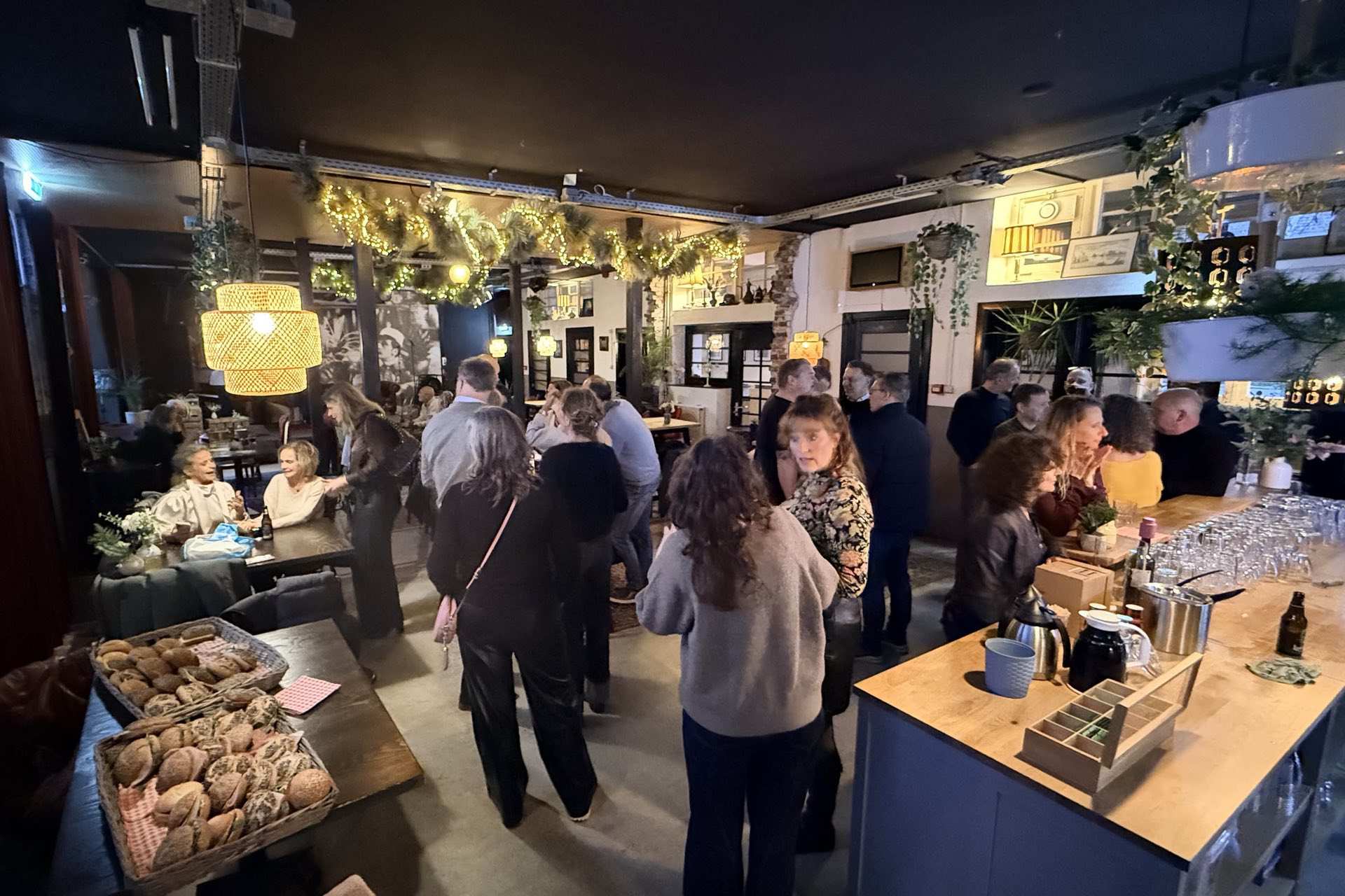 Na een diner bij restaurant Brusco in de Langstraat werd de dag afgesloten in stadscafé Du Commerce, waar het samenzijn tot in de late uurtjes doorging.