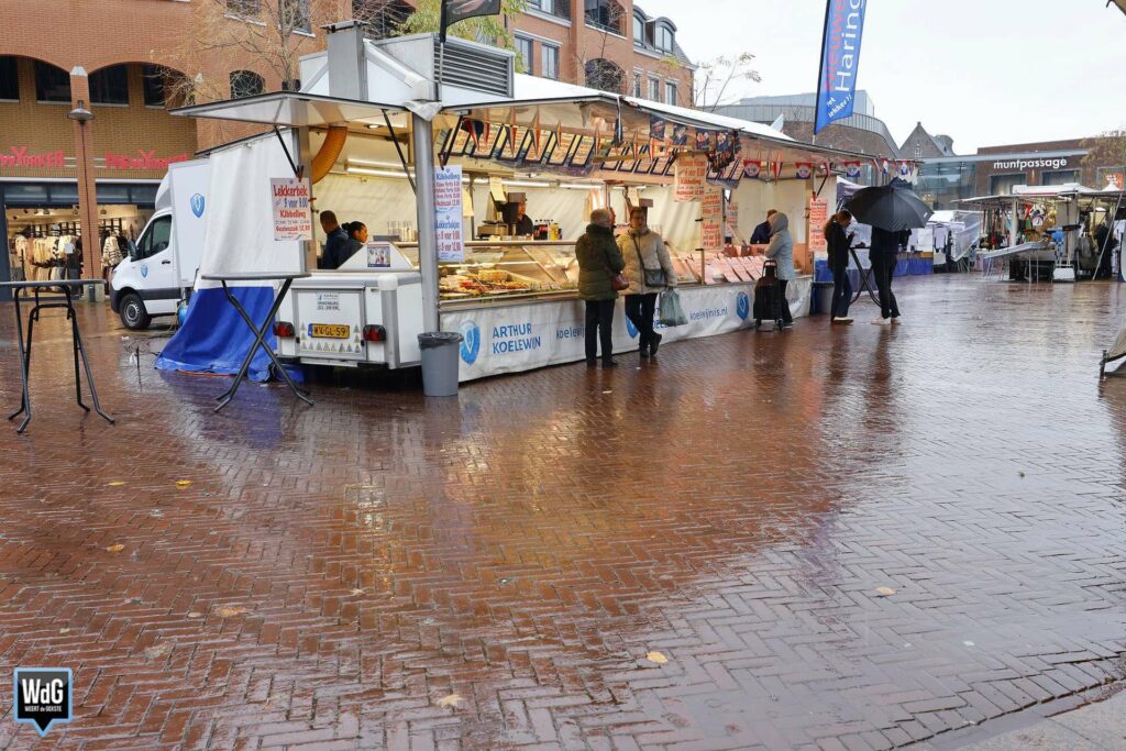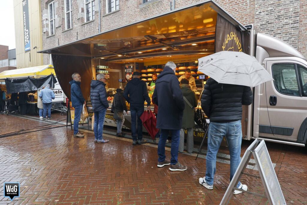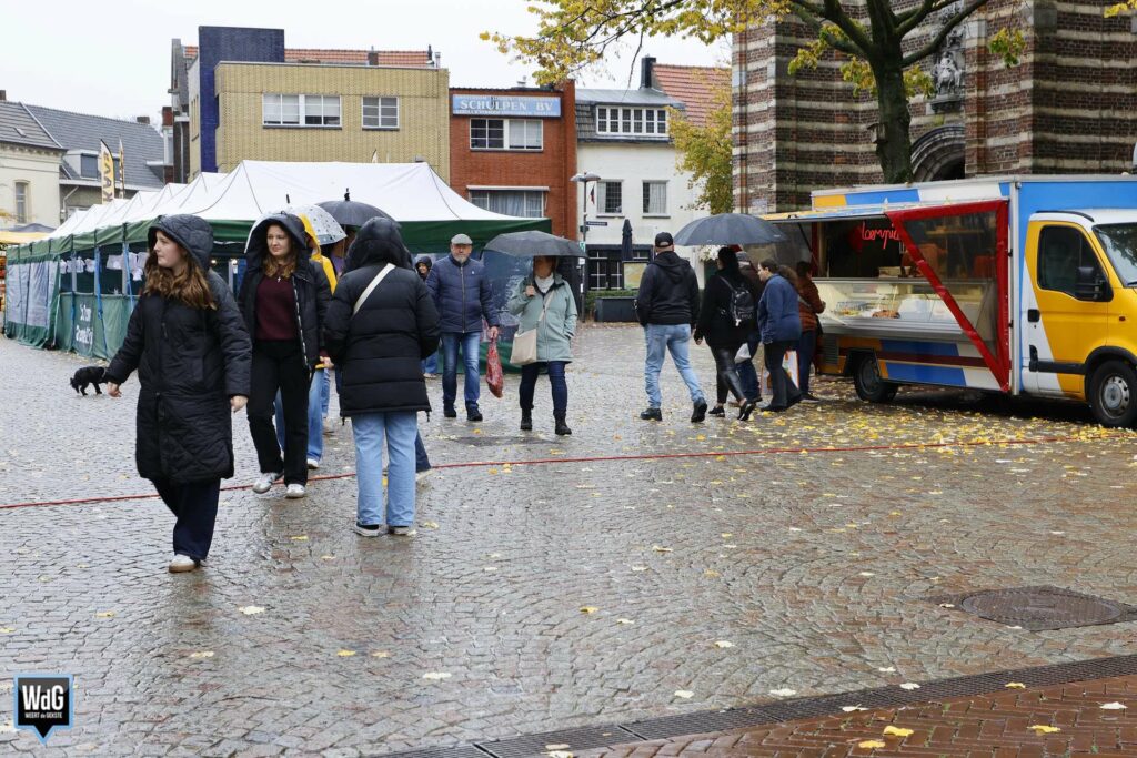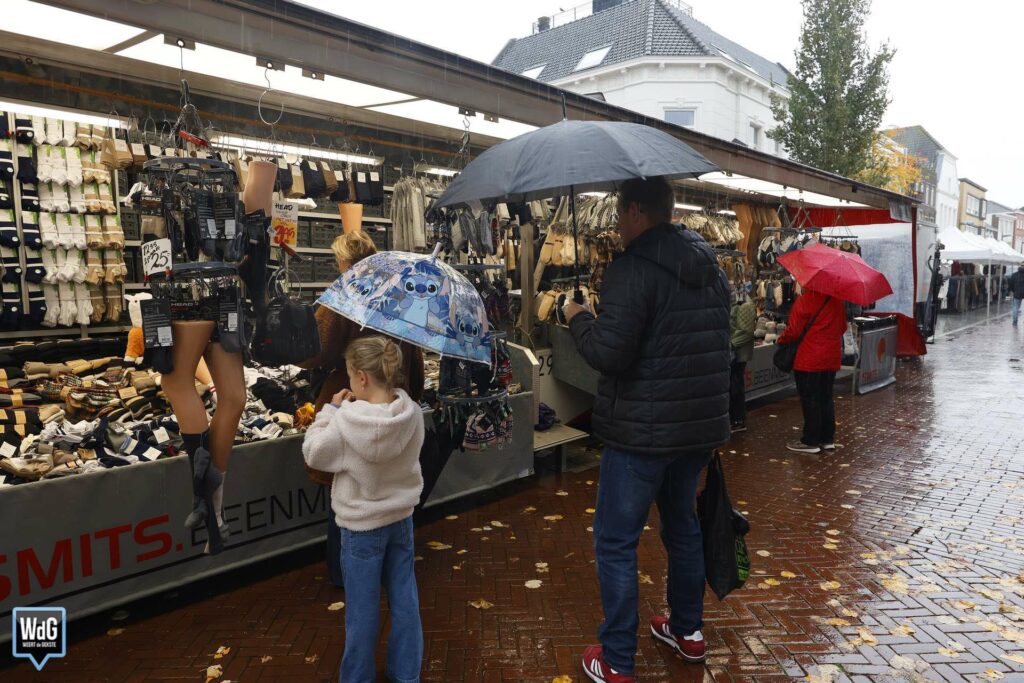 De weekmarkt in Weert had zaterdag last van het druilerige herfstweer. De paraplu’s gingen open en regenjassen kwamen uit de kast, want er viel flink wat regen. Dat zorgde ervoor dat het rustiger was dan op een doorsnee marktdag.