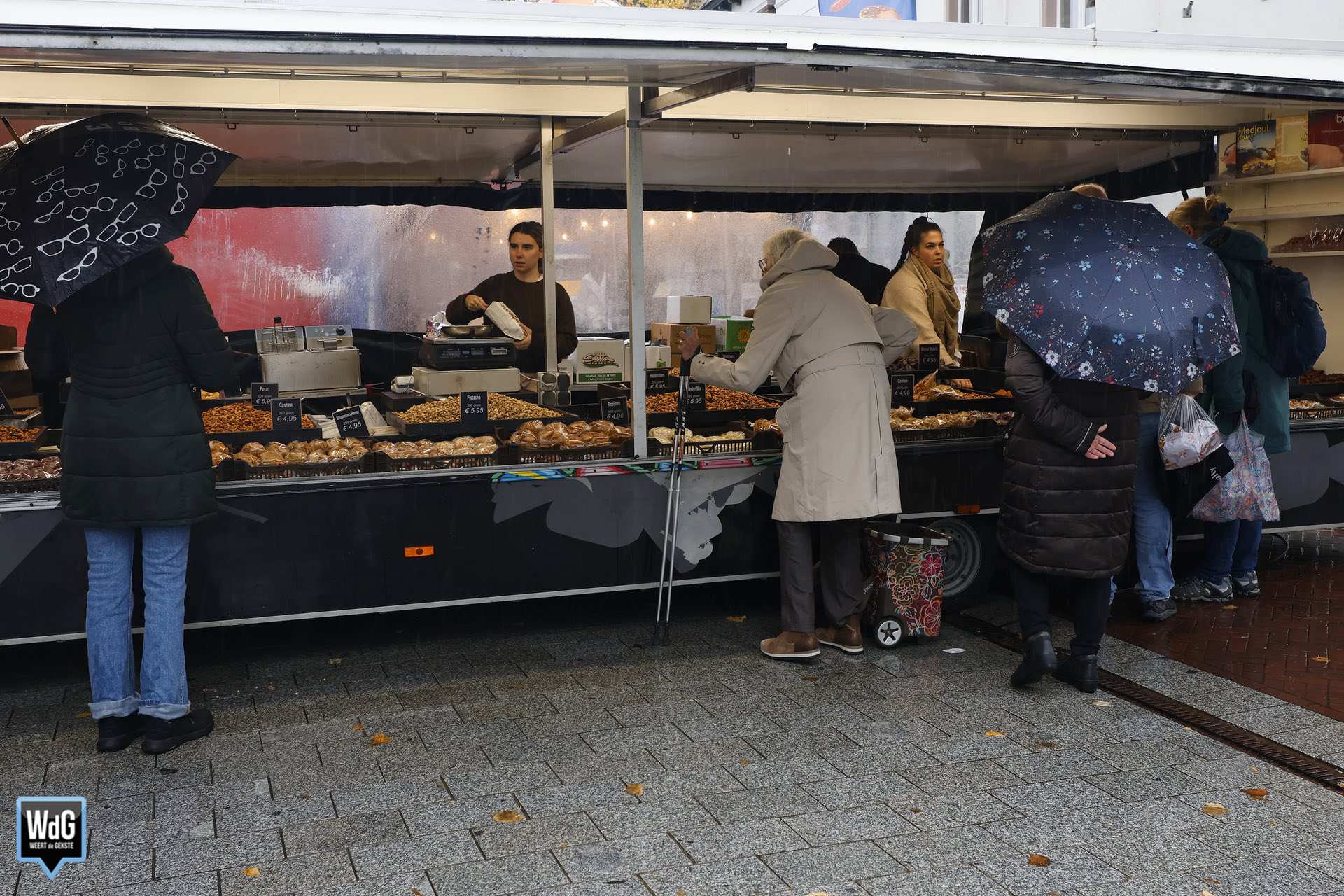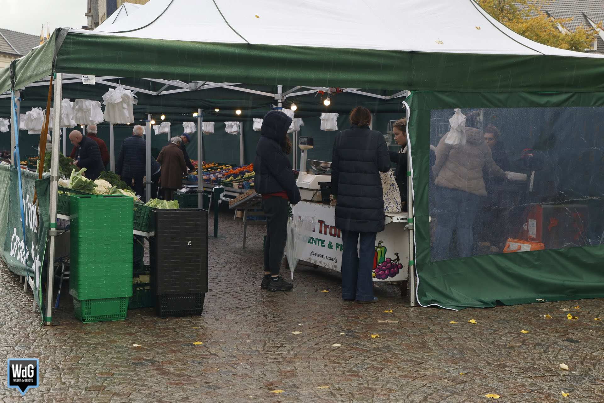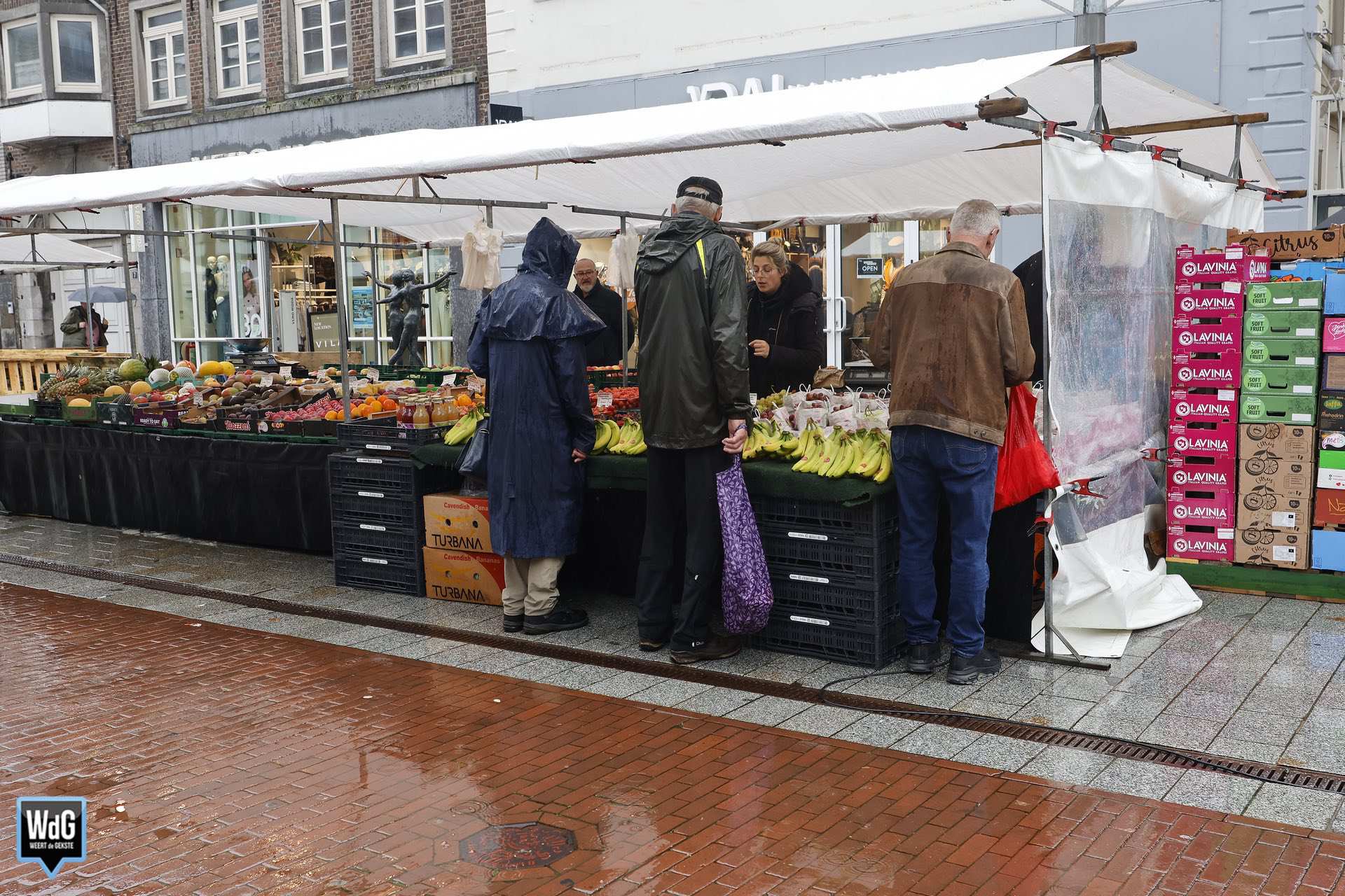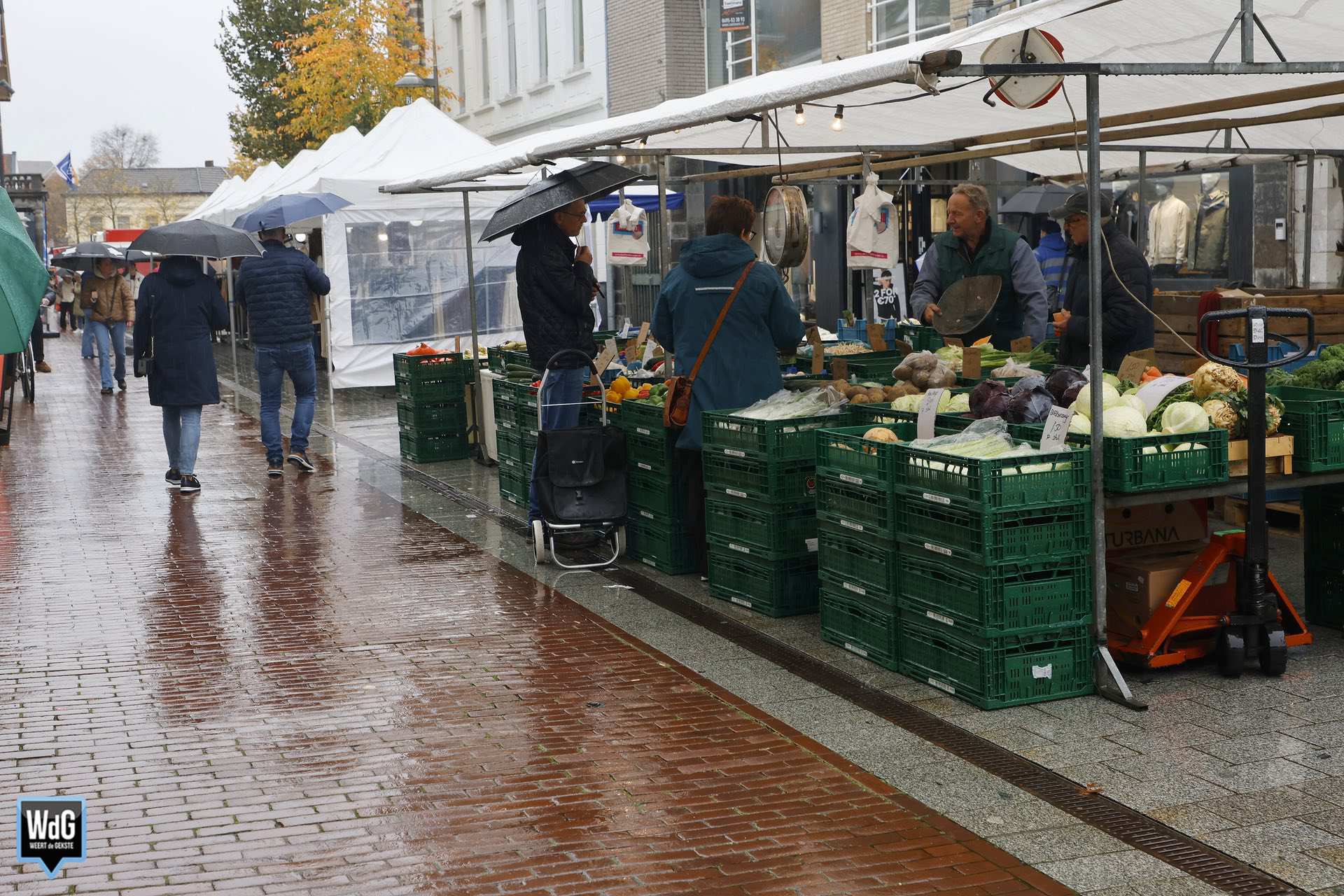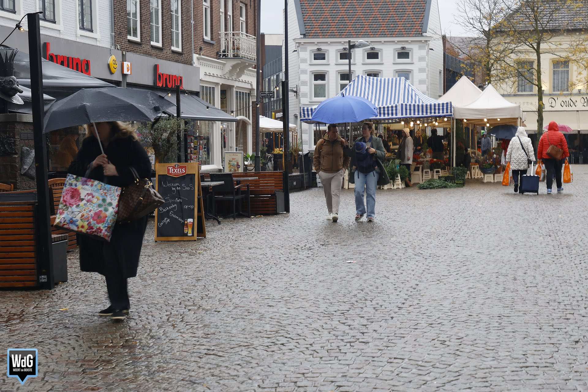 De weekmarkt in Weert had zaterdag last van het druilerige herfstweer. De paraplu’s gingen open en regenjassen kwamen uit de kast, want er viel flink wat regen. Dat zorgde ervoor dat het rustiger was dan op een doorsnee marktdag.