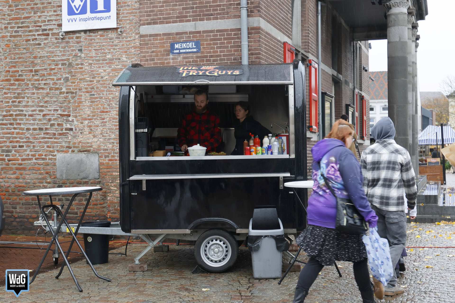 Toch trotseerden verschillende bezoekers het natte weer om een kijkje te nemen bij de kramen in de binnenstad. Sommige ondernemers verrasten het winkelend publiek zelfs met een proeverijtje.