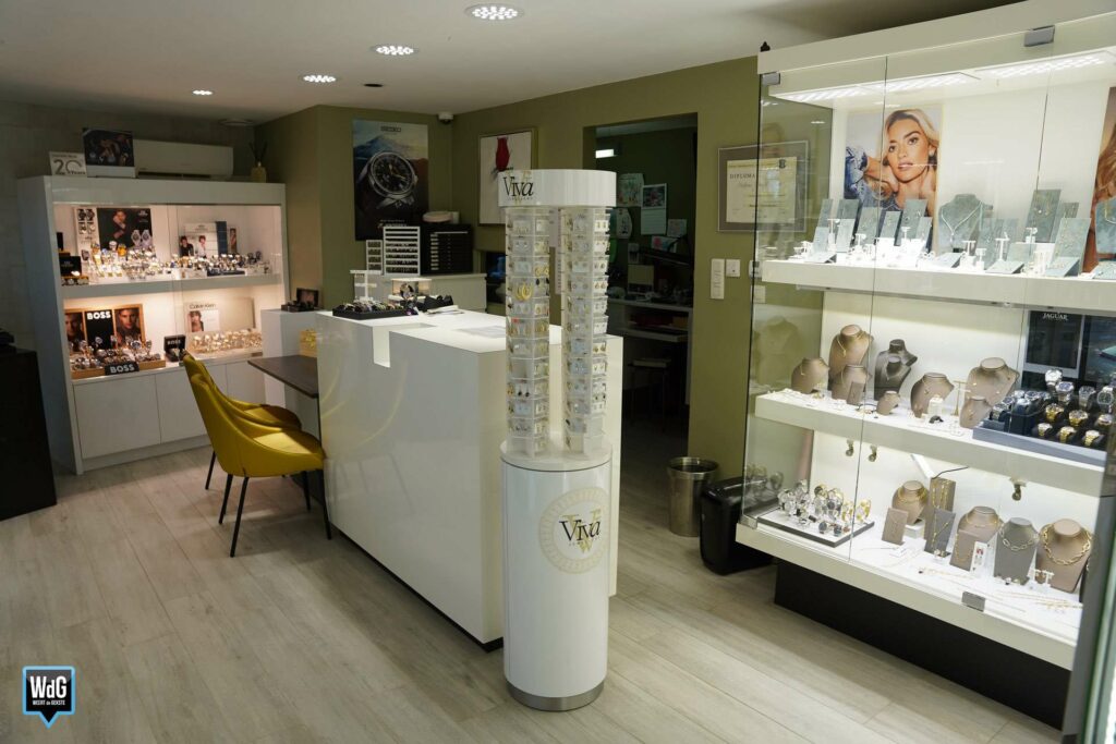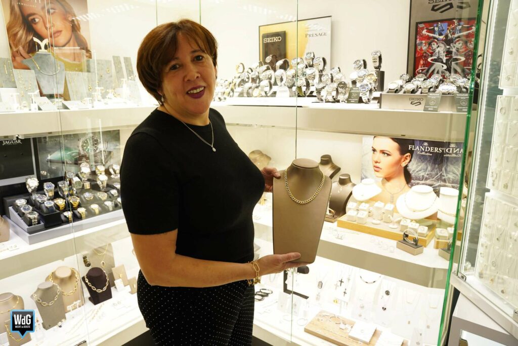 Een ouderwetse juwelier in een modern jasje, zo noemt Roos zichzelf. Ze verkoopt ook zilveren en vergulden sieraden, maar presenteert het liefst de betere juwelen van bijvoorbeeld 18 karaat goud met diamanten. “Een collega van mij was laatst enthousiast over een product van een bepaald merk. Ze vertelde dat als het kapot ging, je het gewoon terug kon sturen en een nieuwe zou ontvangen. Maar daar sta ik dus niet achter: ik wil niet dat iets kapotgaat. Je moet een juweel natuurlijk dragen zoals je het hoort te dragen en dan hoort het in principe niet stuk te gaan. Van het merk waar deze collega het over had bleken de juwelen dus wel regelmatig stuk te gaan – dat is voor mij een reden om verder te zoeken naar een product dat degelijker is en waar ik wél voor 100% achter kan staan.”