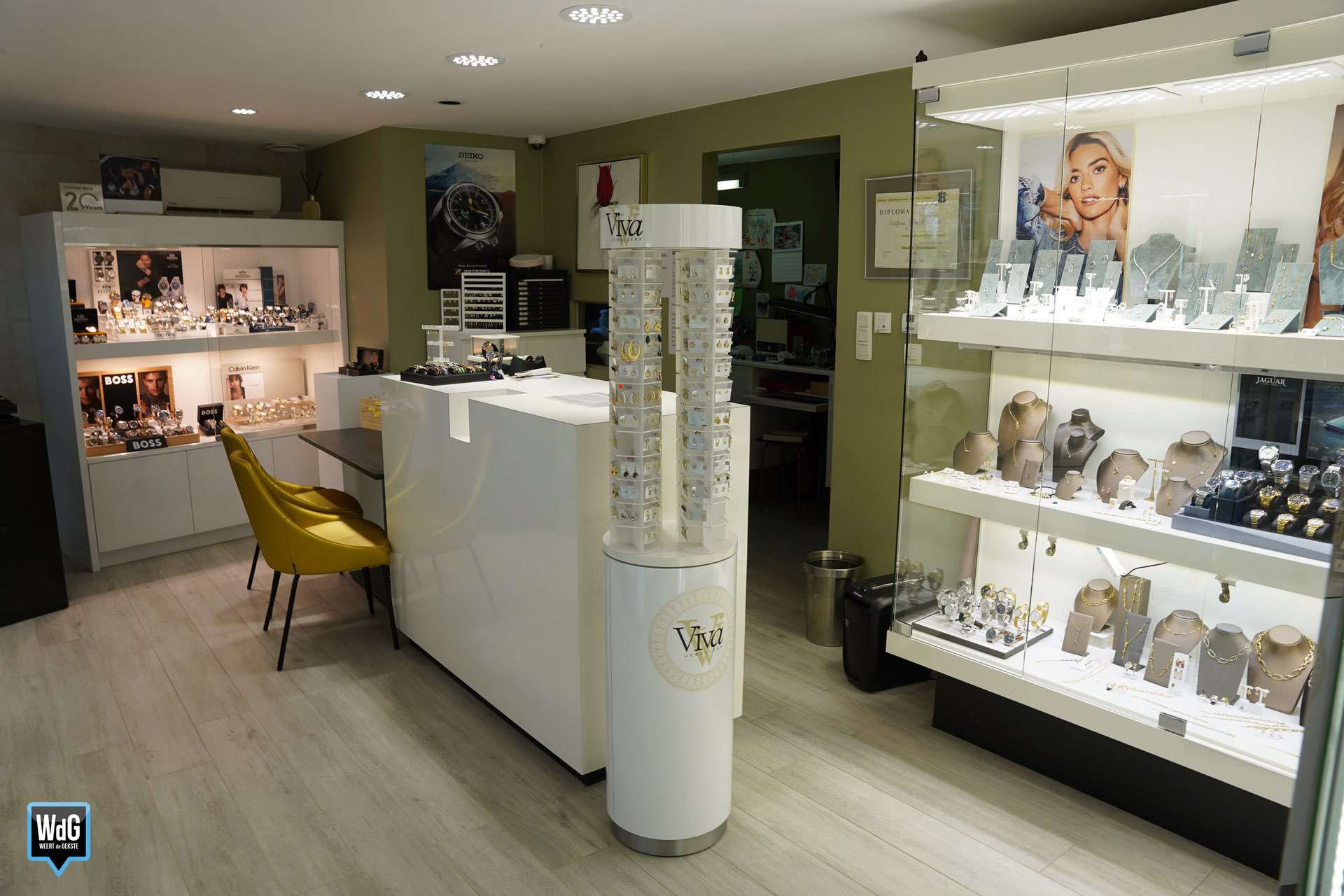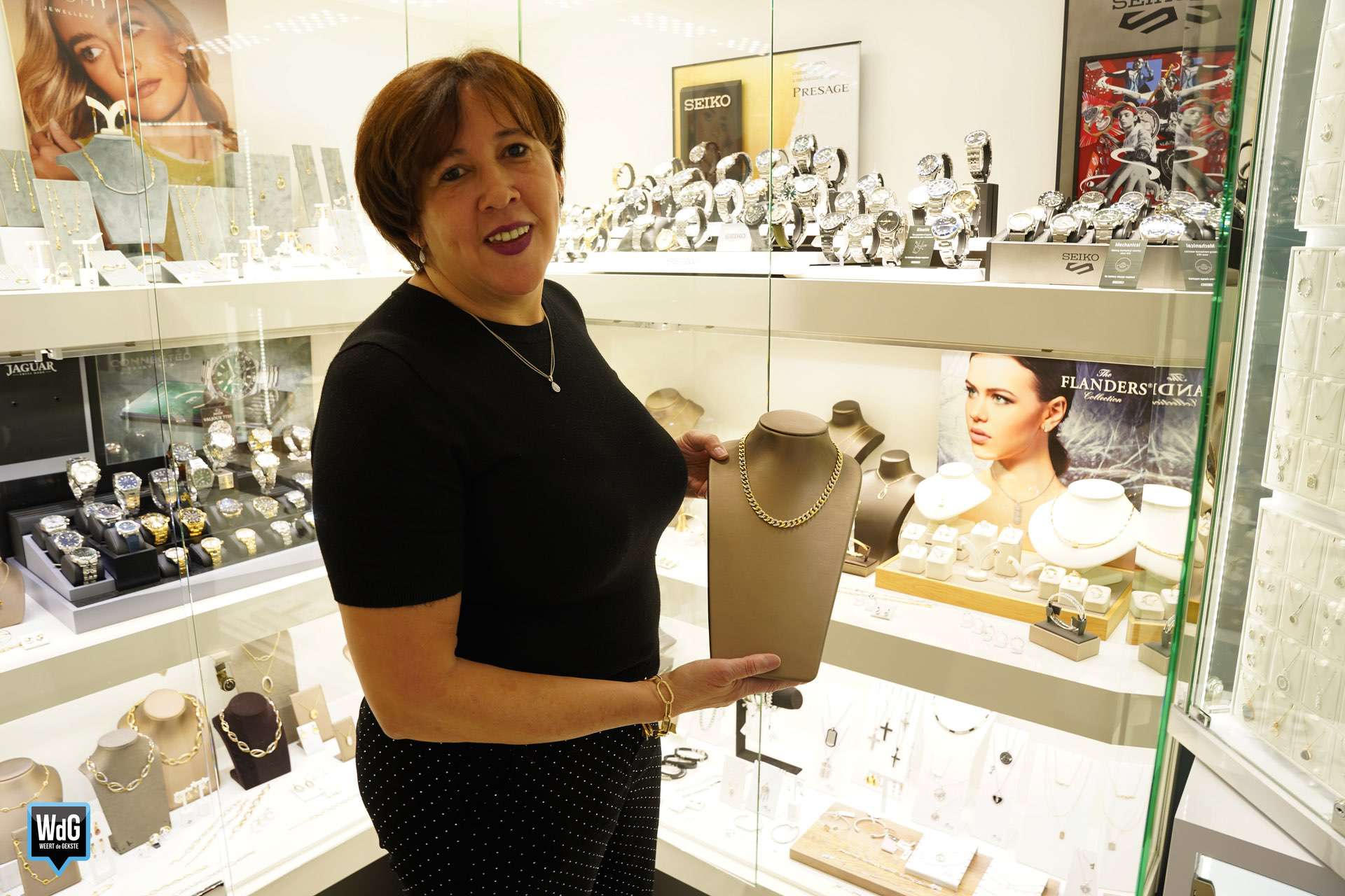 Die producten vindt Roos bij onder andere de nieuwe merken Jéh en Eterno, maar ook haar persoonlijke favoriet The Flanders Collection. “Daarnaast heeft Festina een nieuw jasje gekregen, dus heb ik die collectie ook helemaal vernieuwd. Di Luna heeft nieuwe gouden juwelen met diamanten waar dit keer best wel wat kleurstenen in zitten; echt heel mooi, dus die heb ik ook toegevoegd. Bovendien zijn de laatste uurwerken van Seiko binnengekomen, waarin een nieuwe tendens zichtbaar is: het digitale in plaats van het analoge.”