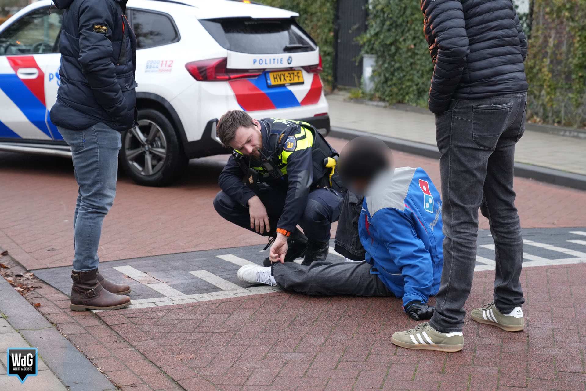Uiteindelijk is de jongeman in de ambulance onderzocht. Hij hoefde niet mee naar het ziekenhuis en is opgehaald door een collega. De scooter wordt door het bezorgbedrijf opgehaald.