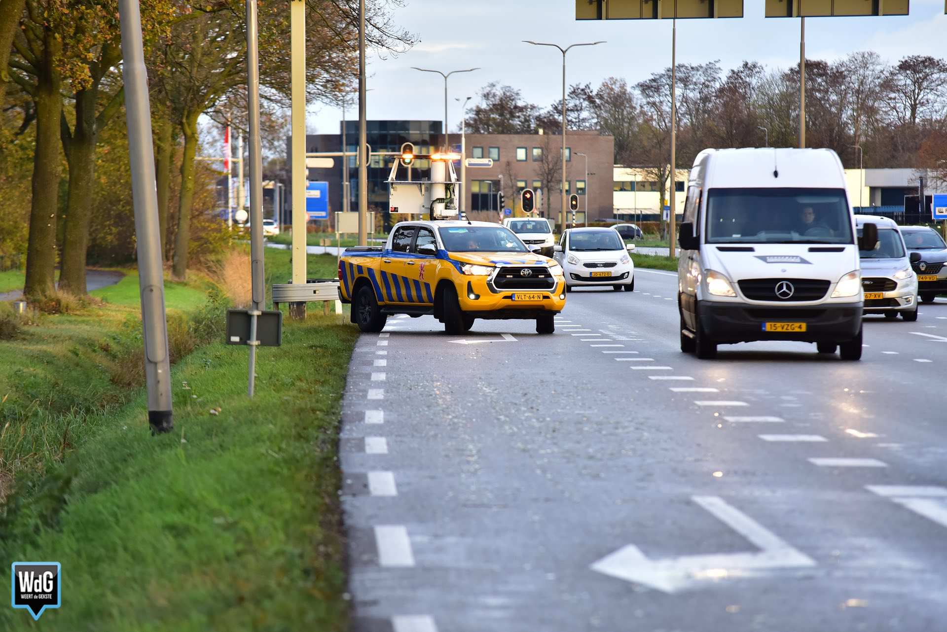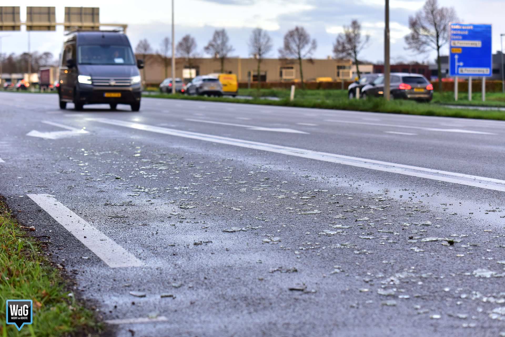 Op meerdere kruispunten, waaronder bij de N266 en ter hoogte van McDonald’s en KFC, lagen duizenden stukjes glas verspreid over een lengte van tientallen meters. Om de veiligheid te waarborgen sloot de wegbeheerder één rijbaan af. Het verkeer had enige hinder van de vervuiling op het wegdek.