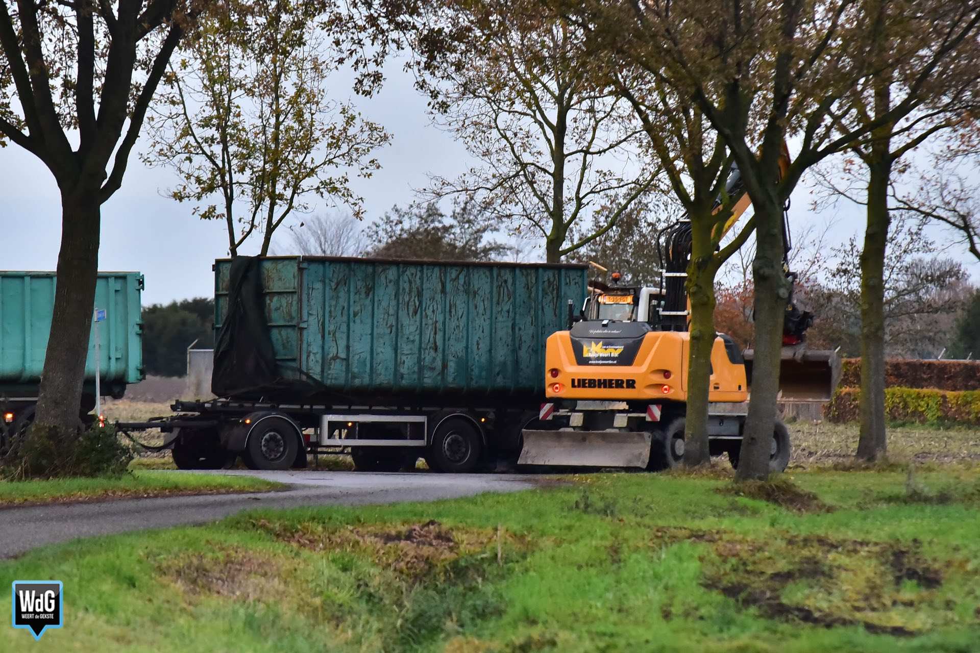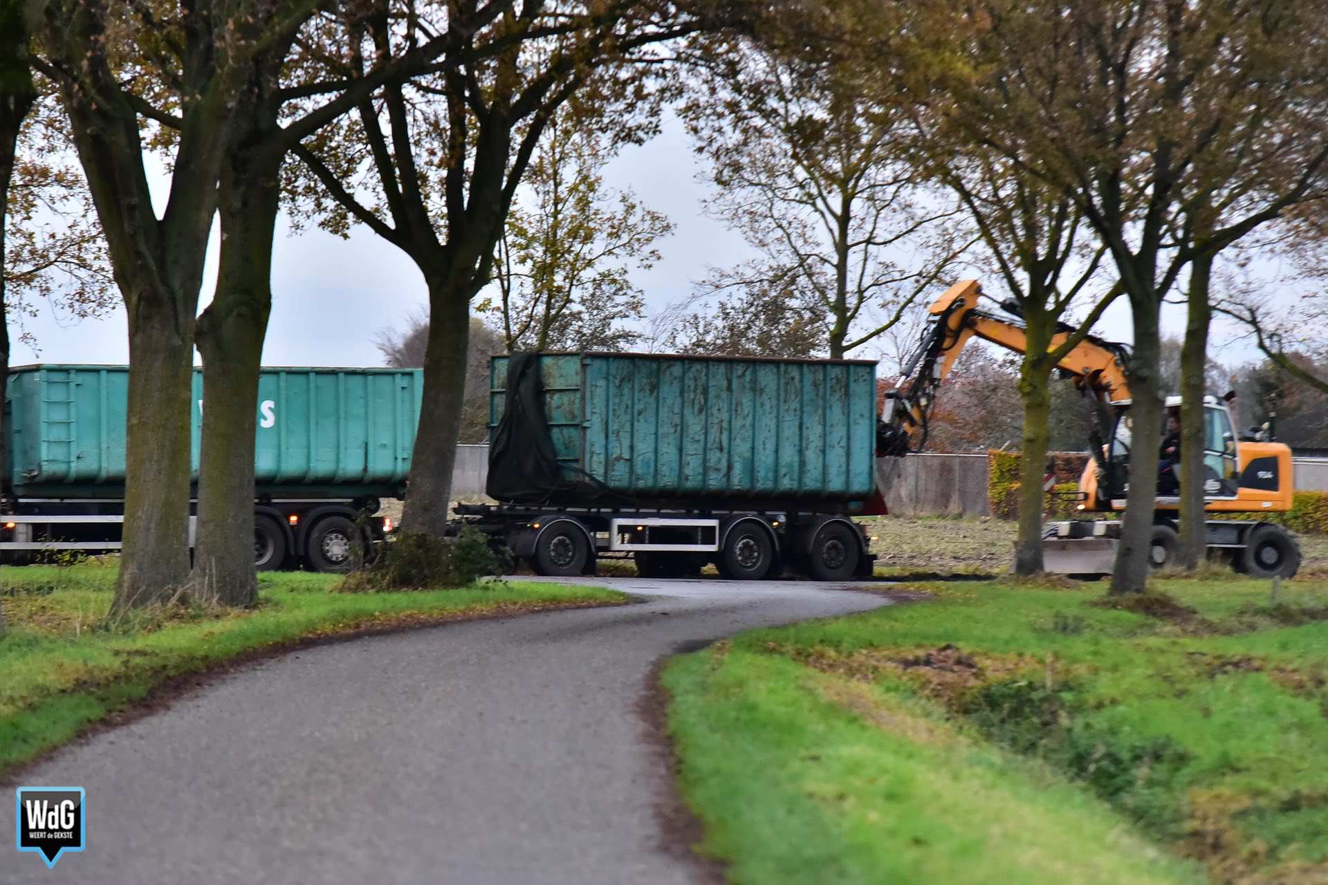 Een loonwerker werd ingeschakeld om de chauffeur te ondersteunen. De provincie schakelde daarnaast een aannemer in om het wegdek te reinigen.