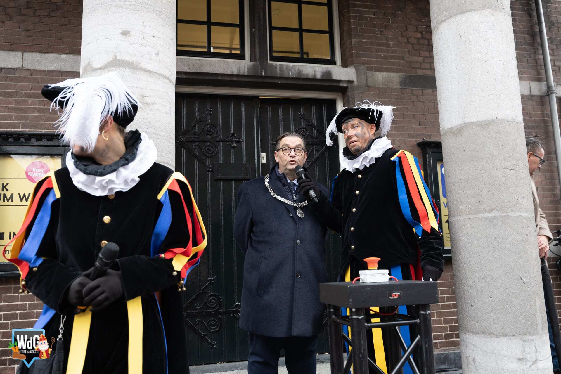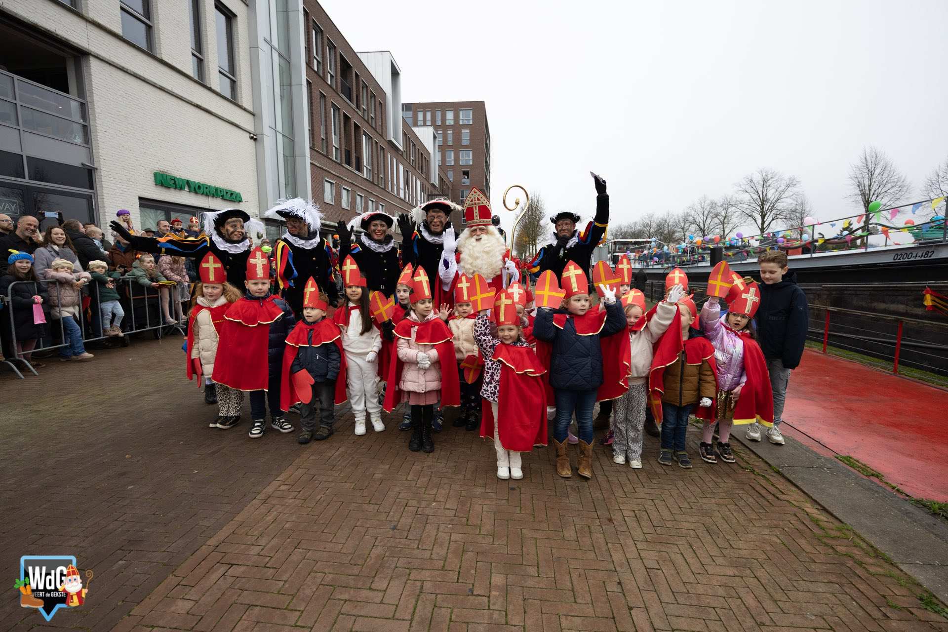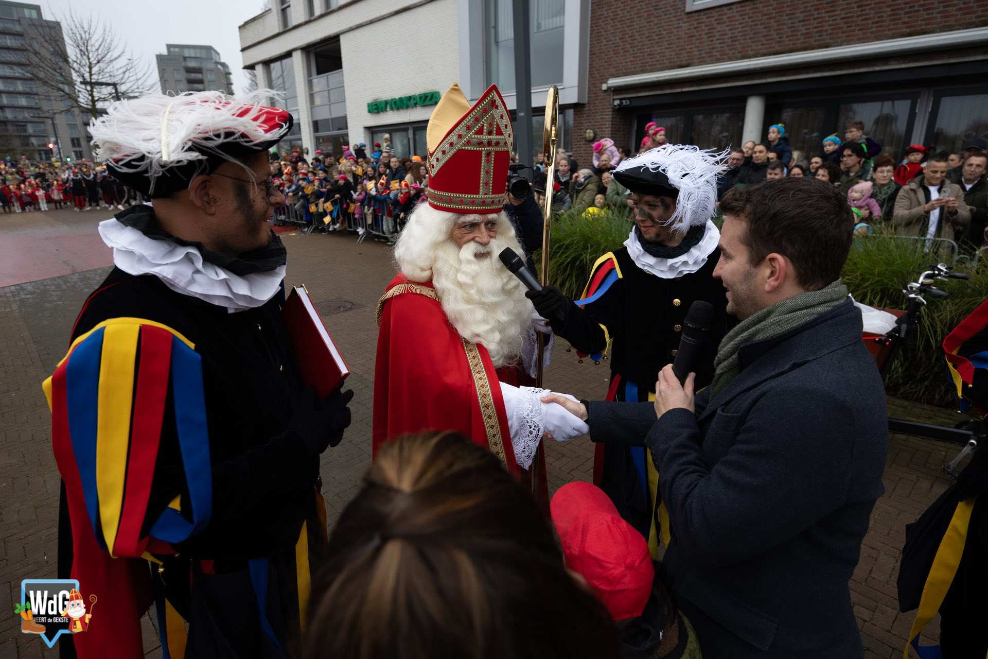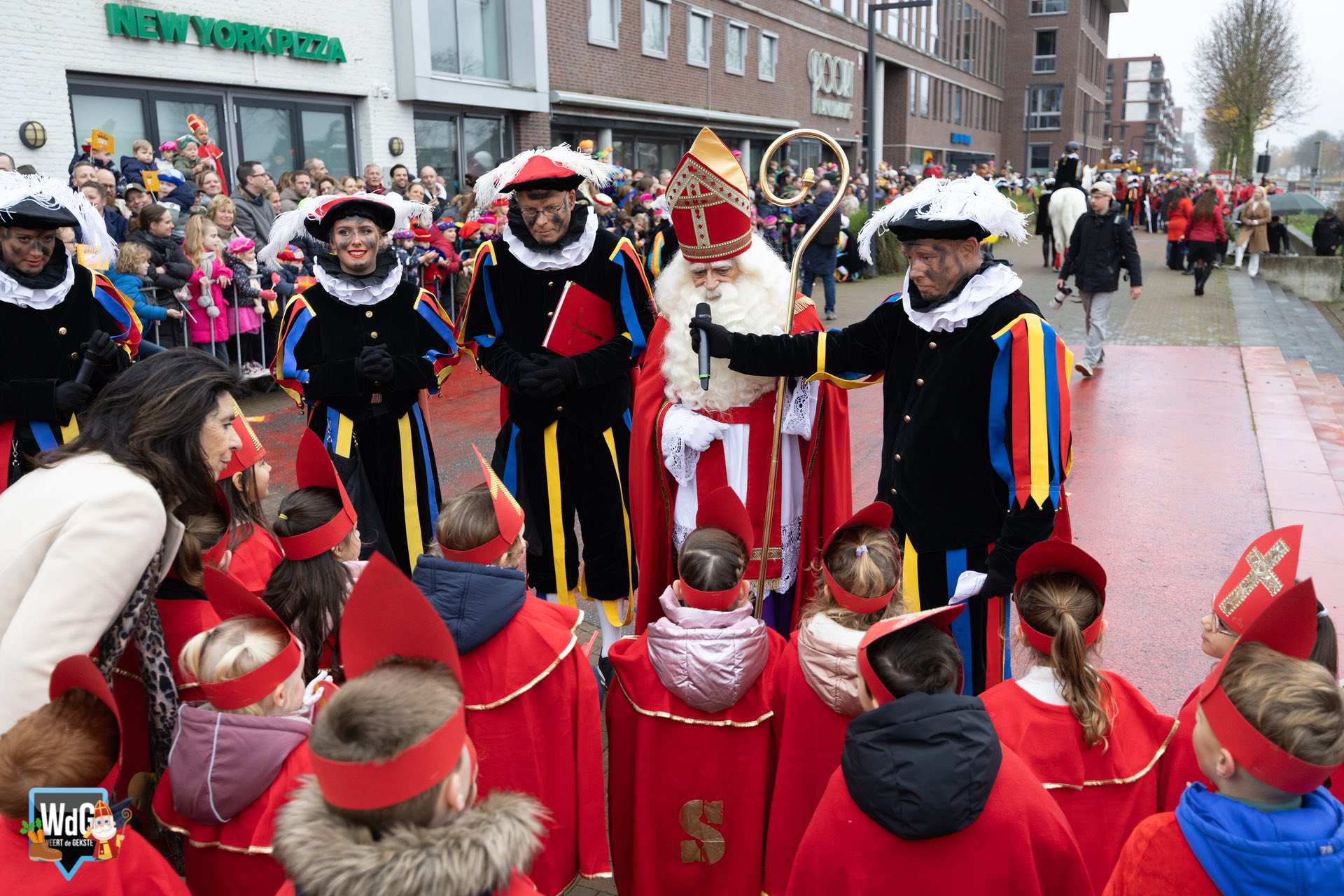 Rond 14.00 uur kwam het schip precies volgens planning aan bij de Werthaboulevard. Wethouders Suzanne Winters en Martijn van den Heuvel heetten Sinterklaas welkom namens het gemeentebestuur. Daarna stapte de Sint op zijn paard om richting de Markt te vertrekken.
