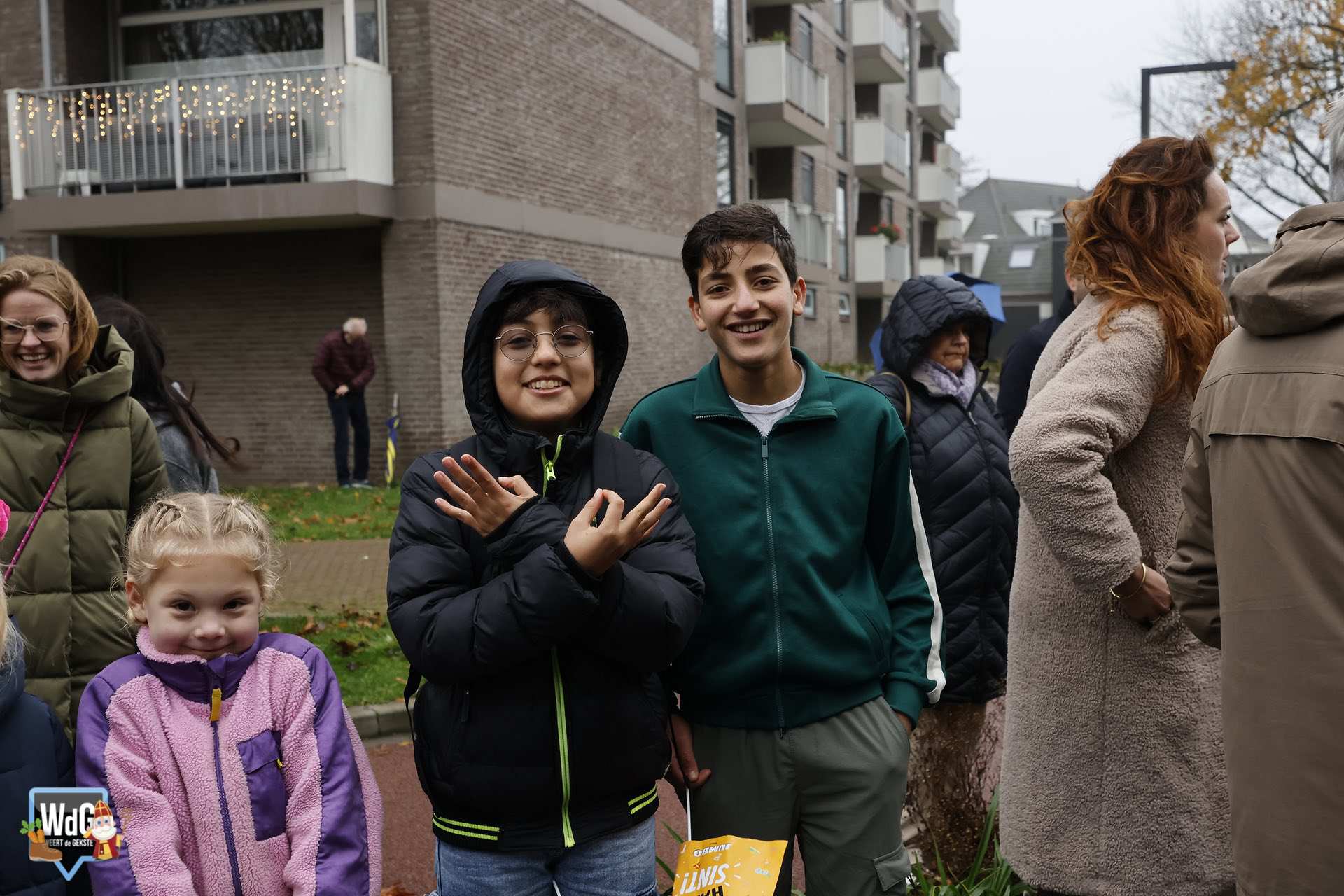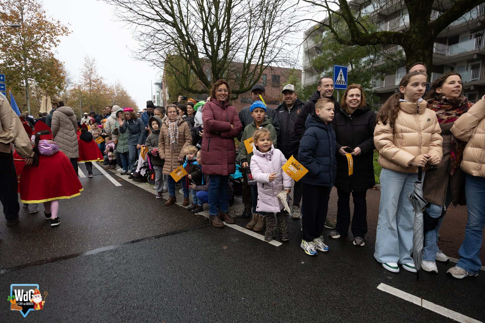 Het weer was grijs, fris en soms viel er een spat regen. Toch stonden de mensen rijen dik langs de kant. Veel kinderen hadden tekeningen of vlaggetjes bij zich en zongen uit volle borst mee. Sinterklaas was zichtbaar blij was met de grote opkomst, ondanks de minder herfstachtige weersomstandigheden.