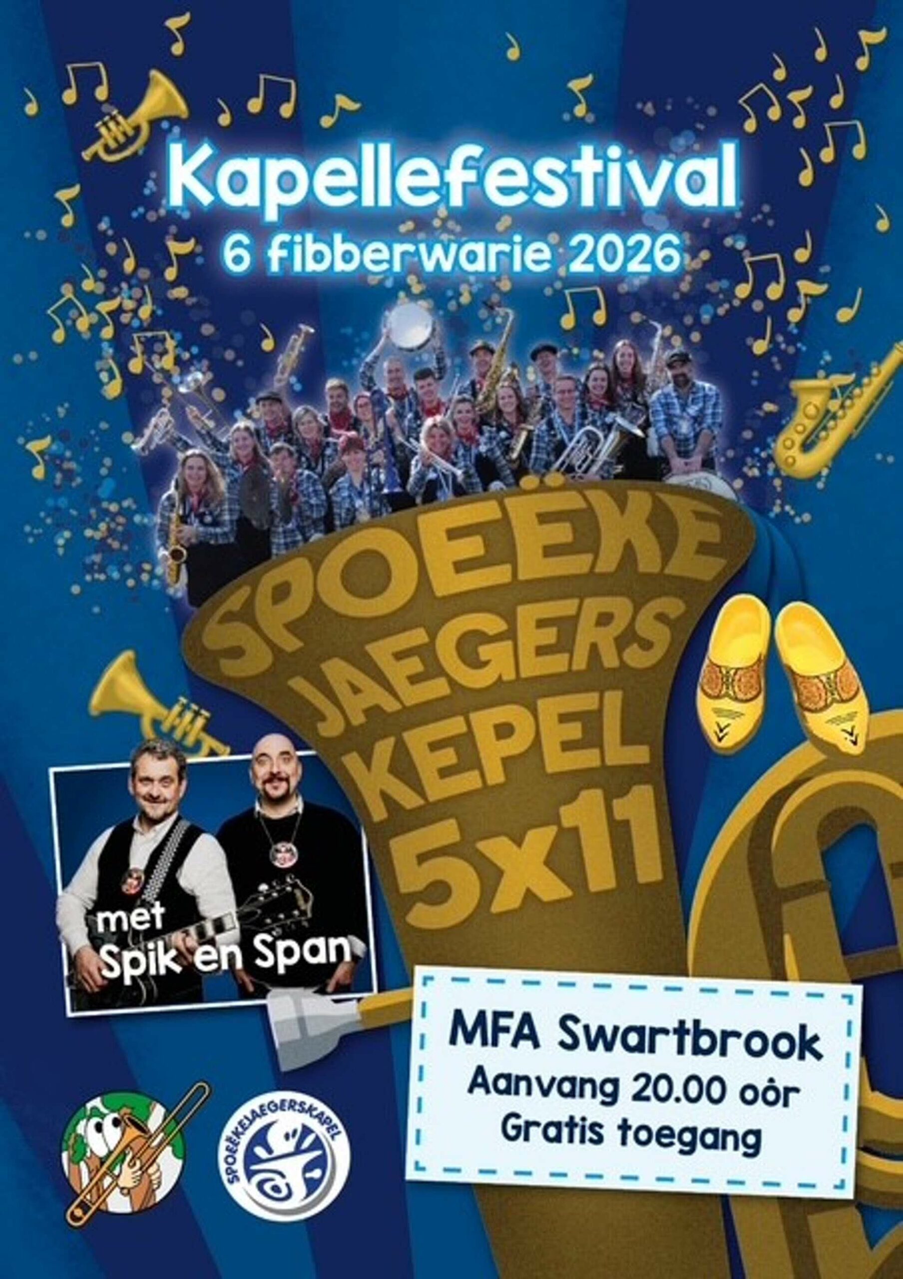 In 2026 bestaat de Spoeëkejaegerskapel 5×11 jaar. Om dit bijzondere jubileum te vieren organiseert de kapel op vrijdag 6 februari 2026 een groot Kapellenfestival in MFA Swartbroek.