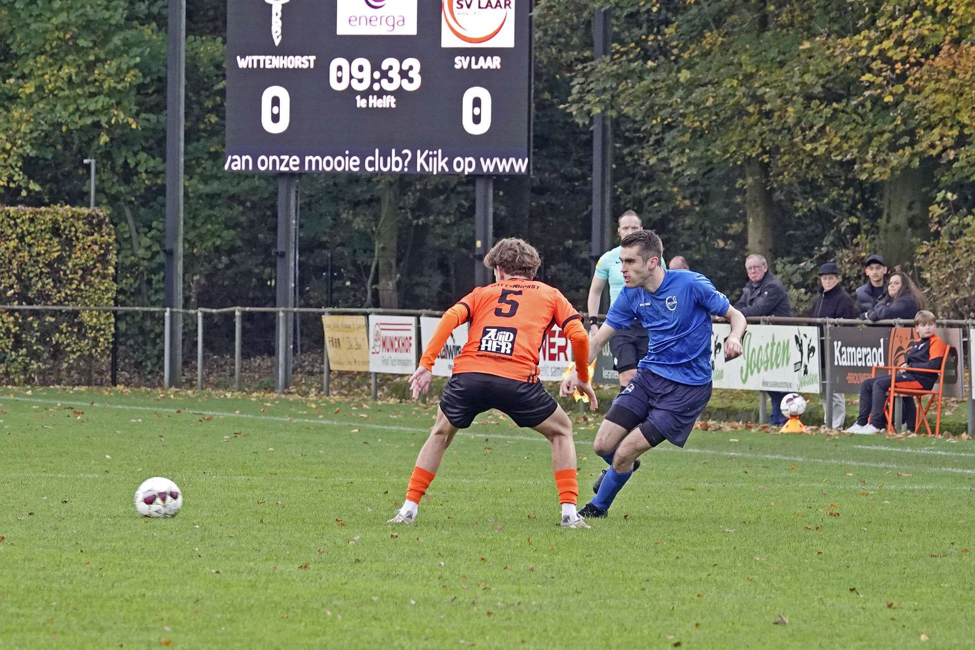 De in blauwe uit-shirts gestoken SV Laar-mannen gingen afgelopen zondag in Horst op bezoek bij de oranjehemden van Wittenhorst. Het werd een spannende wedstrijd, die pas in blessuretijd met 2-3 in het voordeel van de Weertenaren werd beslist. Door deze overwinning behoudt SV Laar de zesde plaats op de ranglijst met een gelijk aantal punten als de nummer vijf AWC, dat echter een beter doelsaldo heeft.