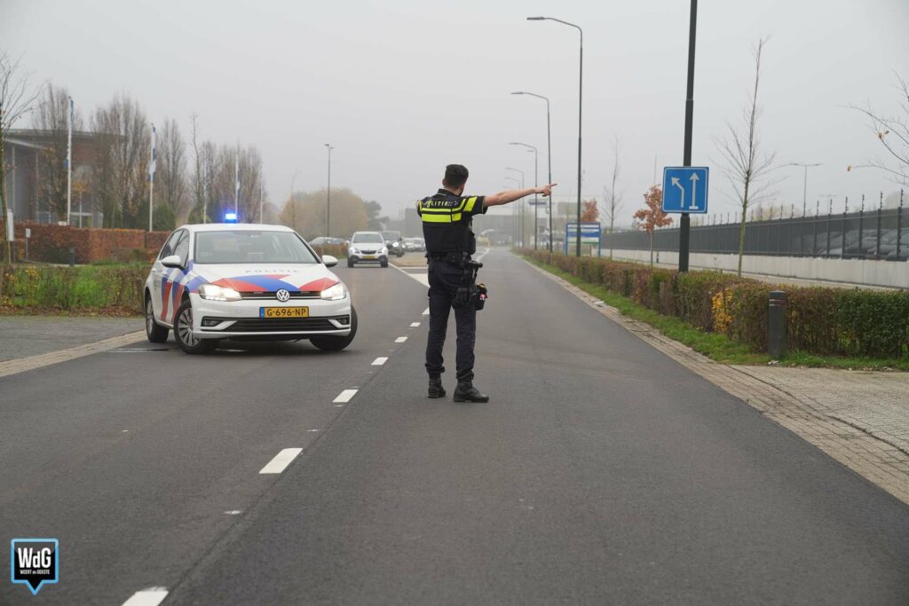 Vanwege de kerstshow bij de winkel was het druk op de weg. Er waren al verkeersregelaars aanwezig om het verkeer te begeleiden. Door de versperde weg konden auto’s tijdelijk via het fietspad omrijden.