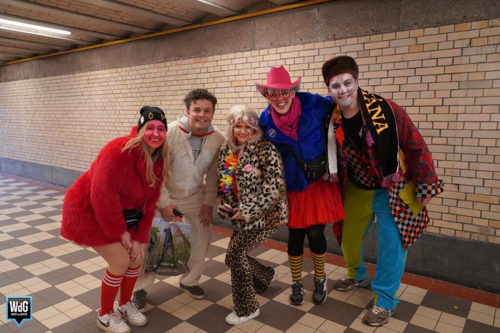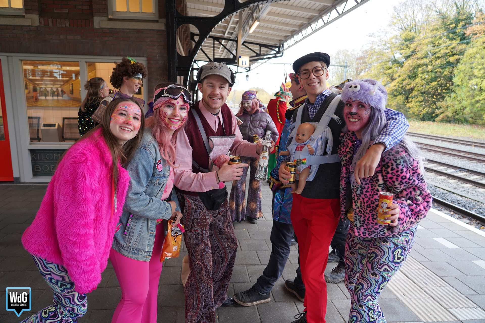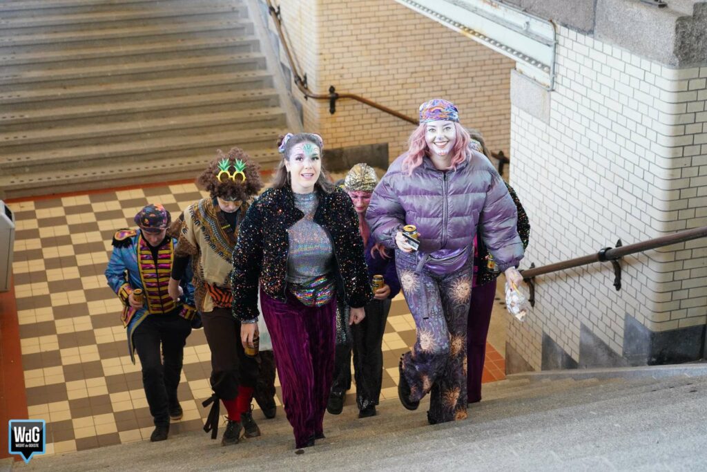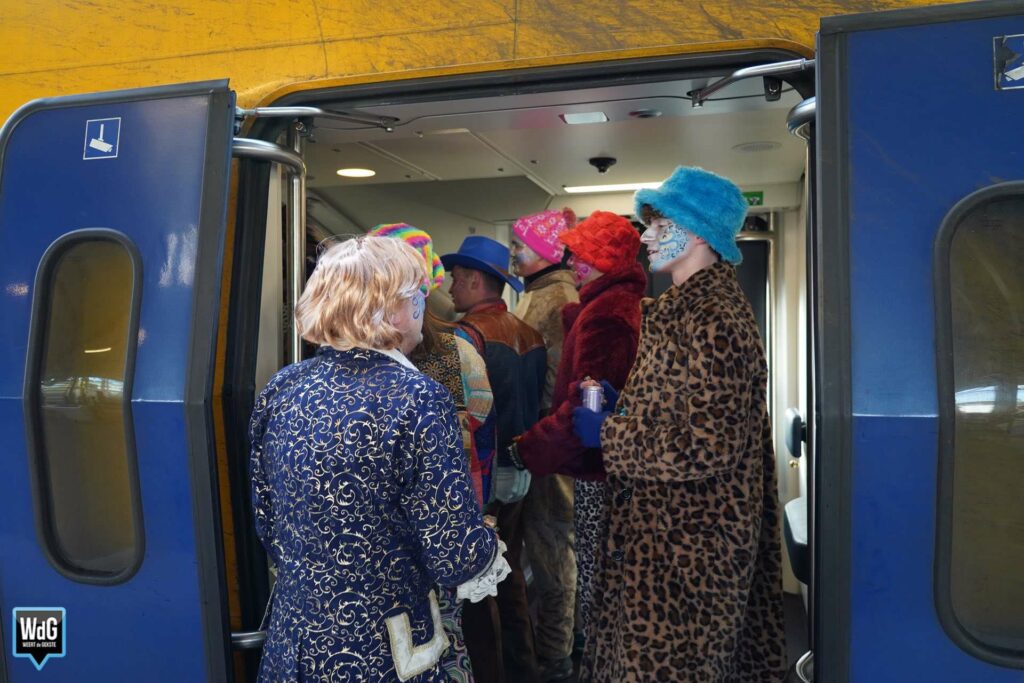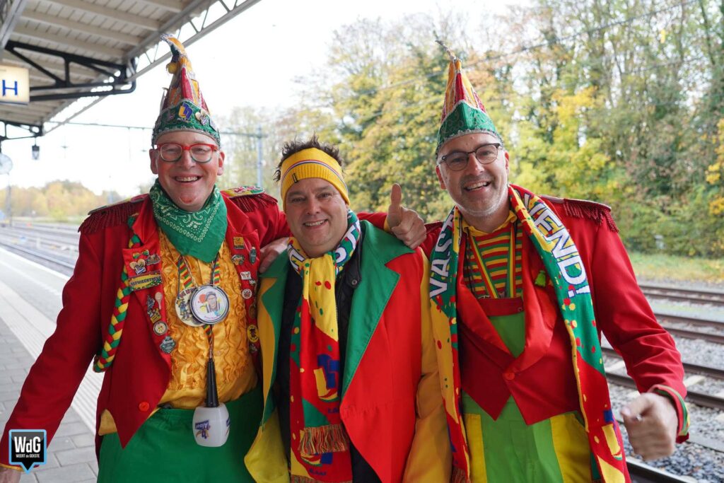 Dat de sfeer er bij velen al vroeg in zat, was goed te zien op het NS-station in Weert. Terwijl de een de eerste alcohol van de dag dronk, was de ander nog bezig met het aantrekken van zijn kostuum. Eén ding hadden ze allemaal gemeen: de zin in Vastelaovendj! Het is begonnen.