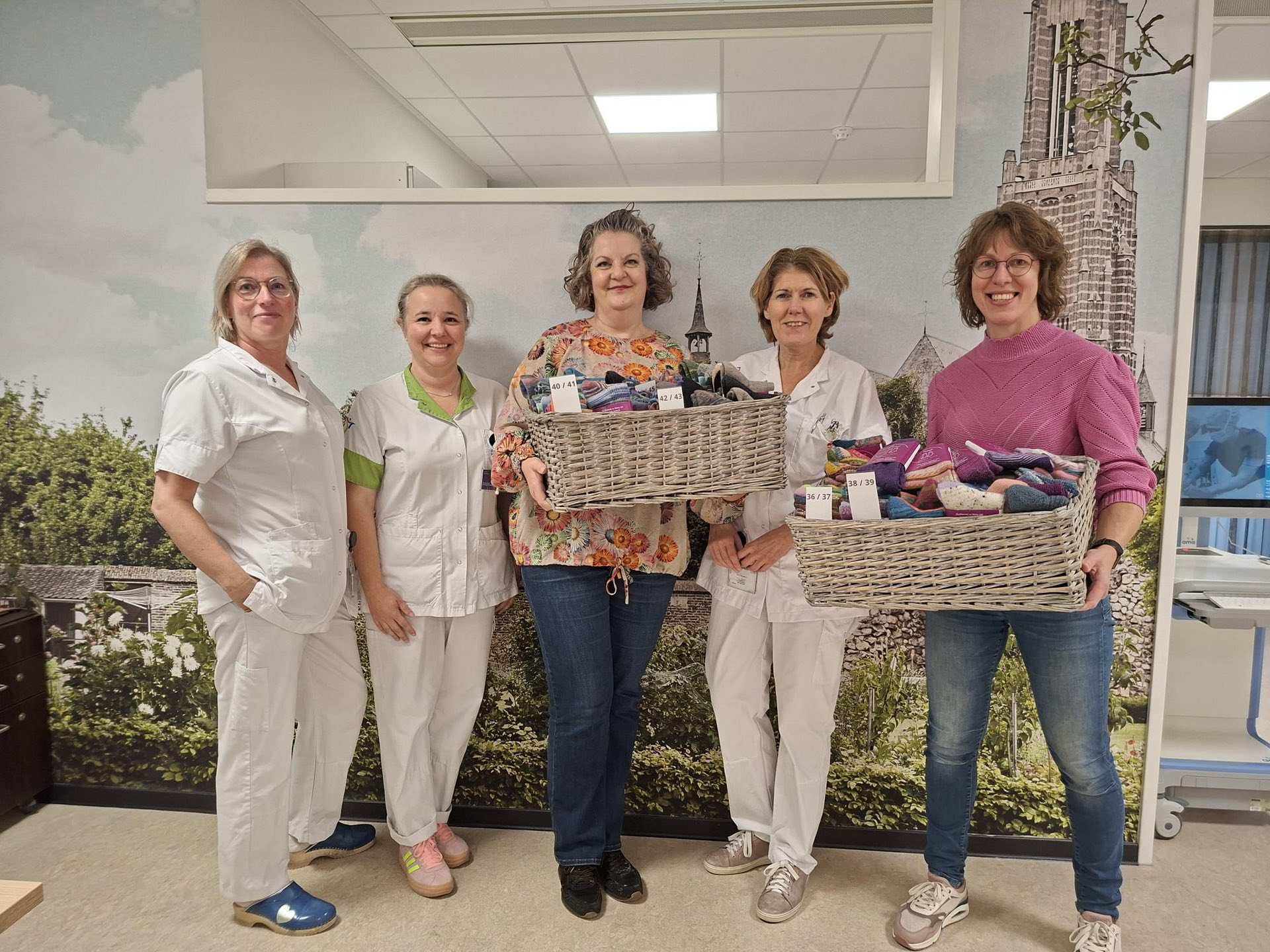 De sokken worden door de verpleegkundigen van de dagbehandeling persoonlijk aan de patiënten uitgereikt. Zo hopen de initiatiefneemsters dat een klein gebaar wat troost en positiviteit brengt op een zware dag.