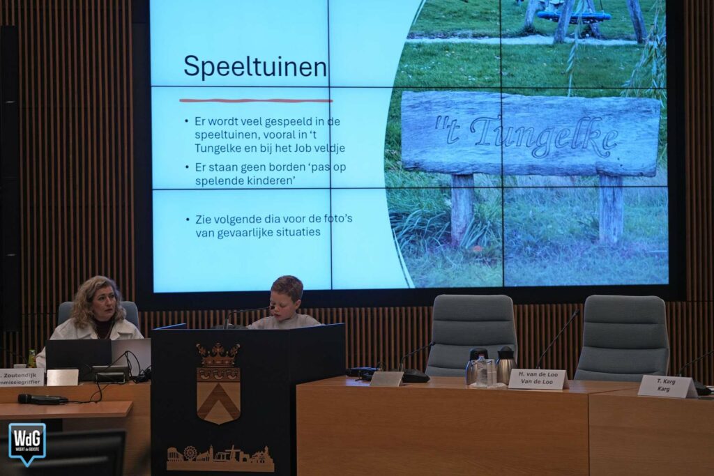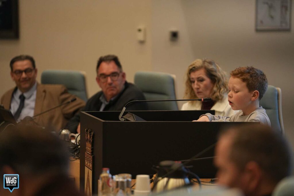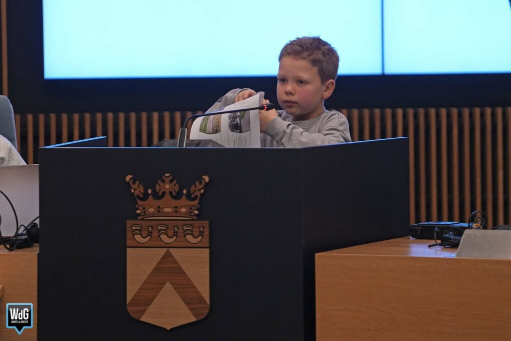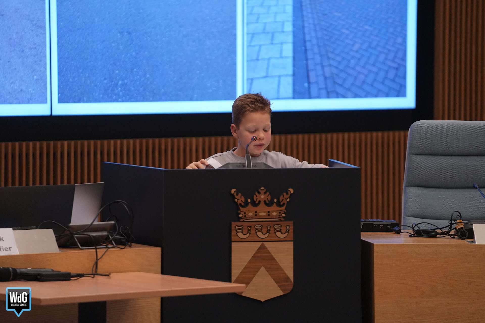 De 8-jarige Finn de Graef heeft woensdagavond tijdens de commissievergadering Ruimte en Economie in het stadhuis gebruikgemaakt van het spreekrecht. Voor een volle zaal met de burgemeester, wethouders, raadsleden, commissieleden en publiek sprak hij over de verkeersveiligheid in zijn dorp Tungelroy.