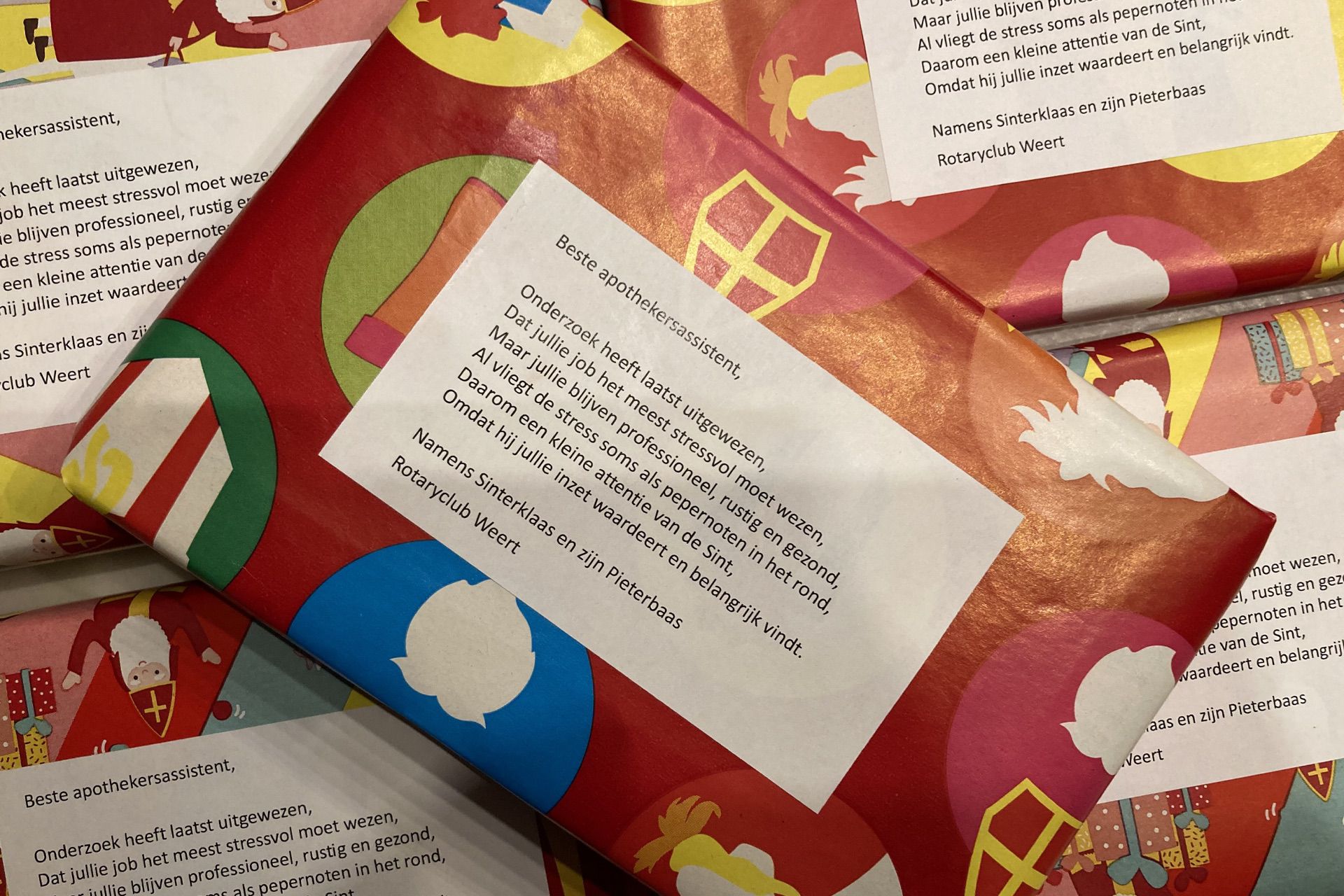 Naar aanleiding van recent onderzoek van het CBS en TNO, waaruit blijkt dat apothekersassistenten momenteel de hoogste werkdruk ervaren, heeft Rotaryclub Weert op donderdag een symbolisch gebaar van waardering gebracht aan deze beroepsgroep. Alle apotheken in Weert, waaronder ook de ziekenhuisapotheek, werden verrast met een feestelijk verpakt cadeautje.
