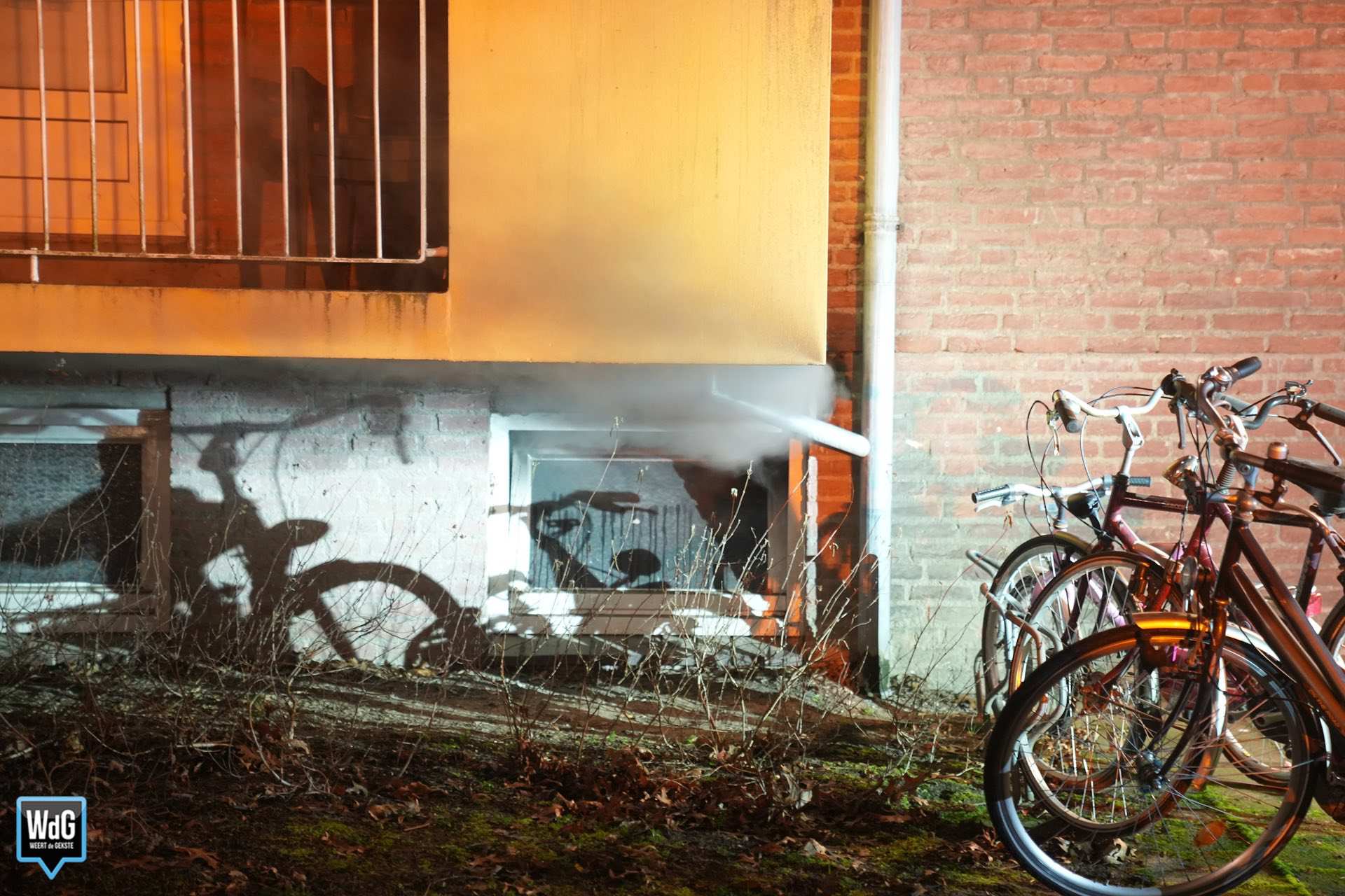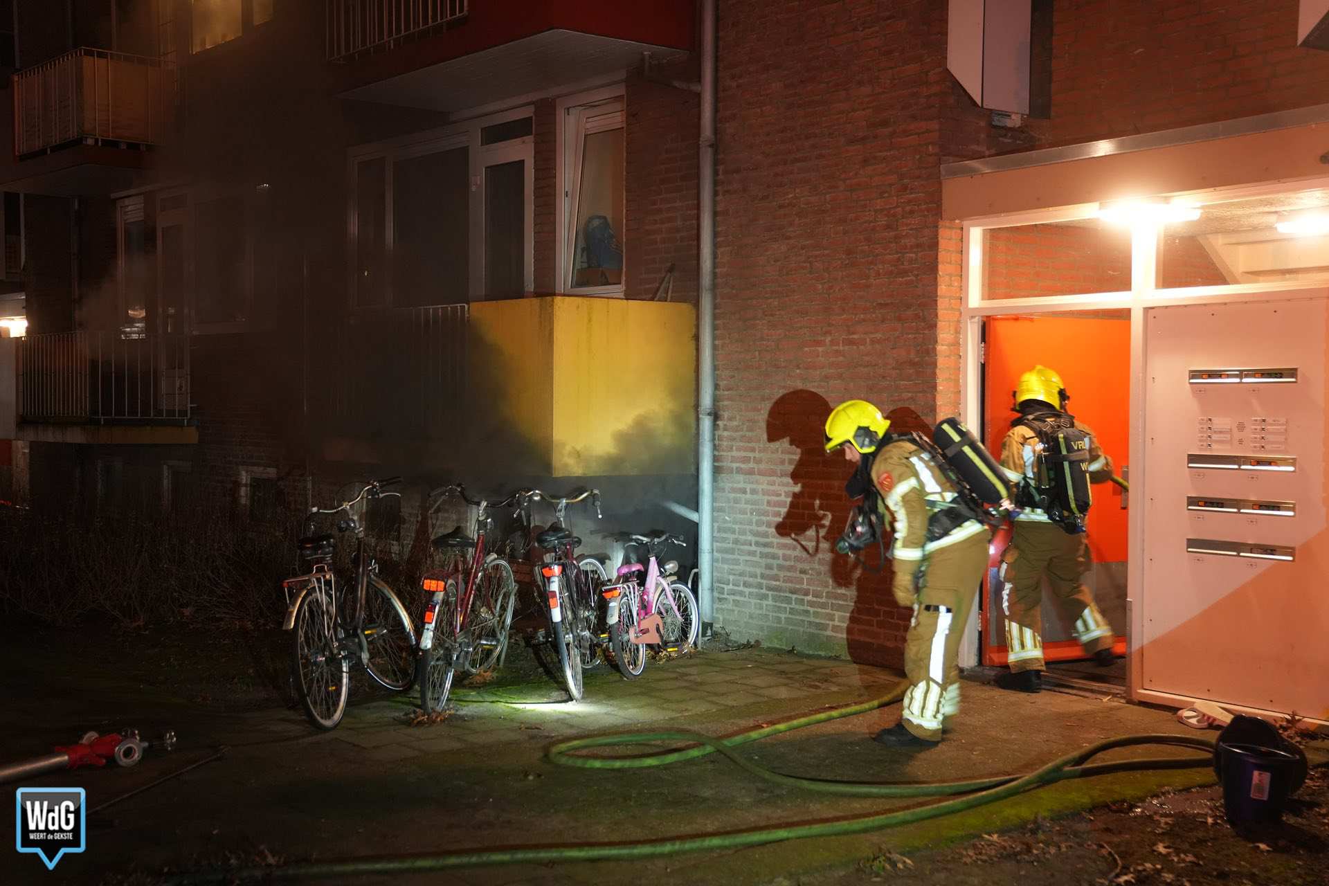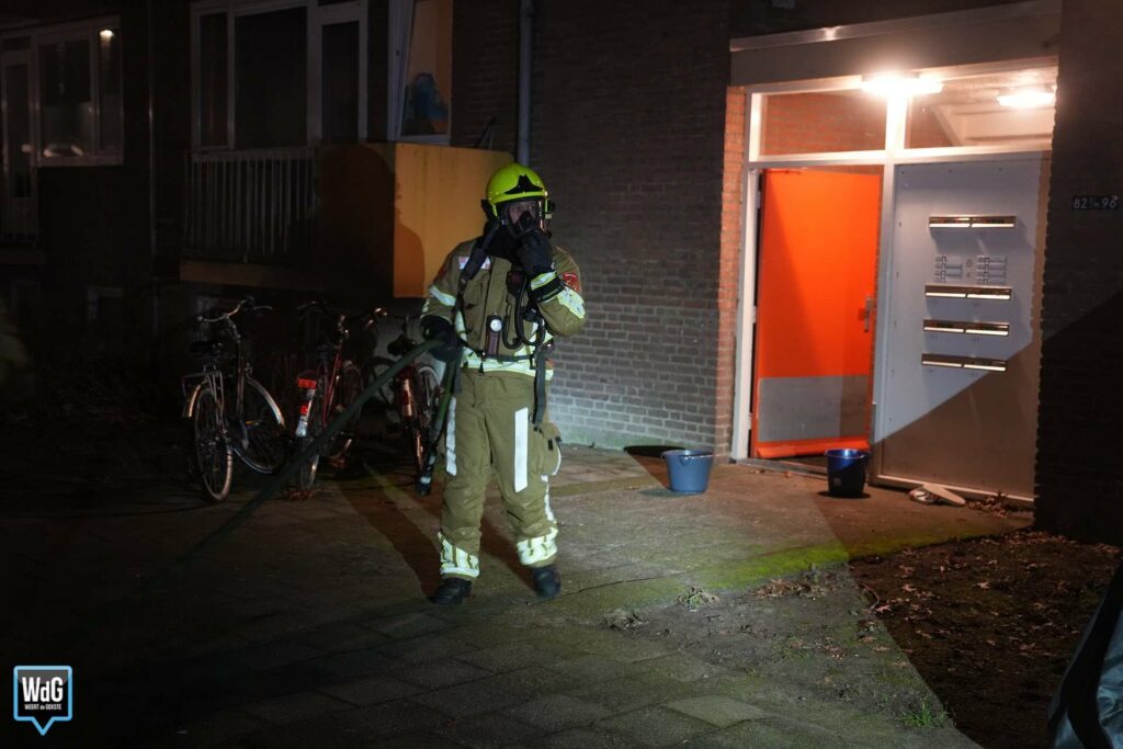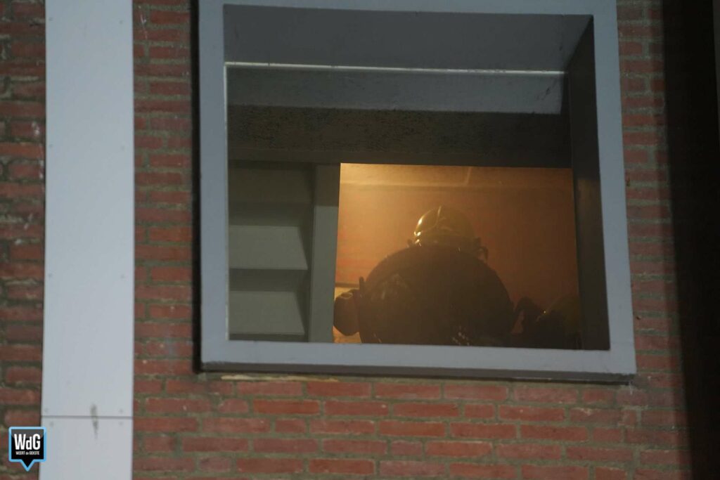 Bij aankomst van de brandweer was er sprake van flinke rookontwikkeling. Meerdere bewoners hadden het gebouw inmiddels zelfstandig verlaten. De rook uit de kelderbox nam toe en trok ook het trappenhuis in.