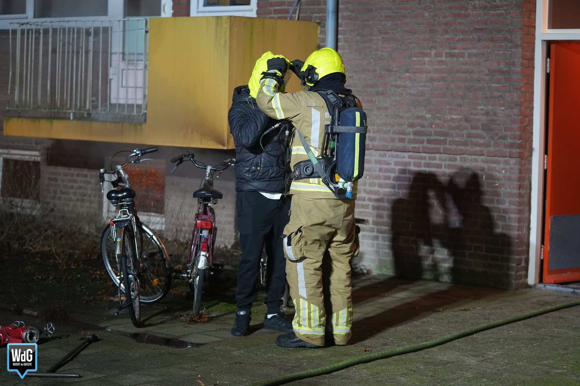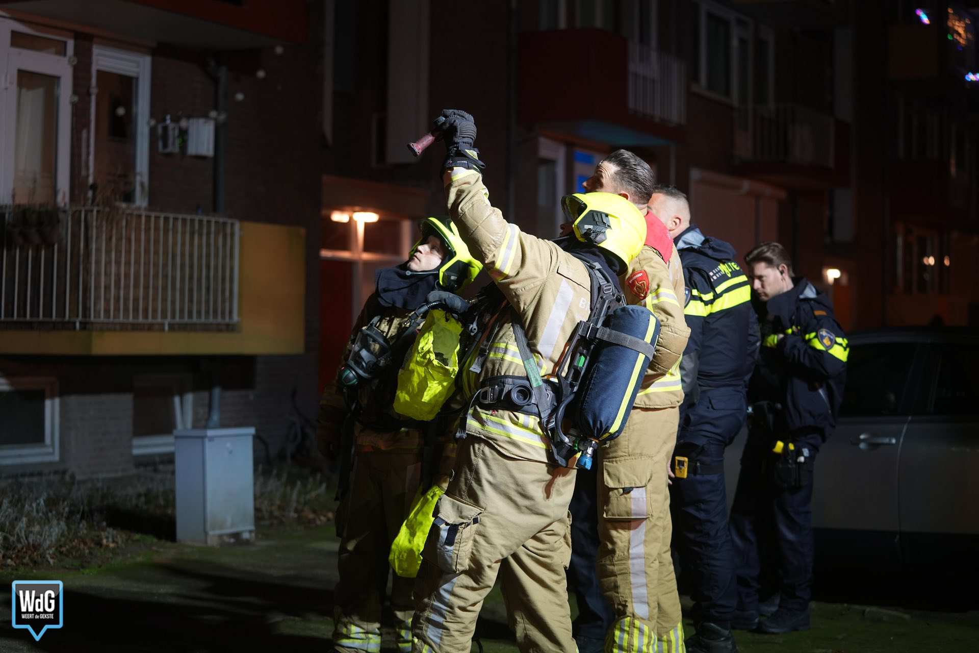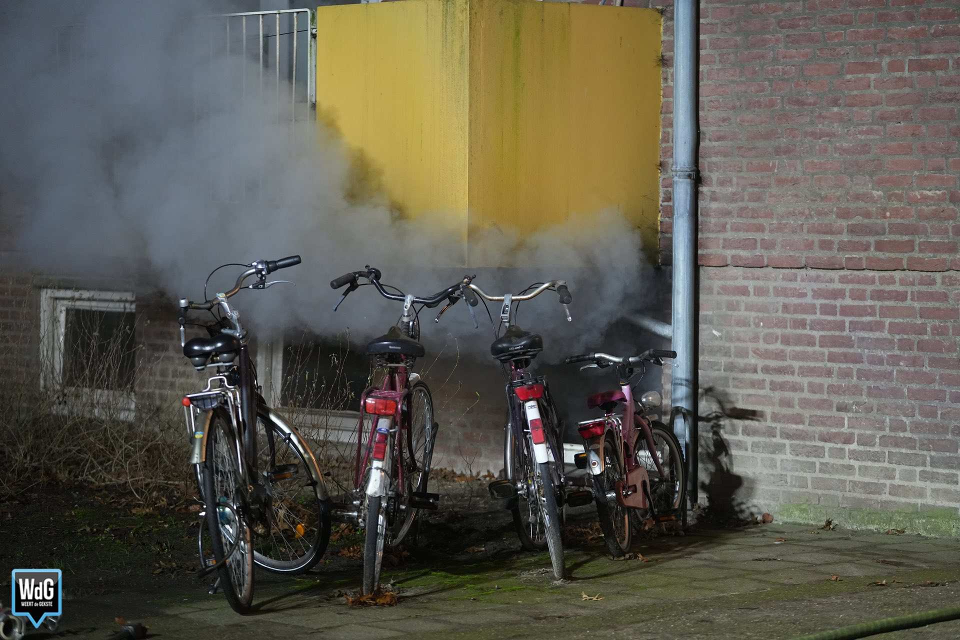 Bij aankomst van de brandweer was er sprake van flinke rookontwikkeling. Meerdere bewoners hadden het gebouw inmiddels zelfstandig verlaten. De rook uit de kelderbox nam toe en trok ook het trappenhuis in.