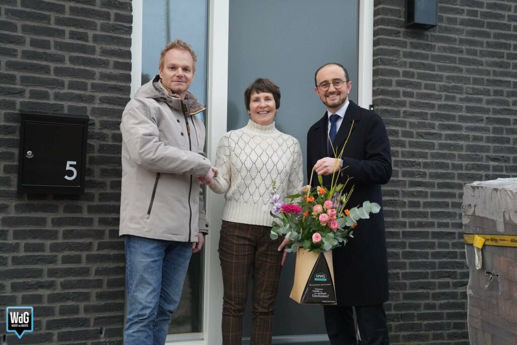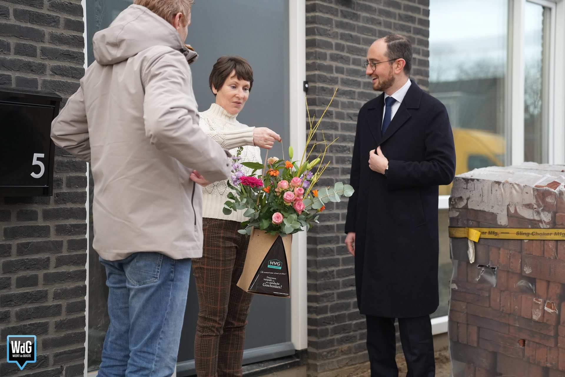 Tijdens een korte rondgang op de bouwlocatie werd stilgestaan bij de voortgang van het project en de verdere ontwikkeling van de buurt. Bij deze gelegenheid ontvingen de eerste bewoners een bos bloemen ter verwelkoming in hun nieuwe woonomgeving.
